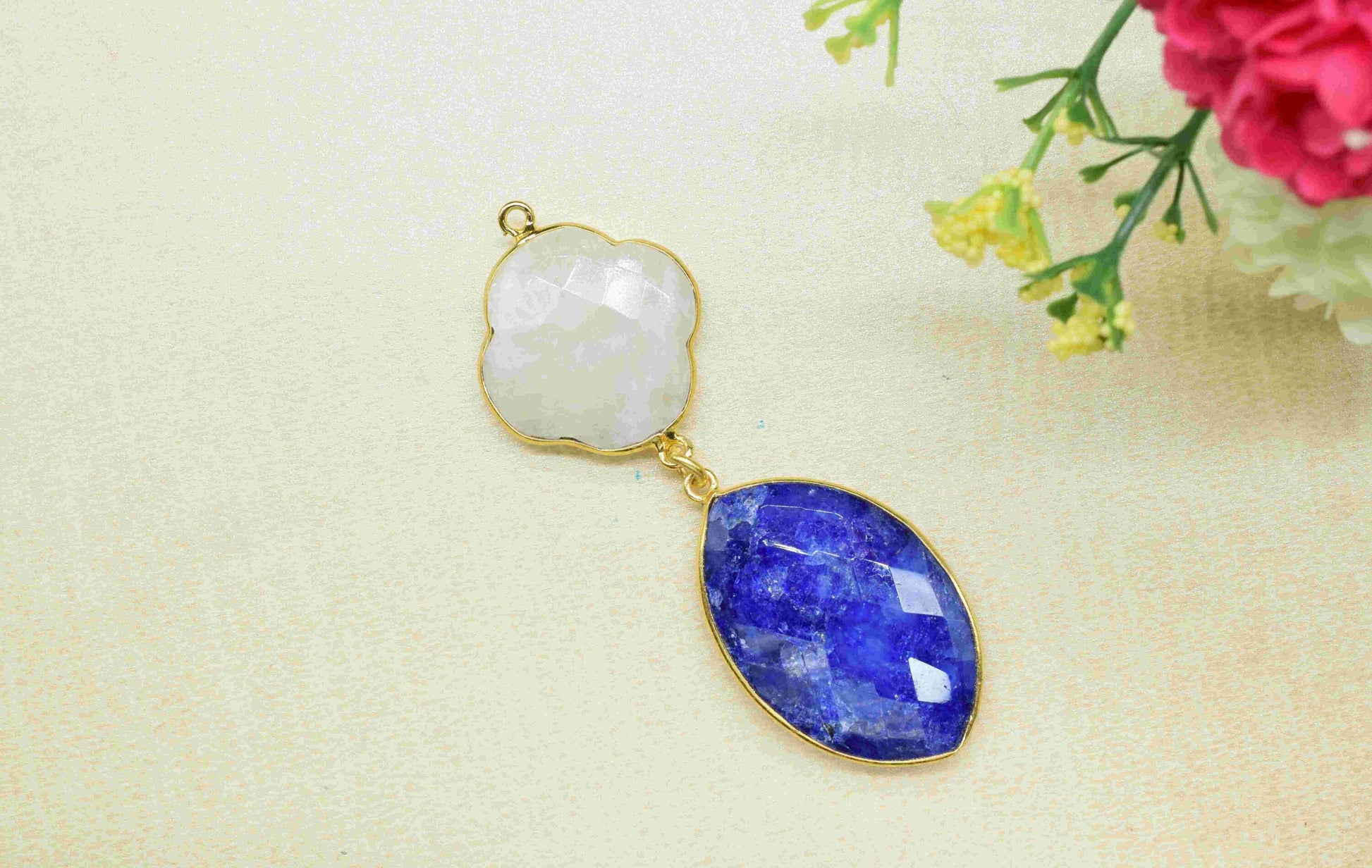 .Moonstone + Blue Sapphire Component Pendants ,Multi Stone Dangle Earrings ,Earring Component Jewelry ,Dangle pendant Charms, B'day Gift