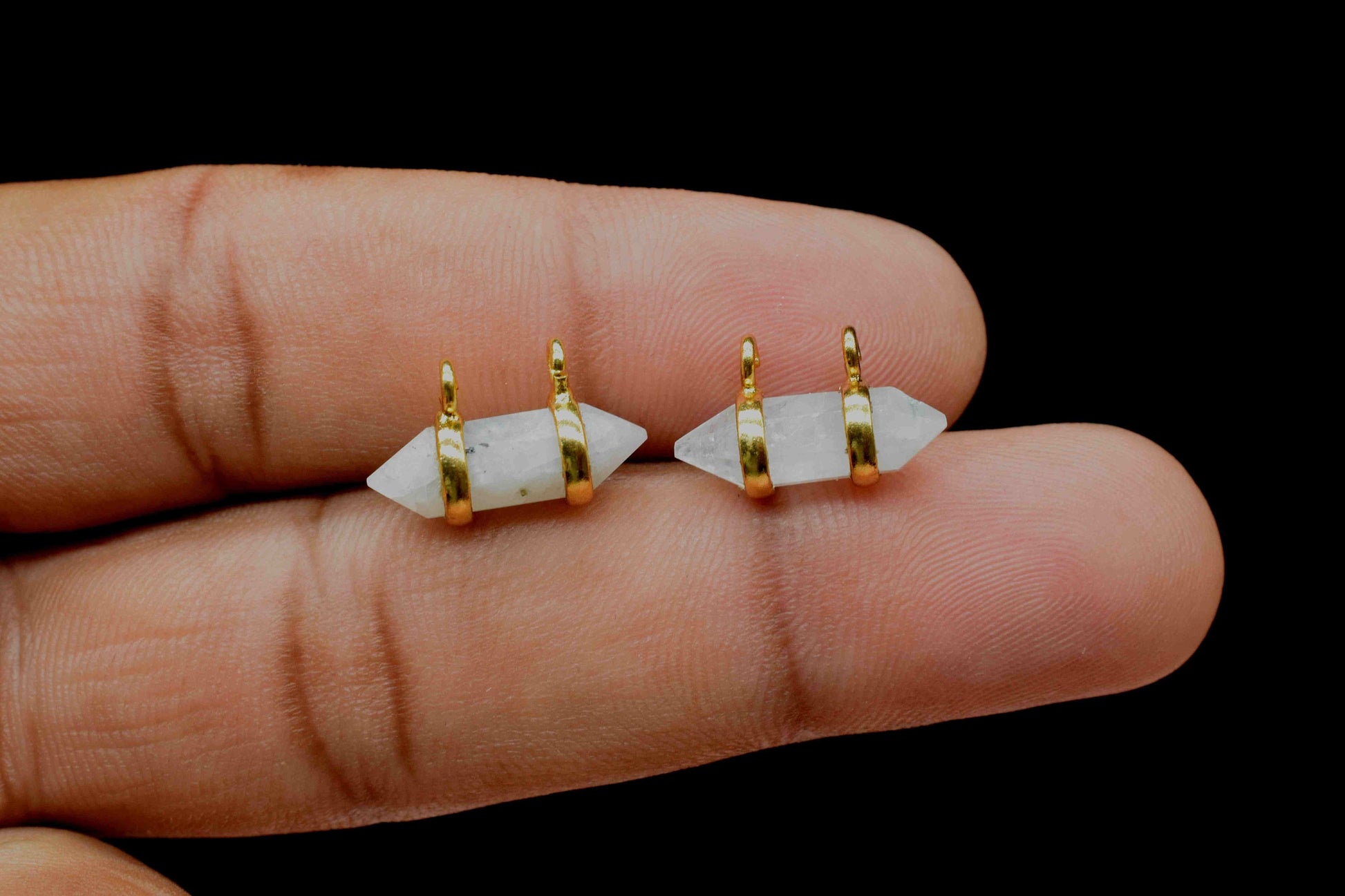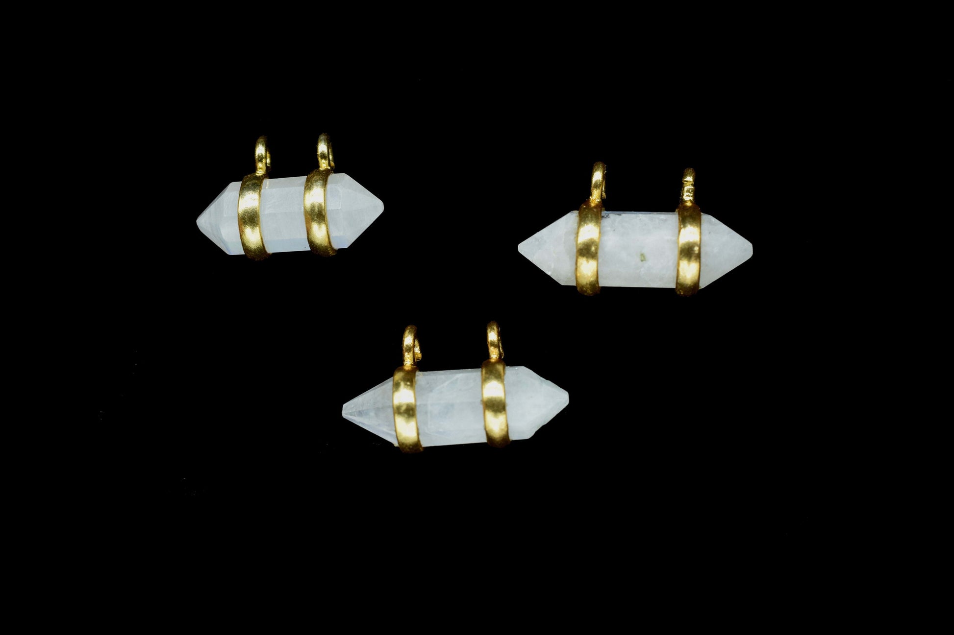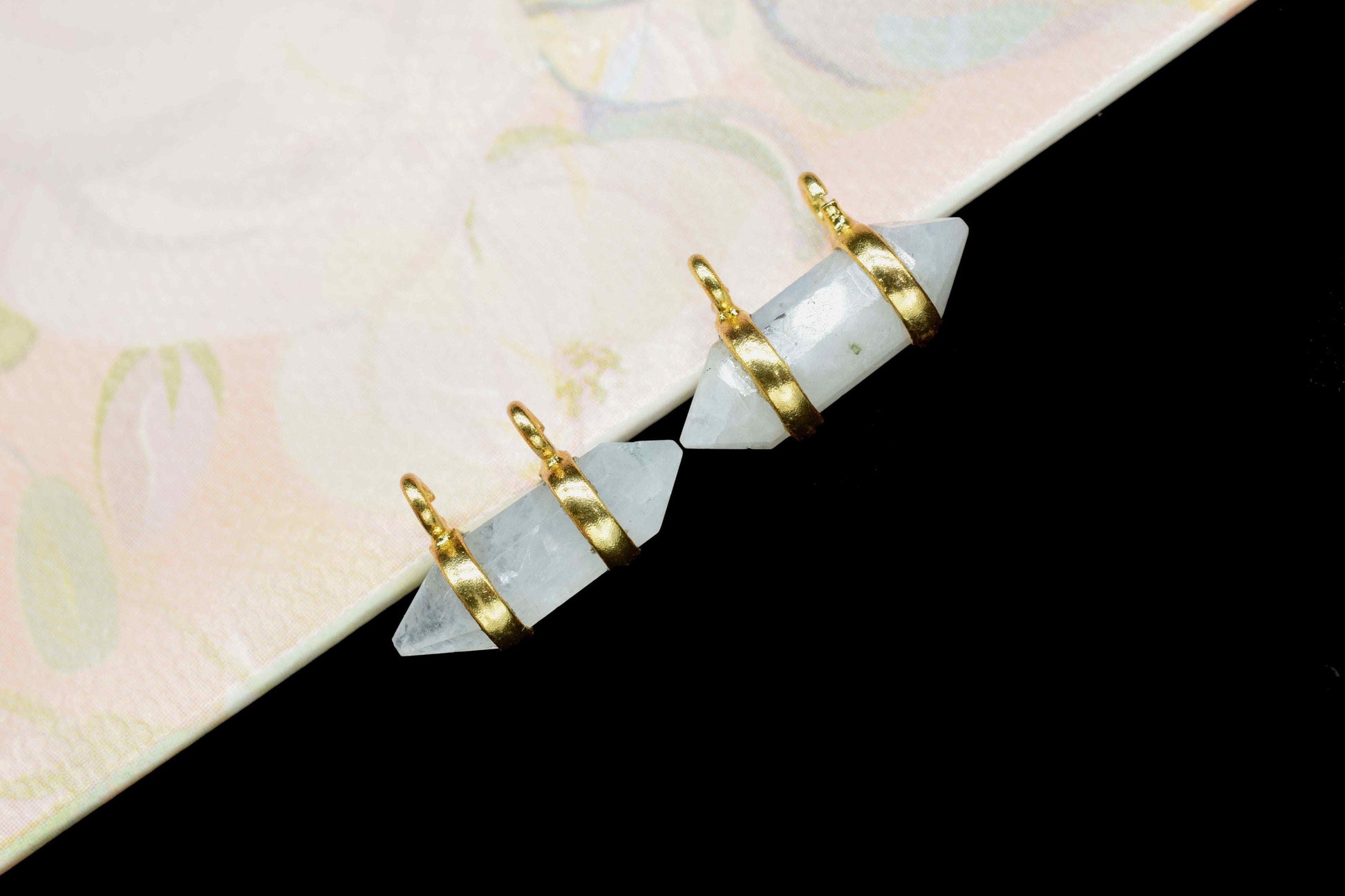 Moonstone Double Terminated Point Pendant,Moonstone 5x15mm Point Shape Component,Rainbow Gold Plated Band,June Birthstone,Jewellery For Her