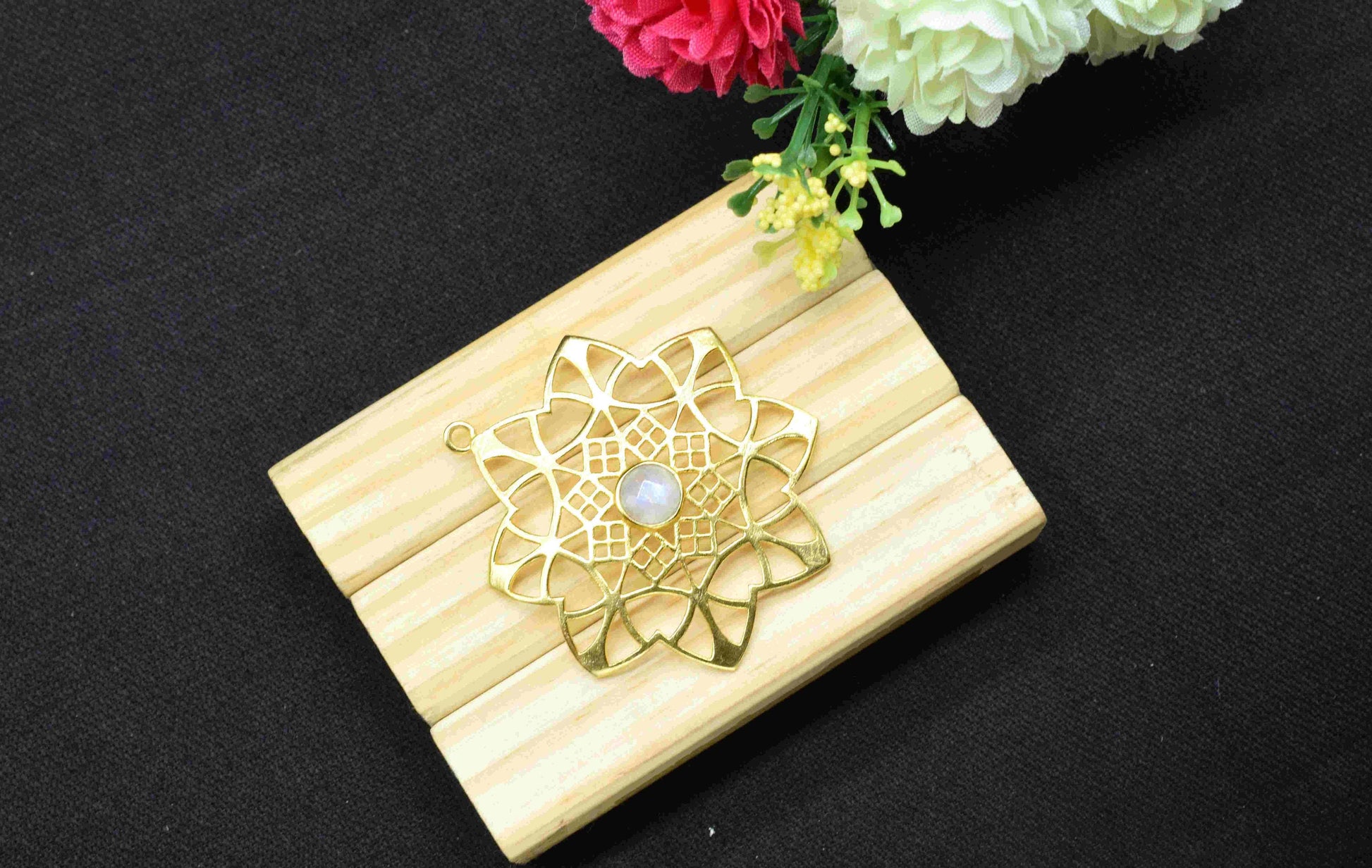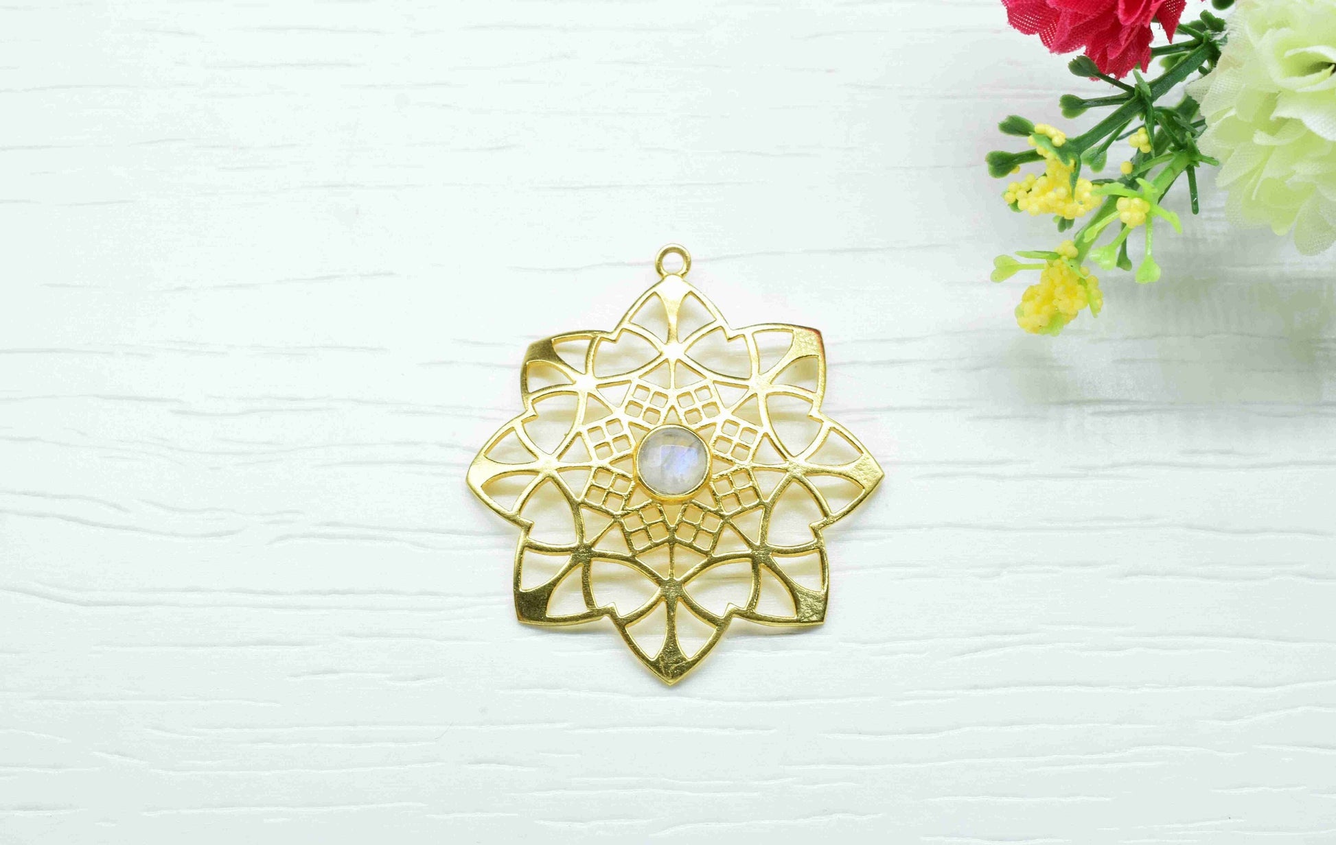 .Moonstone Gemstone Component, Single Bail Charm , Moonstone Connector Pendant , Gold Plated Connectors , Pendant Jewelry , Earring Component