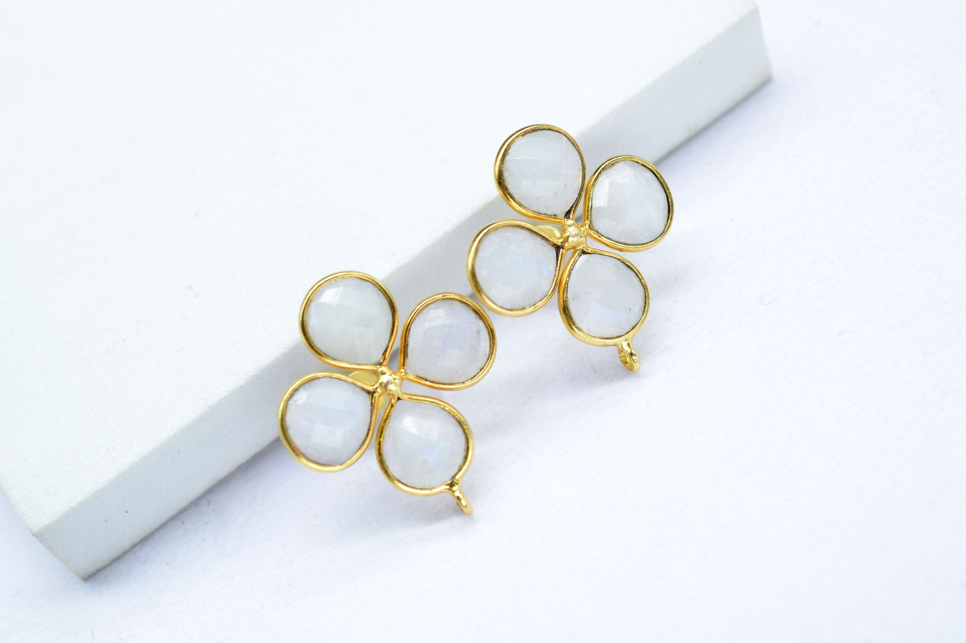 Moonstone Gemstone Earring Connector/Gold Plated Jewelry/Moonstone Handmade Jewelry/Bezel Component/Jewelry making Stone/Heart Shape/Gift