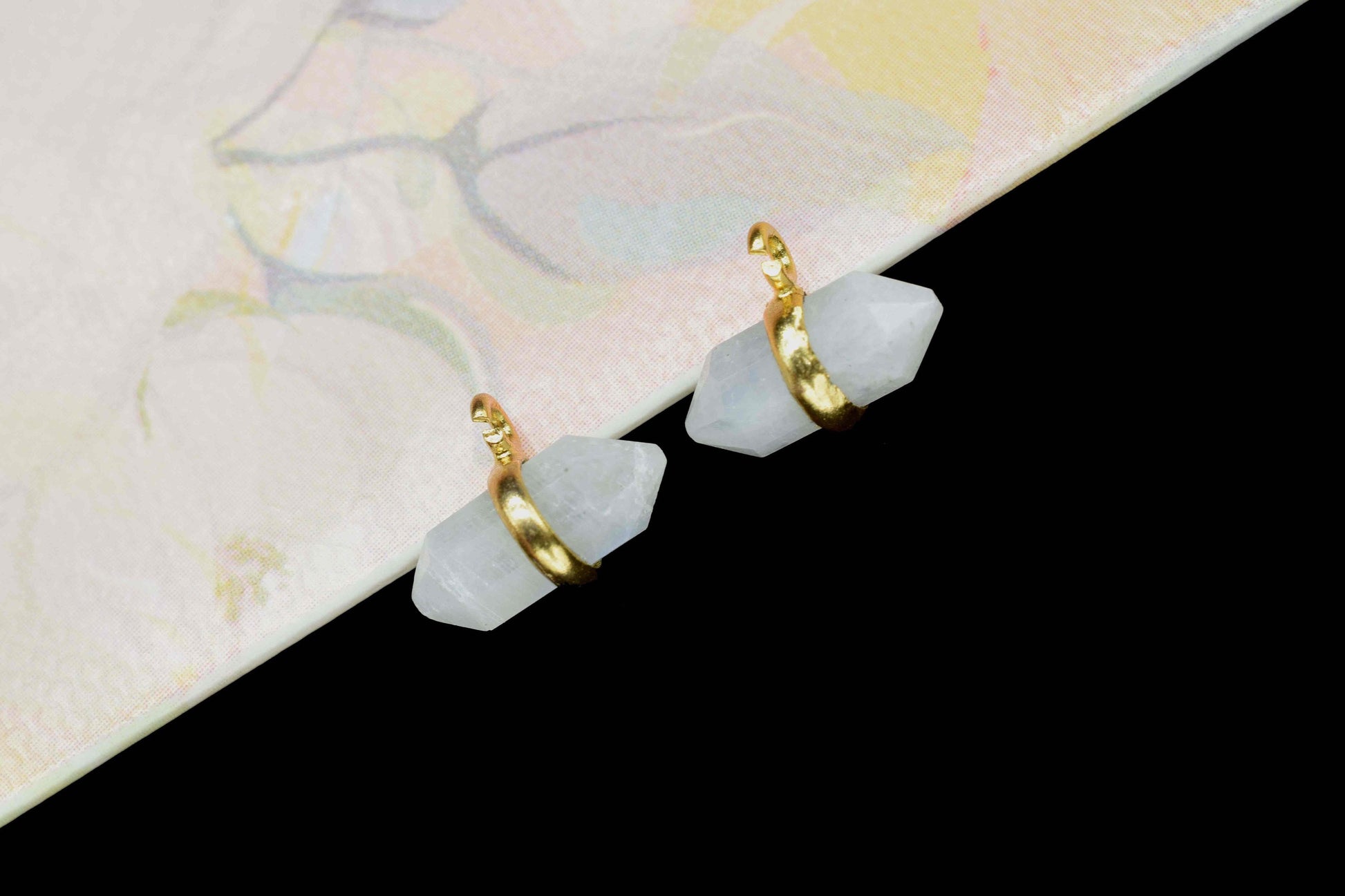.Moonstone Single Terminated Point Pendant,Moonstone 5x12mm Point Shape Component,Rainbow Gold Plated Band,June Birthstone,Jewellery For Her