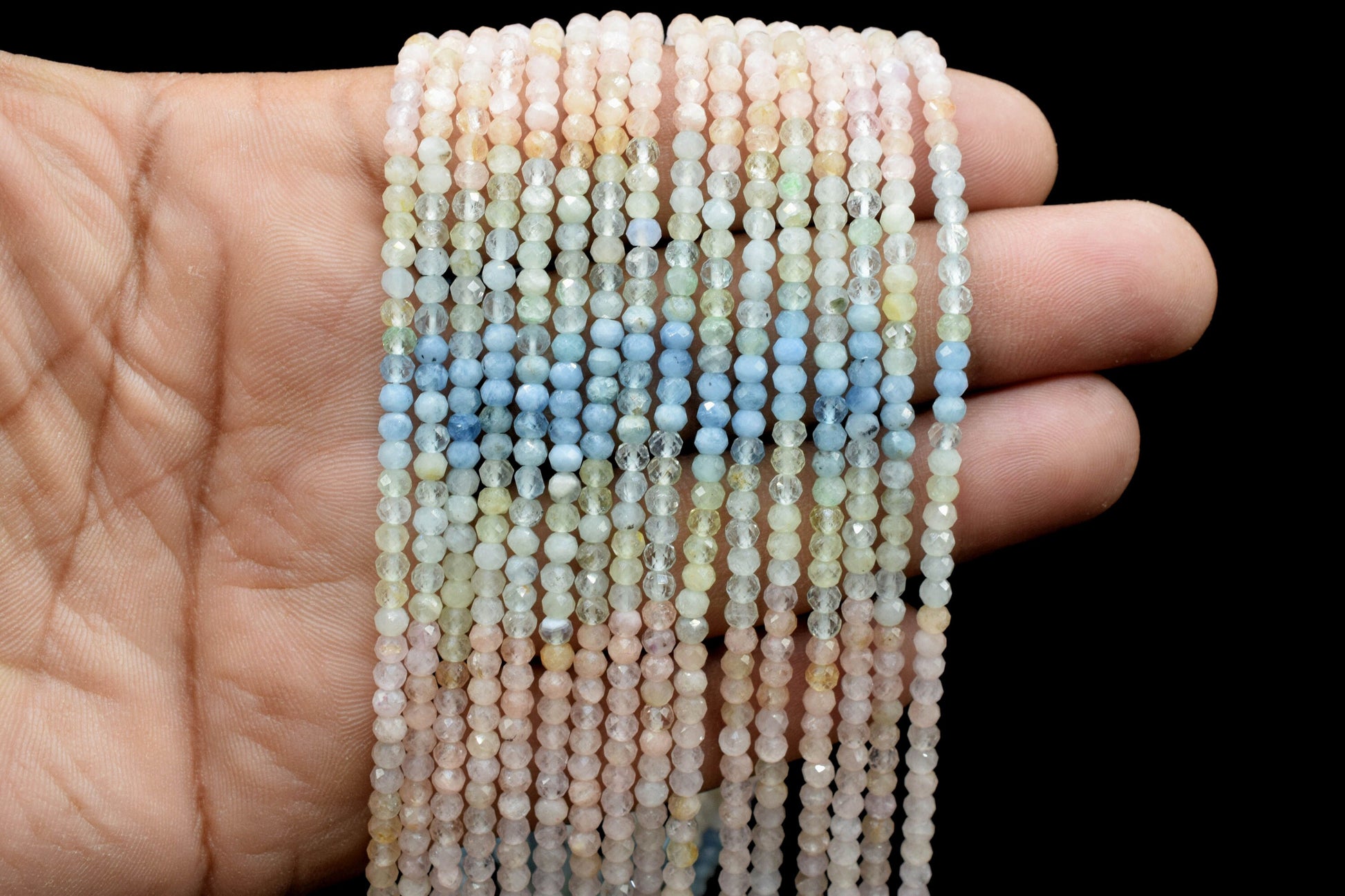 Multi Aquamarine Faceted Beads,Gemstone Beads Strand,3mm Rondelle,Multi Shaded Beads,Micro faceted beads,Aquamarine Strand Beads Jewelry
