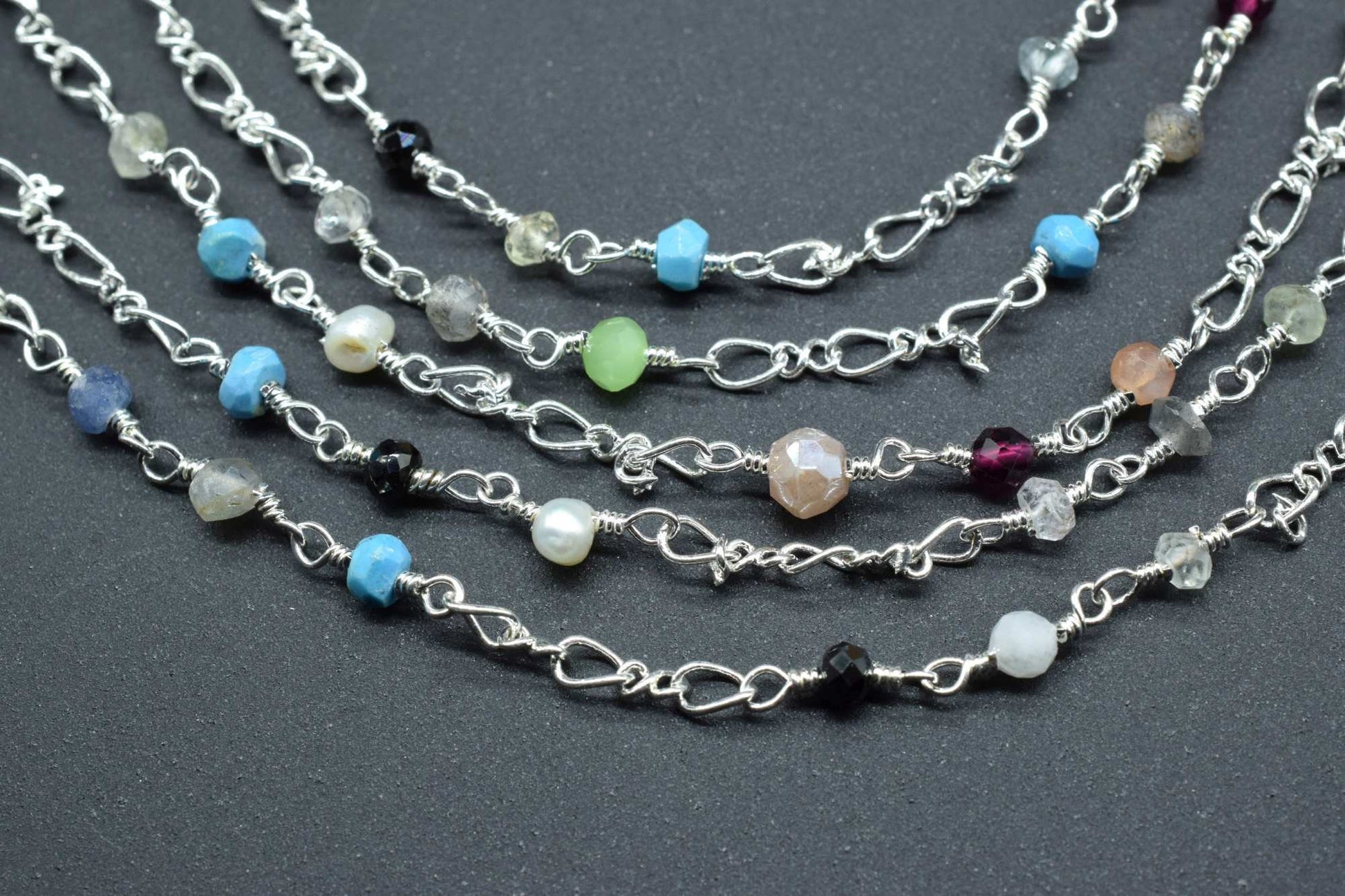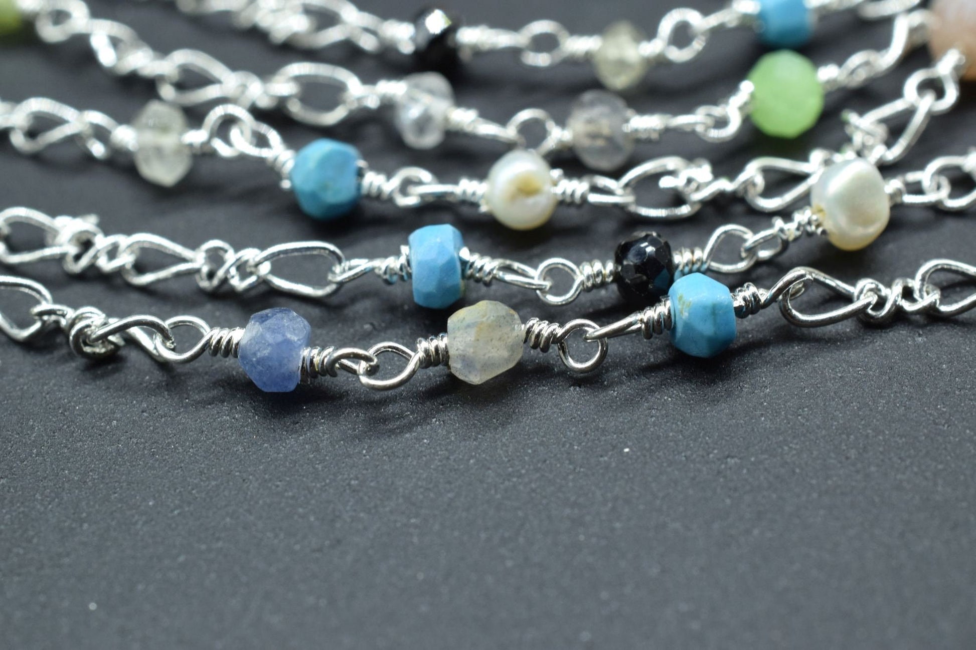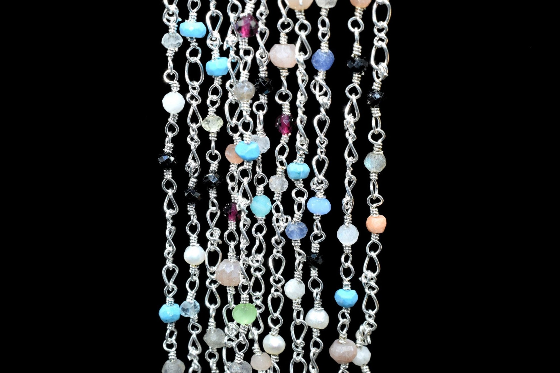 Multi Color Gemstone Rosary,Multi Gemstone Beaded Chain,Jewelry Making Chains,Faceted Beads Wire Wrapped Chain,Semi-Precious Beaded Chain,