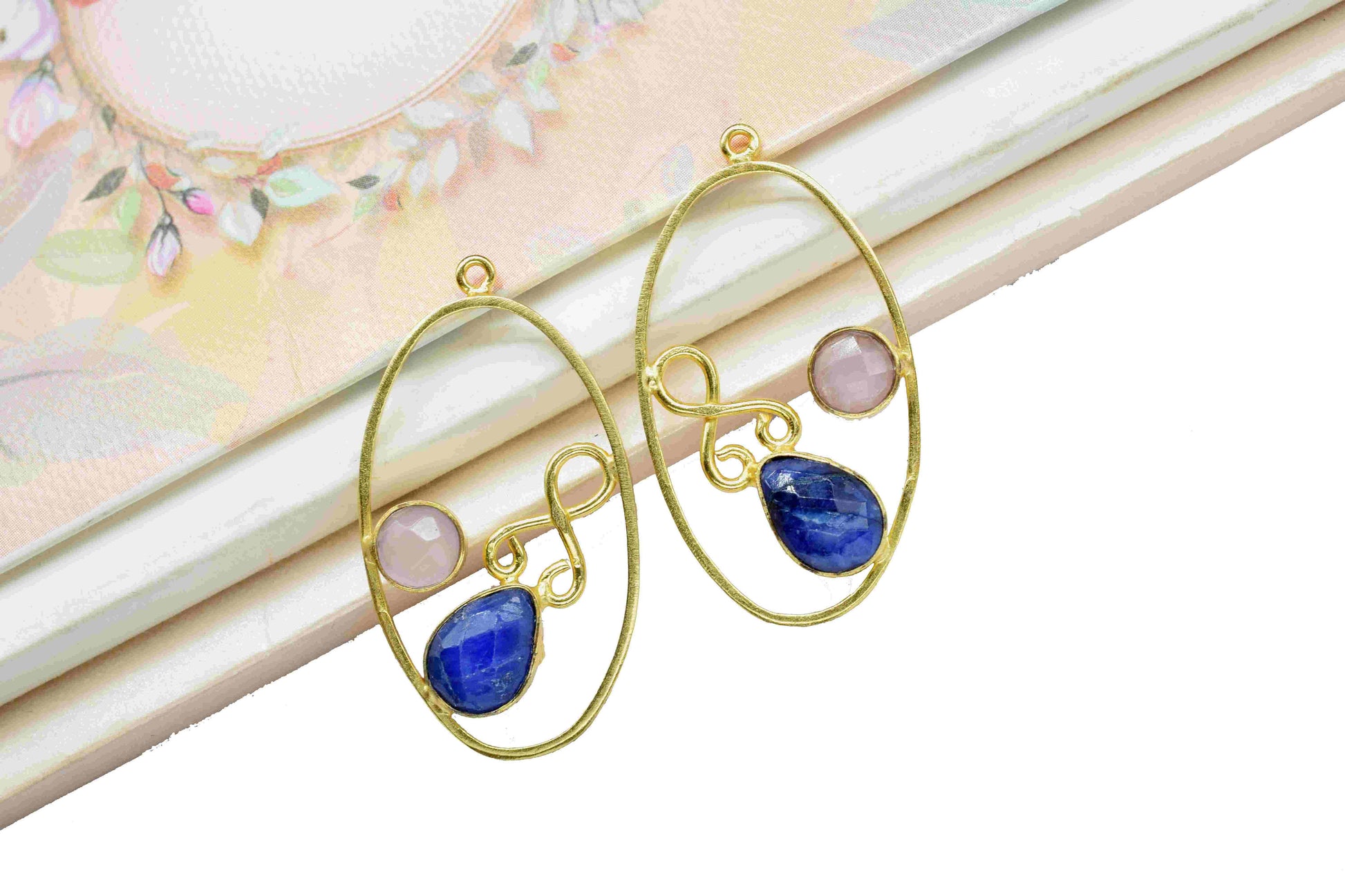 .Multi Gemstone Finding Pendant, Rose Quartz Round Connector, Sapphire 7x10mm Teardrop Shape Component, Finding Necklace Component Jewellery, Gift