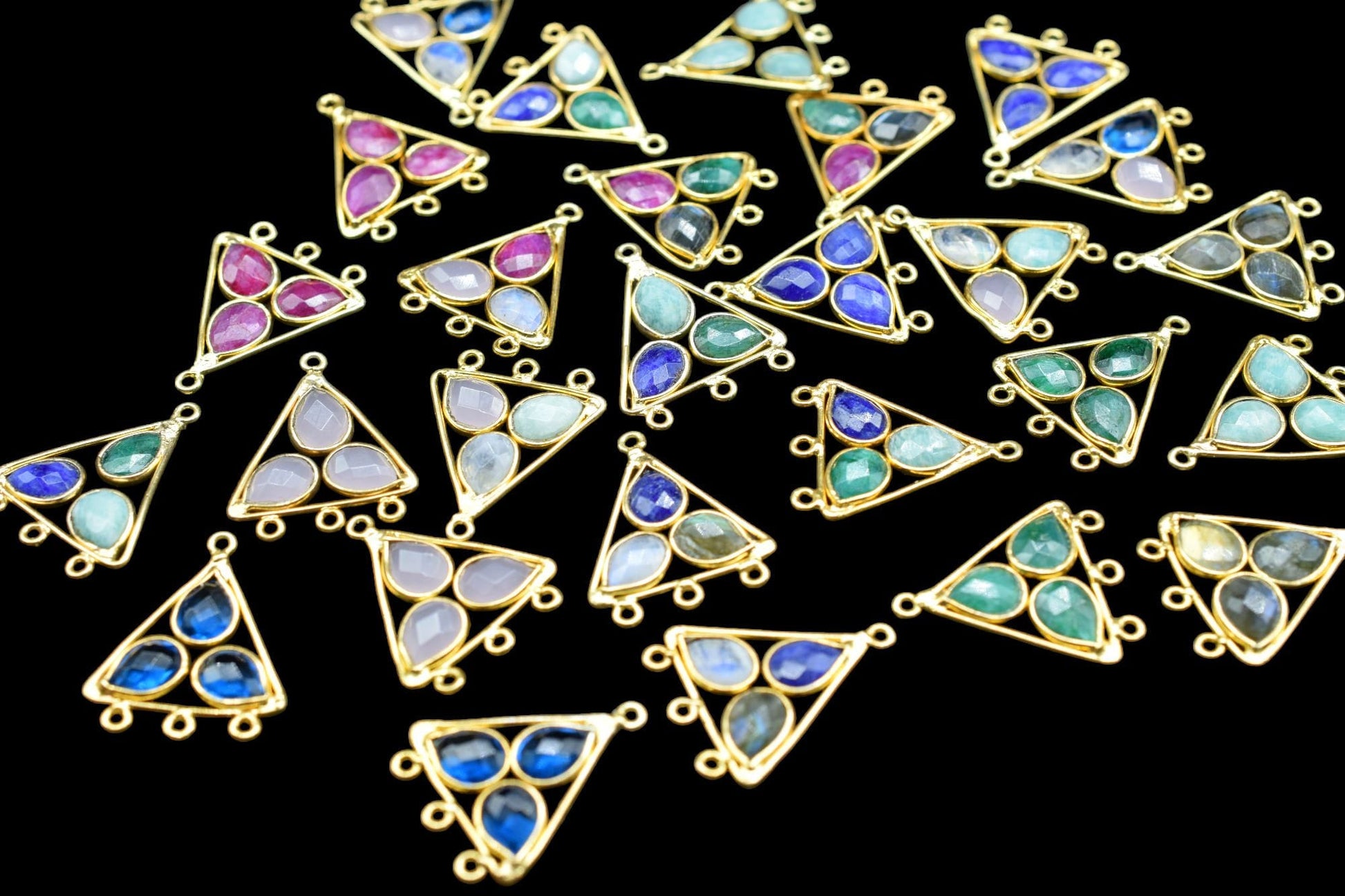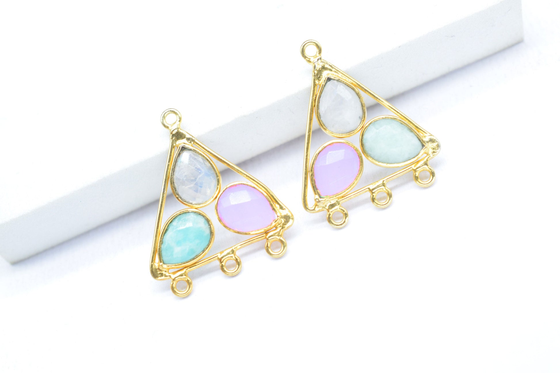 Multi Gemstone Teardrop Faceted Bezel Connector,Handcrafted Gemstone Connector,Multi Gemstone Pendant,Amazonite Pendant,Jewelry Component,