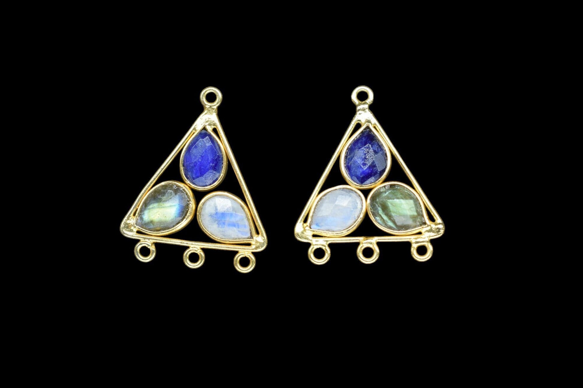 Multi Gemstone Teardrop Faceted Bezel Pendant,Handcrafted Gemstone Component Connector,Multi Gemstone Bezel Connector,Tringle Shape Pendant,