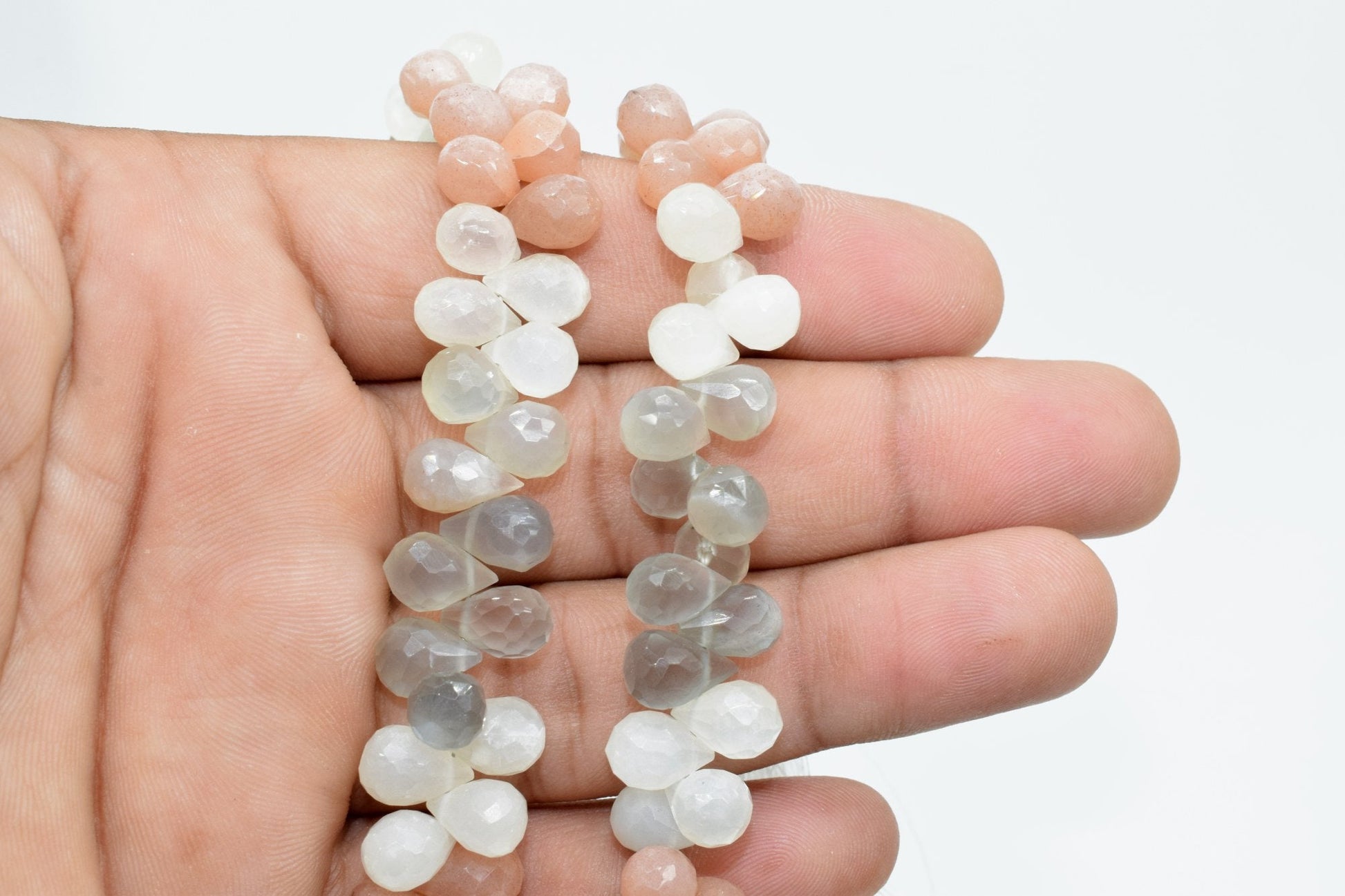 Multi Moonstone Faceted Drops,Multi Moonstone briolette,10''moonstone drops strand,7x10 mm teardrpo faceted beads,jewelry making drops