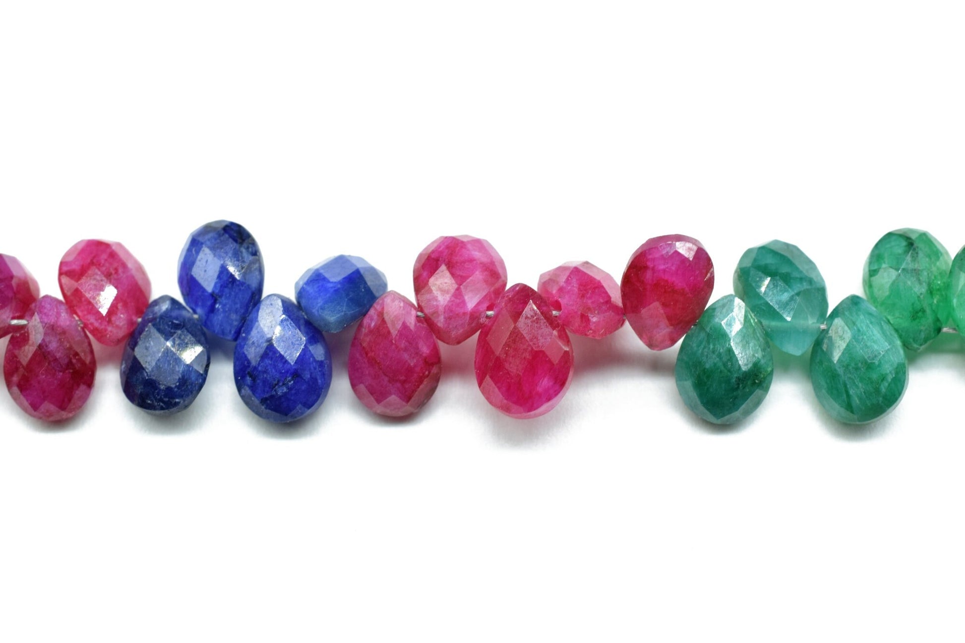 Multi Precious stones Faceted Pear Shape Beads Strand,6x8mm Teardrop Emerald Faceted Beads,Sapphire pear shape Strand,Ruby Faceted Briolette