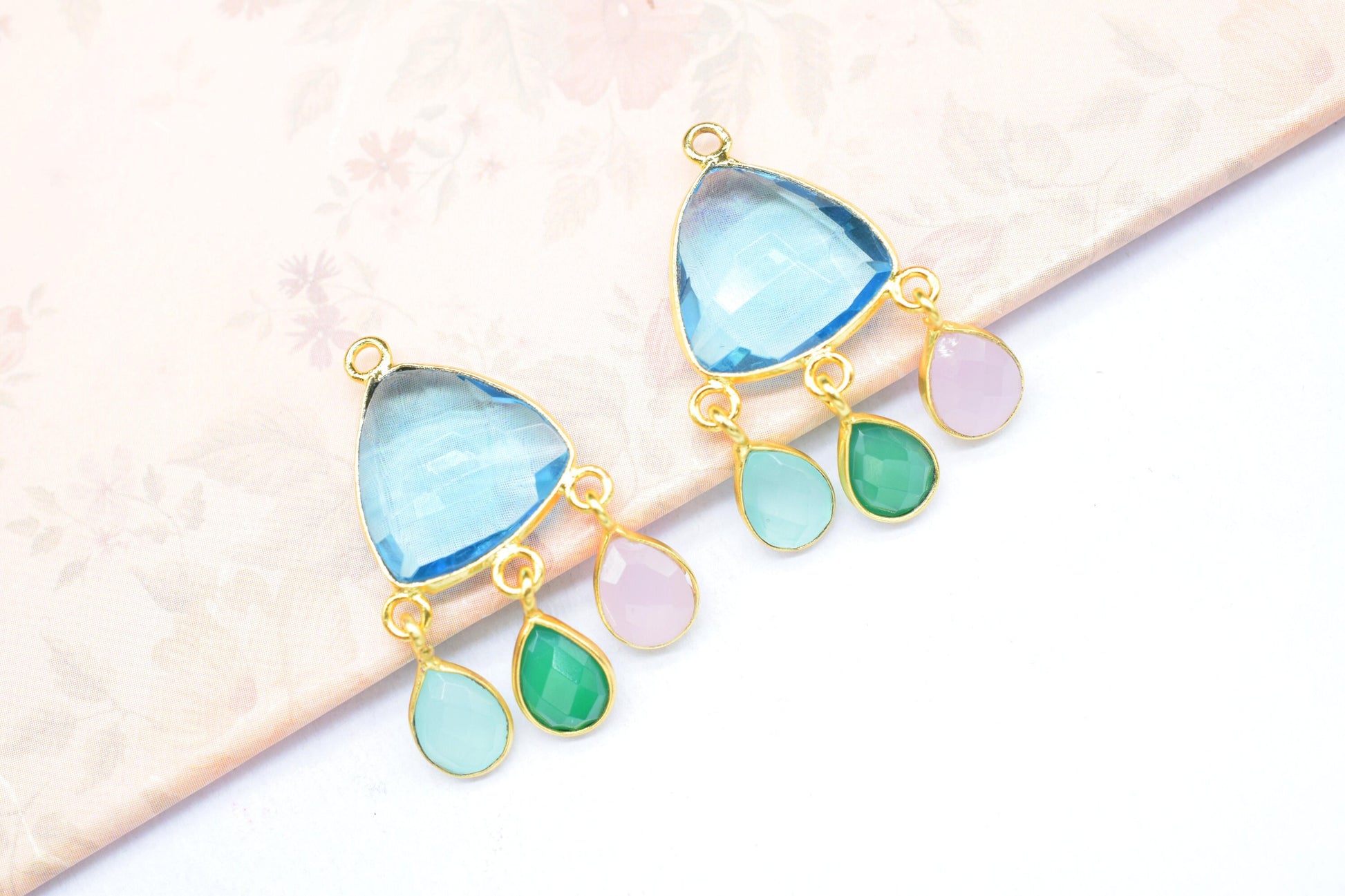 .Multi Stone Bezel Charms Connector/Mix Pendant/Connector Bezel Jewelry/Station Bezel Link Pendant/Handmade Jewelry/Connector/B'day Gift