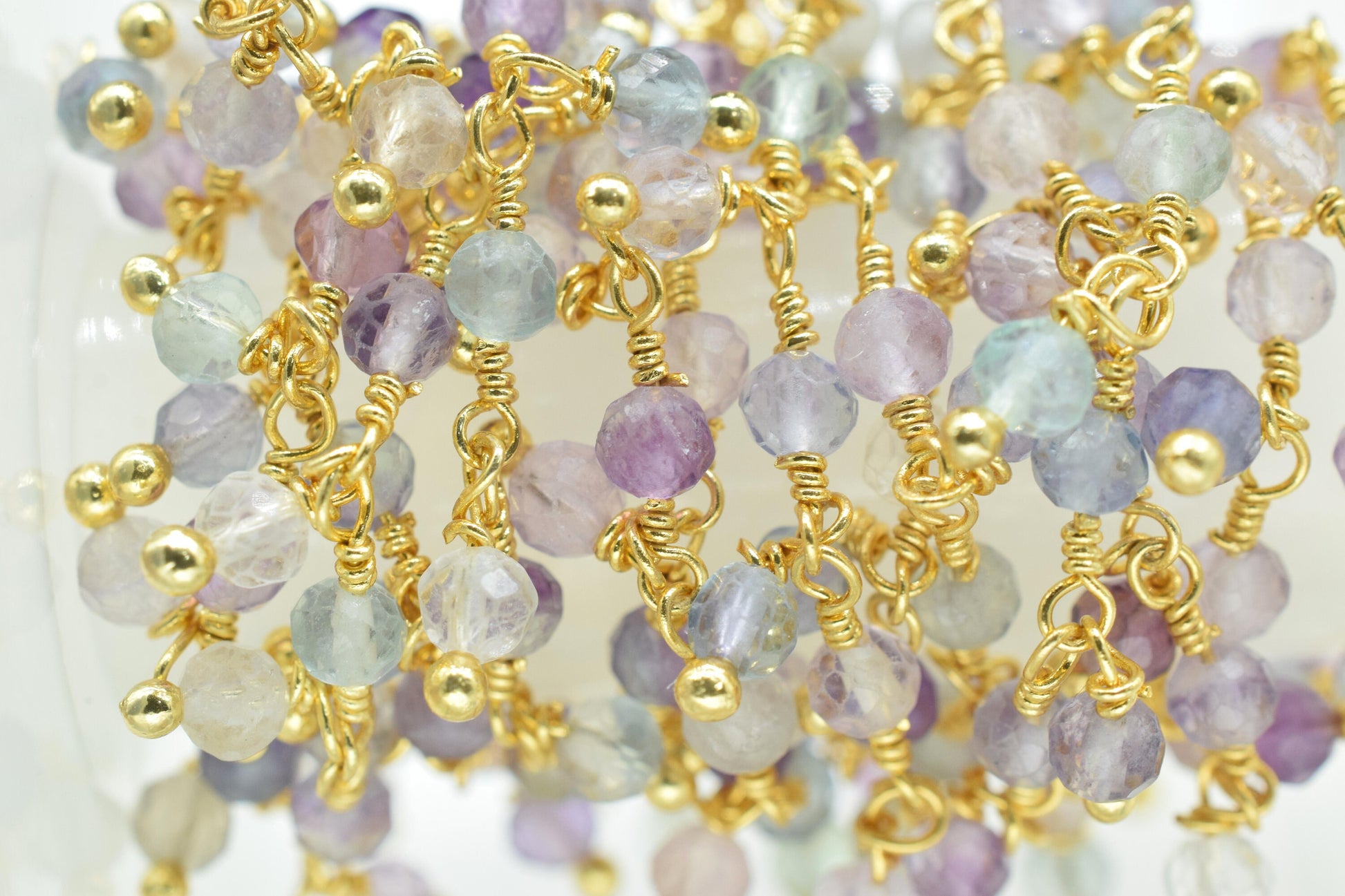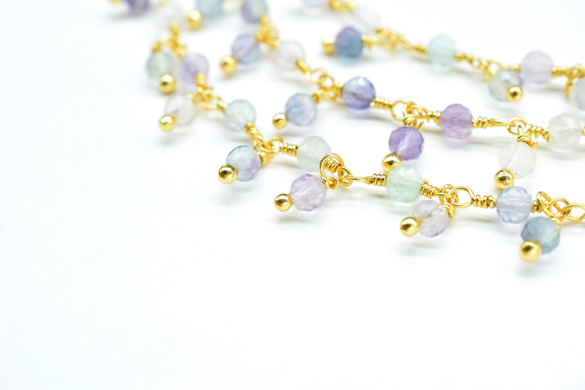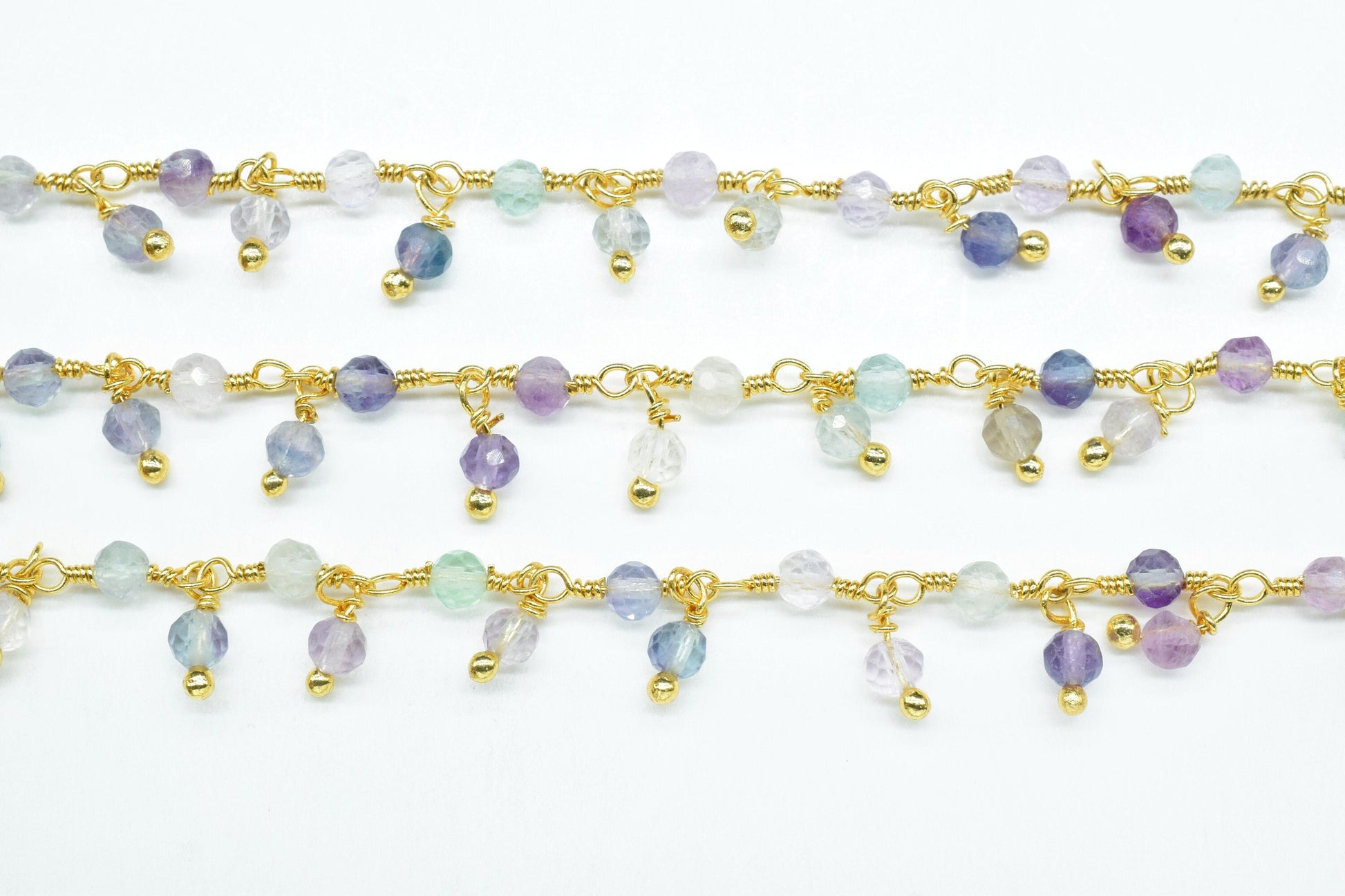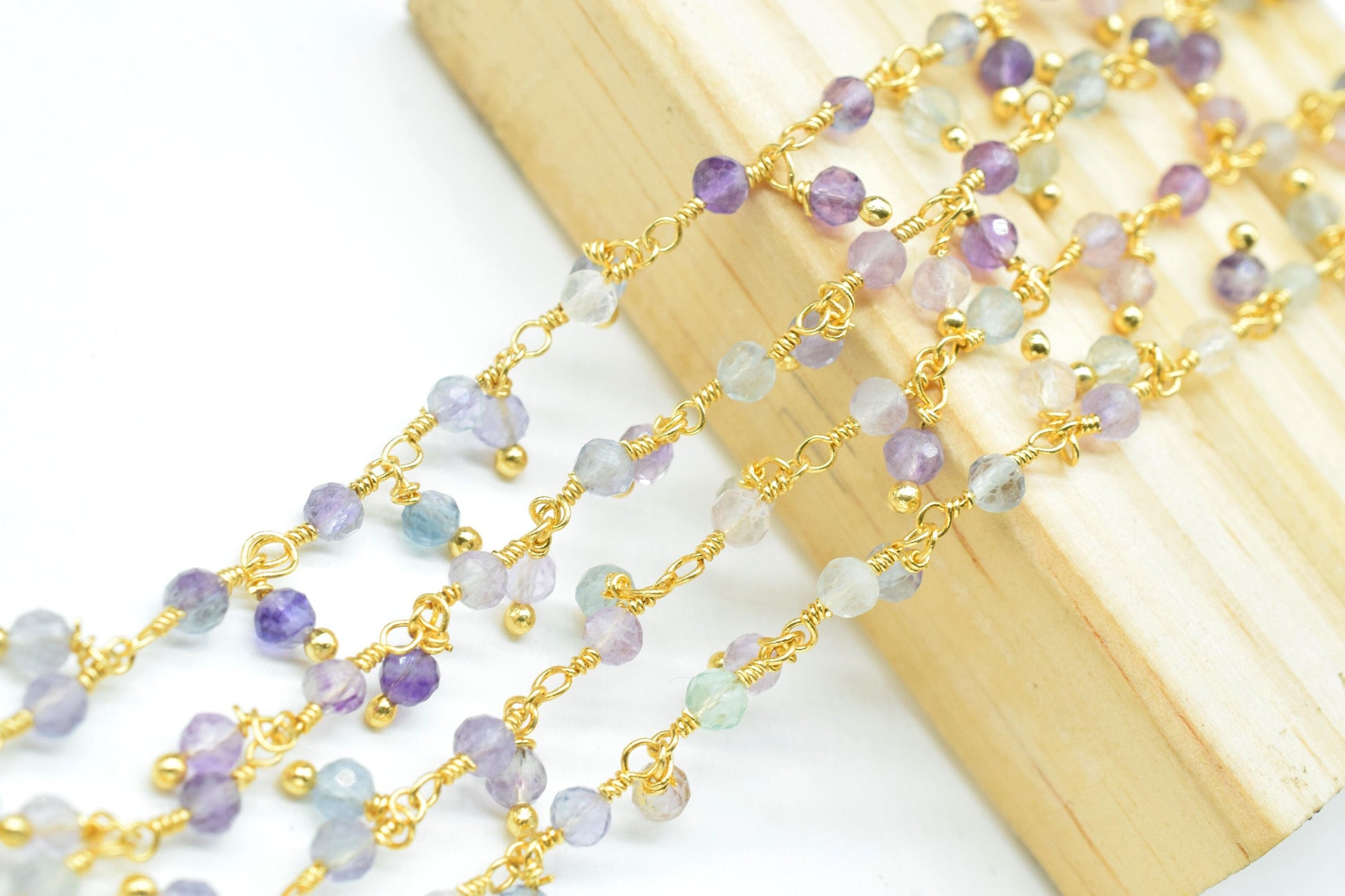 .Multi Stone Dangling beaded Chain,Gemstone Rosary Chain,Wire Wrapped Necklace Chain,Multi Stone Cluster Rosary Chain,Handmade Beads Jewelry