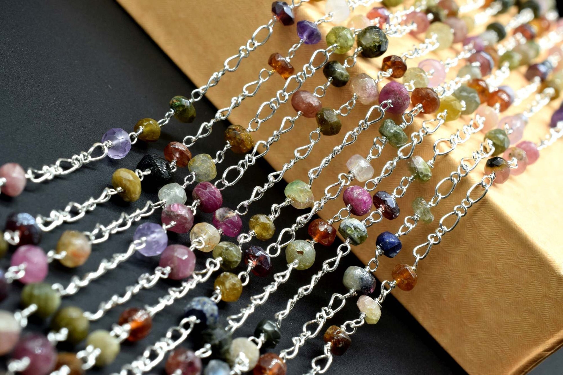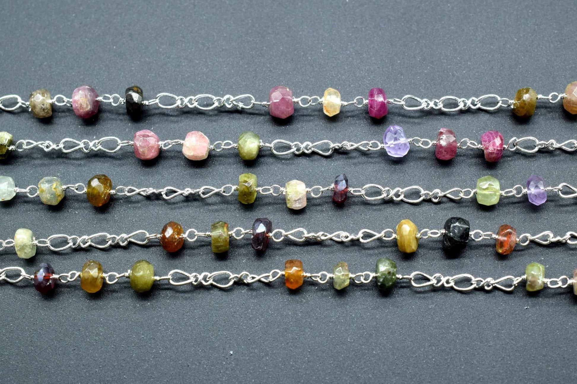 Multi Tourmaline Rosary Chain,Multi Tourmaline Wire Wrapped Rosary,beaded chain,Natural Multi Tourmaline beaded Chain,gold chain,chains,