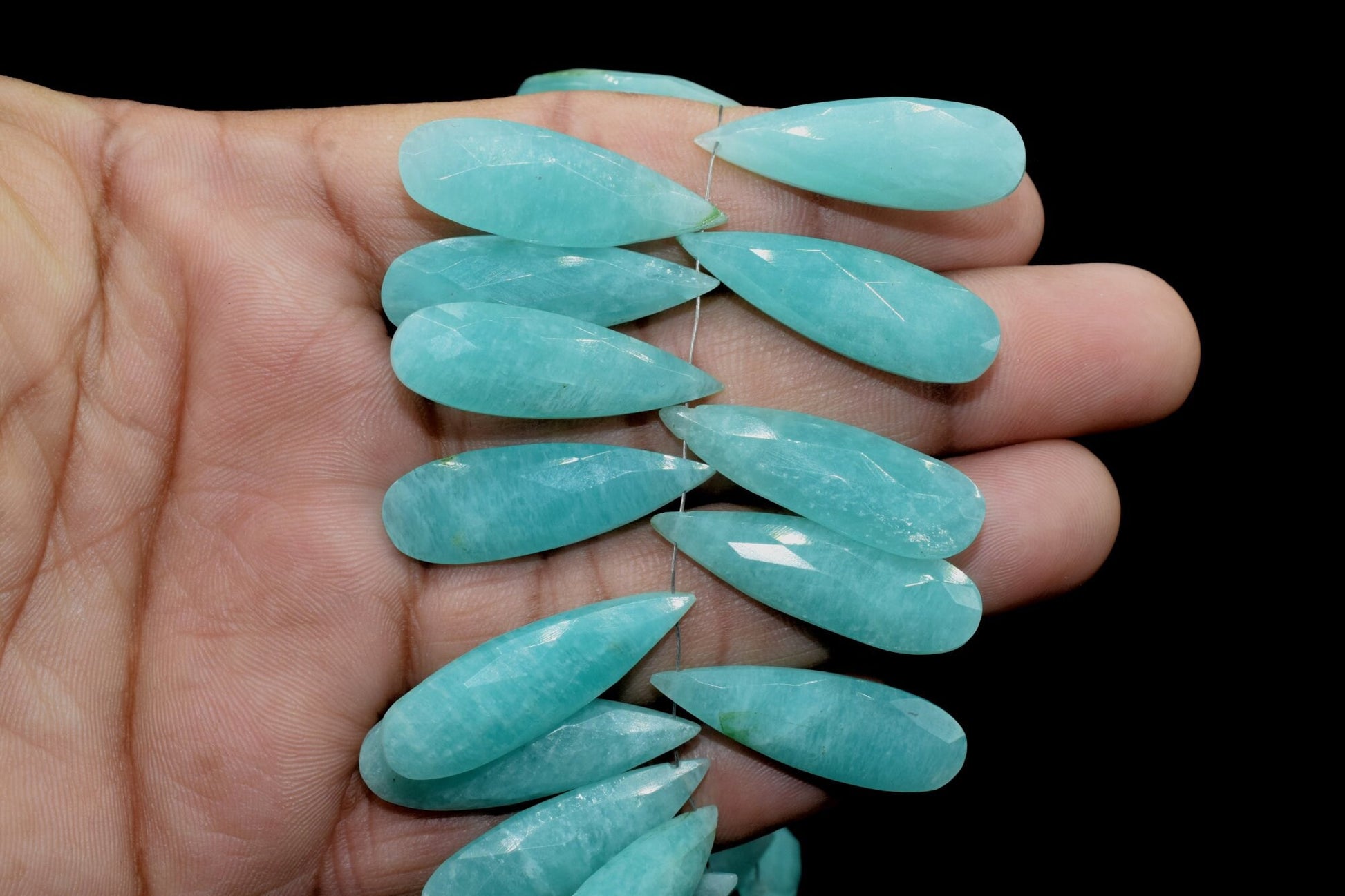 Natural Amazonite Faceted 10x30mm Pear Shape Briolettes,Long Pear Shape Beads,10x30mm Teardrop Beads,Amazonite Pear,Amazonite Teardrop beads