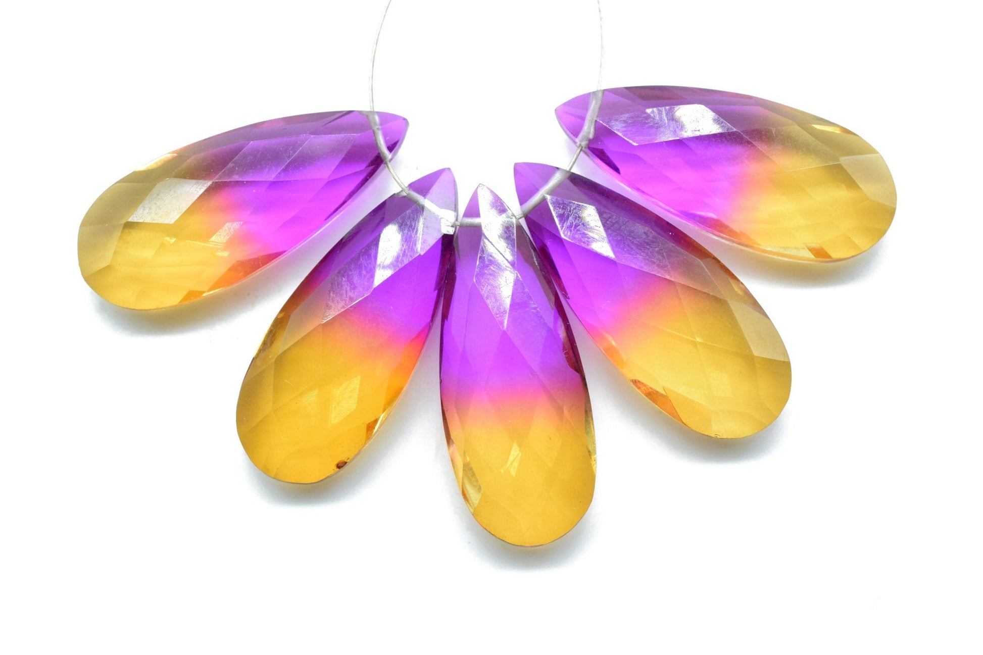Natural Ametrine 10x30mm Faceted Pear Shape Briolettes,Ametrine Briolette AAA Flat Pear Drops Micro Faceted,Ametrine Faceted Drops,Briolette