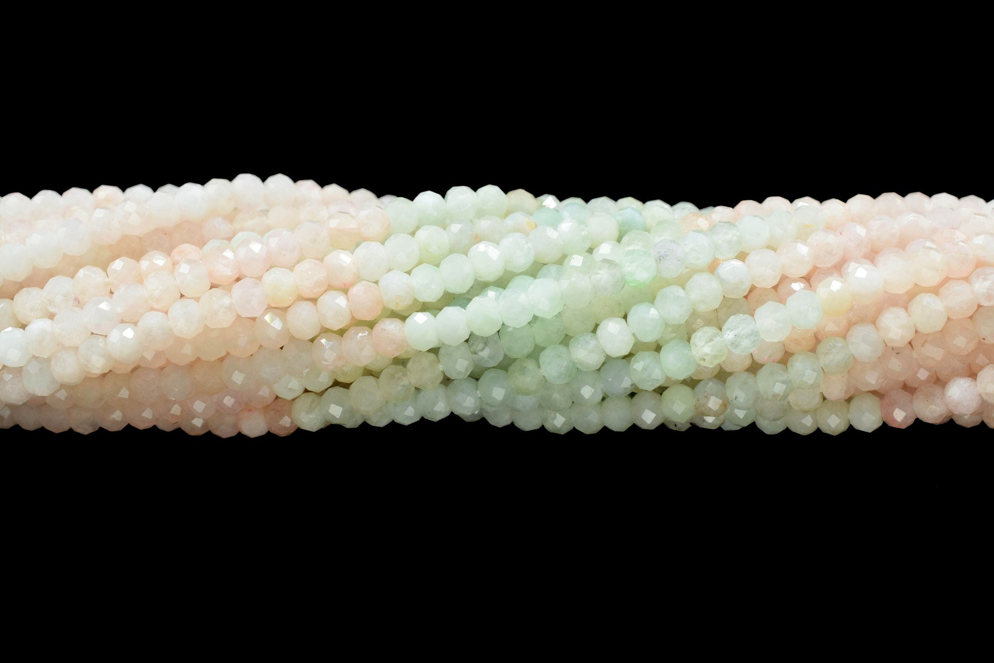 Natural Aquamarine Faceted Beads,3mm Rondelle,Aquamarine Shaded Beads,Micro faceted beads,Gemstone Beads Strand,Rose Quartz Beads Jewelry