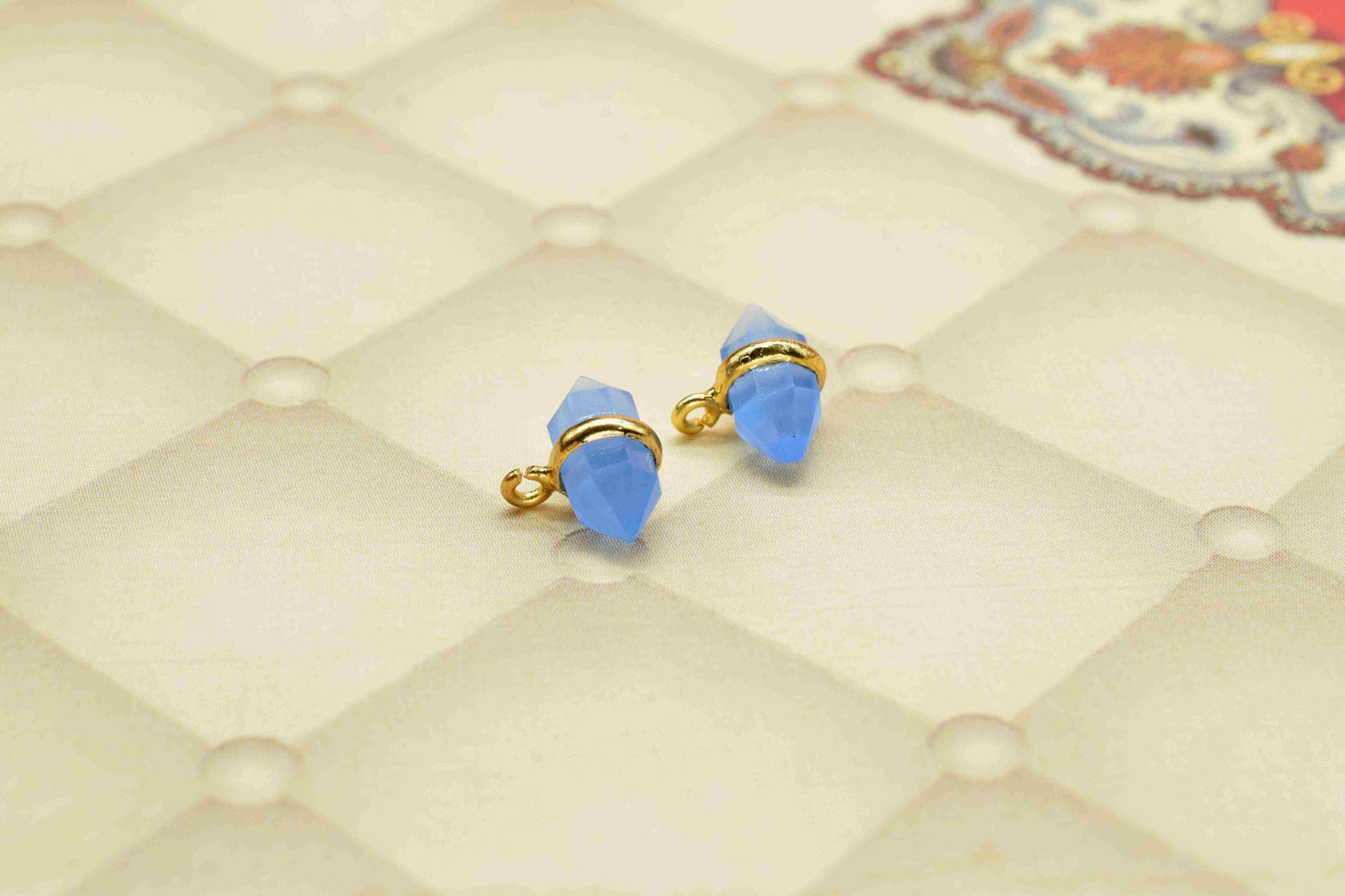 .Natural Blue Chalcedony Faceted Double Terminated Points Pendant,Chalcedony 5x12mm Single Bail Pendant Jewellery,Gold Plated Band Pendant,Gift