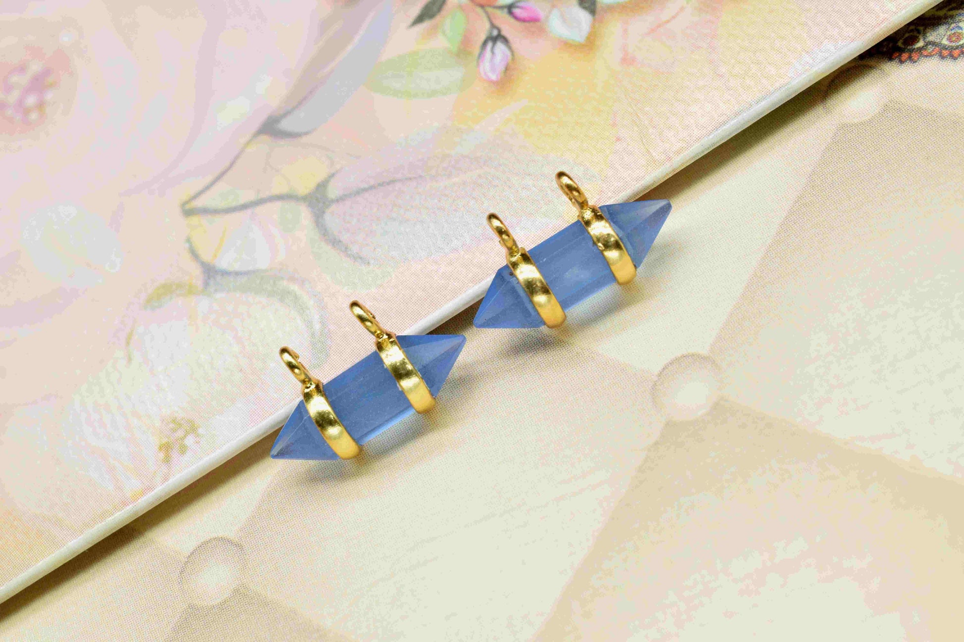 .Natural Blue Chalcedony Faceted Double Terminated Points Pendant,Chalcedony 5x15mm Double Terminated Jewellery, Gold Plated Band Pendant,Gift
