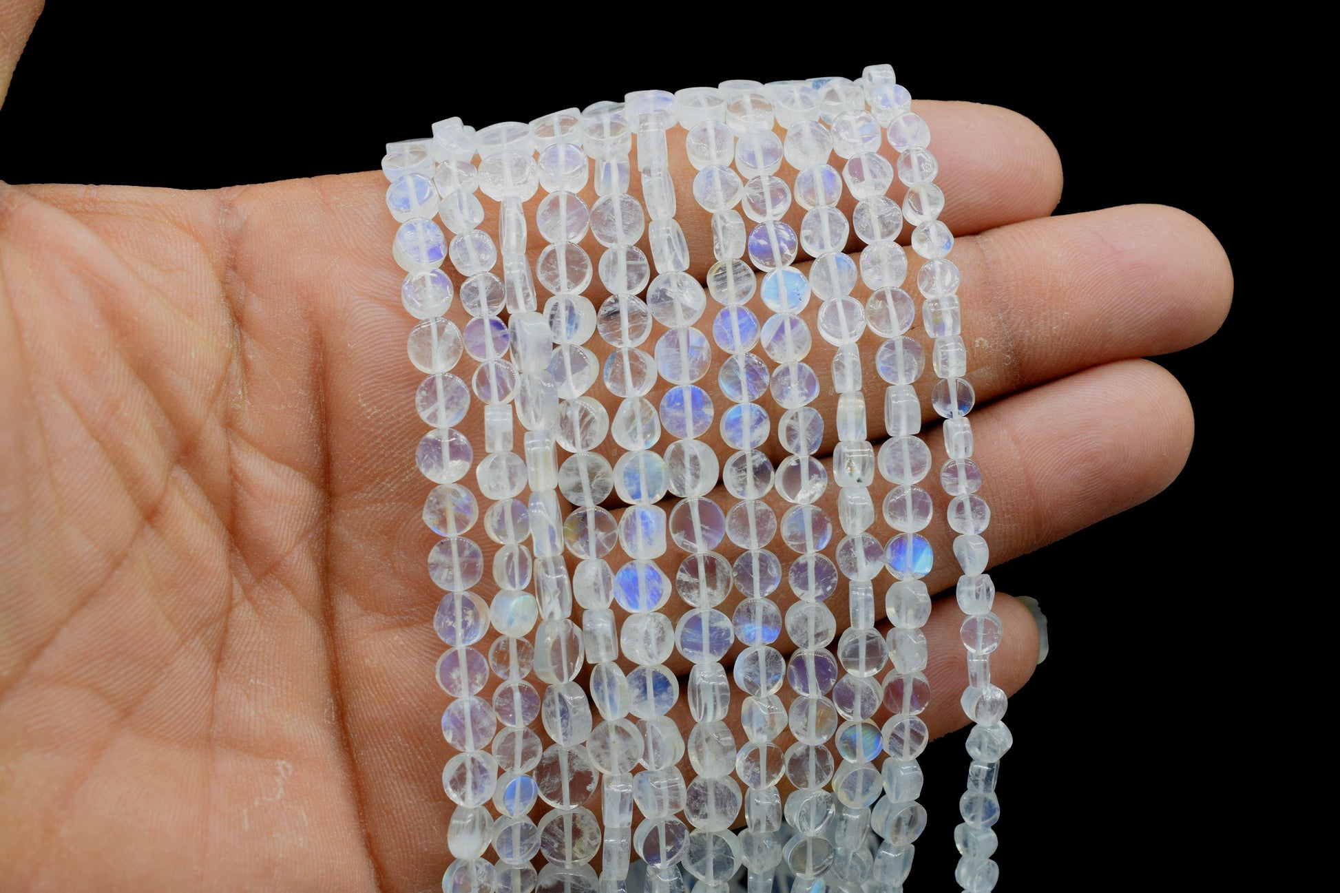 Natural Blue Fire Rainbow Moonstone Coin Beads,4 to 5mm White Rainbow Moonstone Smooth Coin Beads,AAA Moonstone Beads,Semi Precious Gemstone