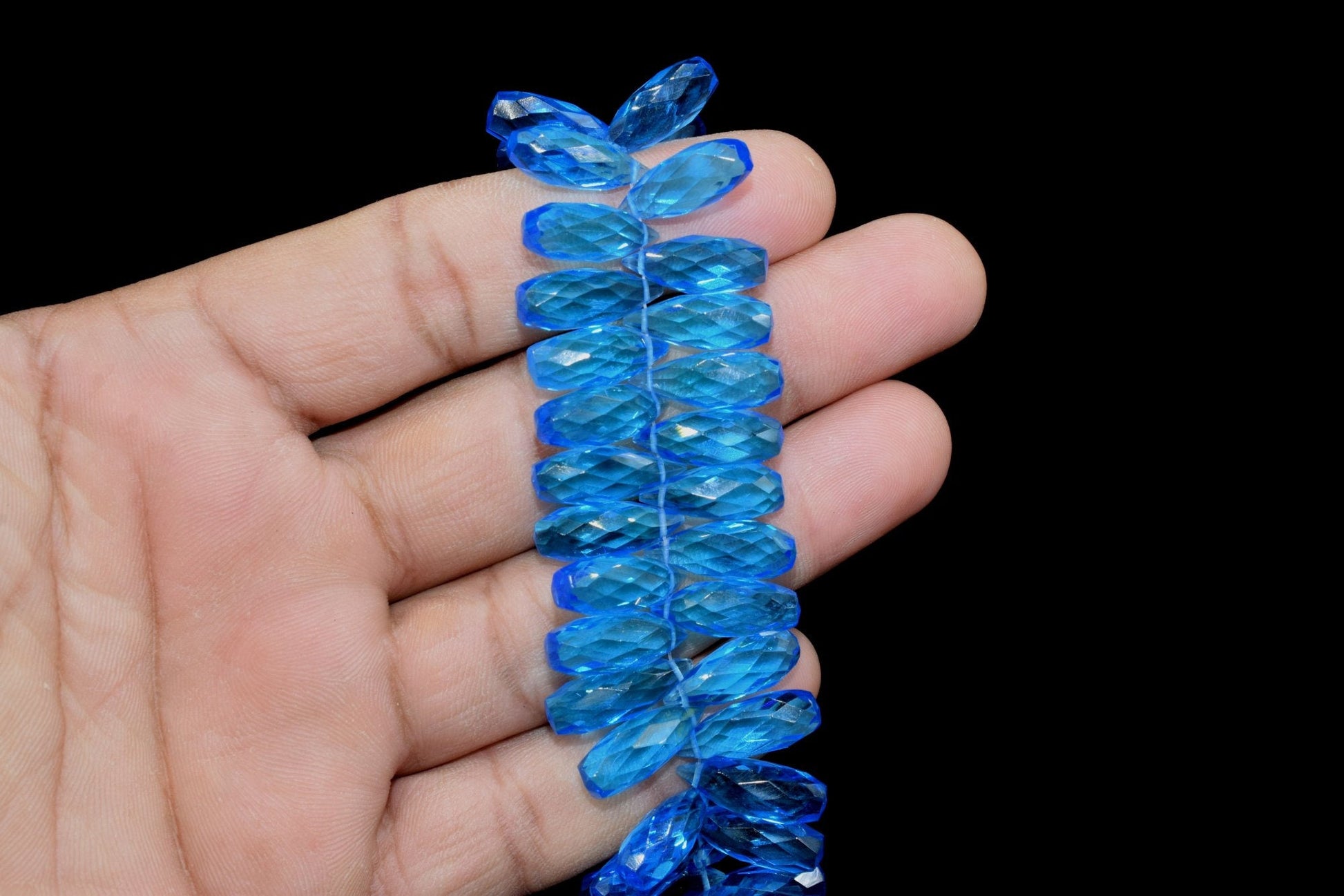 Natural Blue Topaz Teardrop 6x16mm Briolettes, Gemstone Teardrop Briolettes, Super Blue Topaz Briolettes, Jewelry Making Briolettes Drops