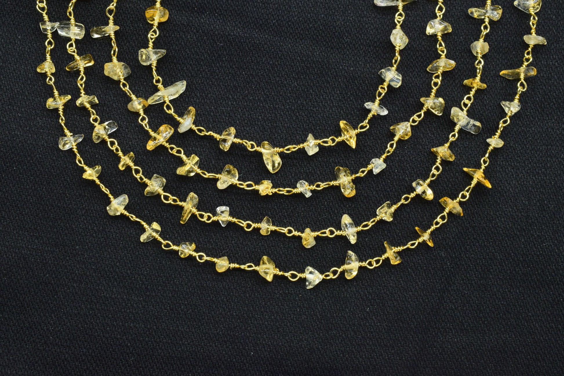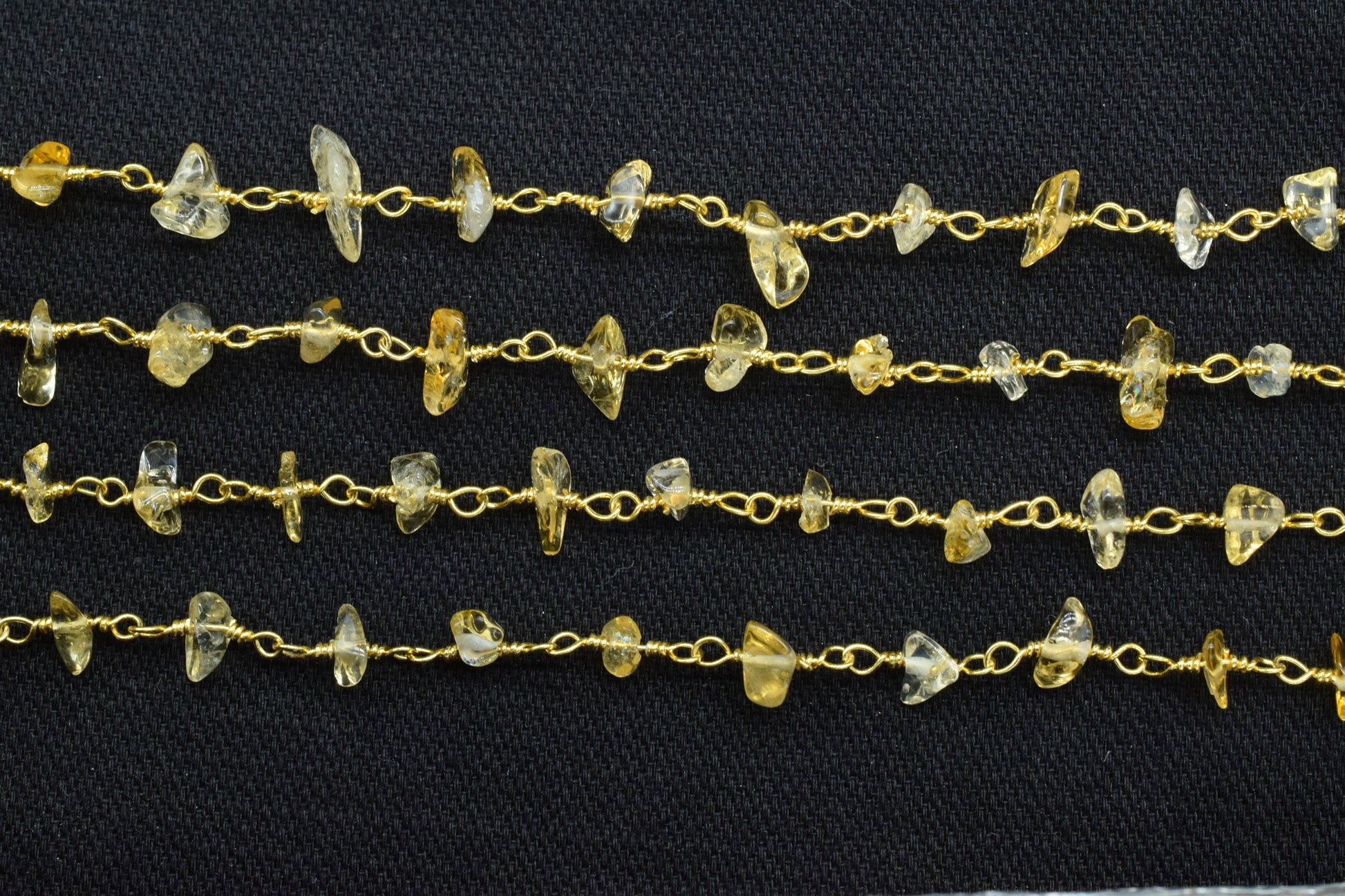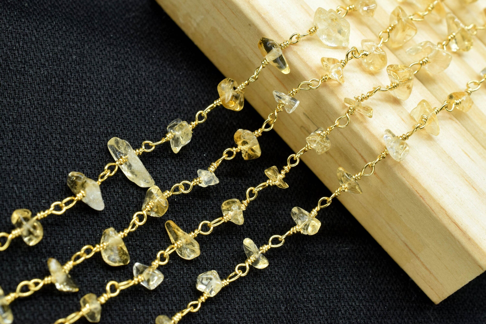 Natural Citrine Chips Rosary Chain,Nugget Rosary Chain,Finding Wire Wrap Necklace Chain,Gemstone Rosary,Handmade Jewelry Carft Supplies,Gift