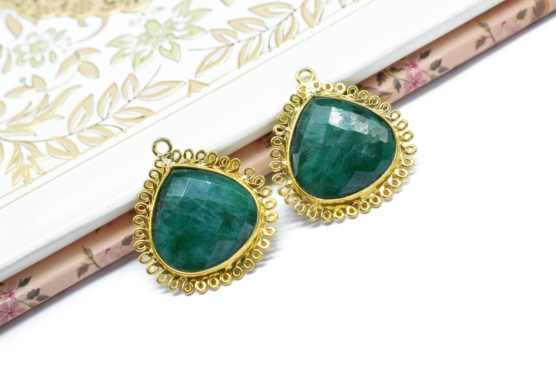 Natural Emerald 20mm Heart Bezel Charms,Gemstone Boho Pendant,Wholesale Jewelry,Single Bail Component Charms,Handmade Jewellery Connectors
