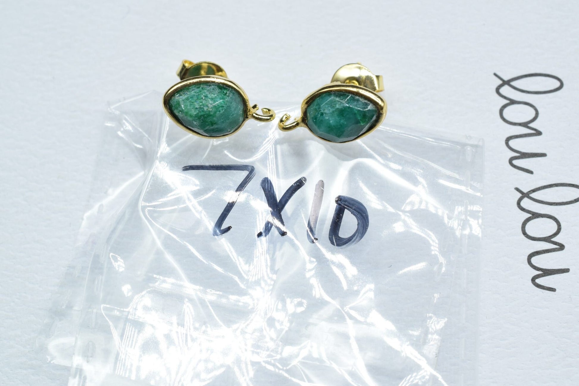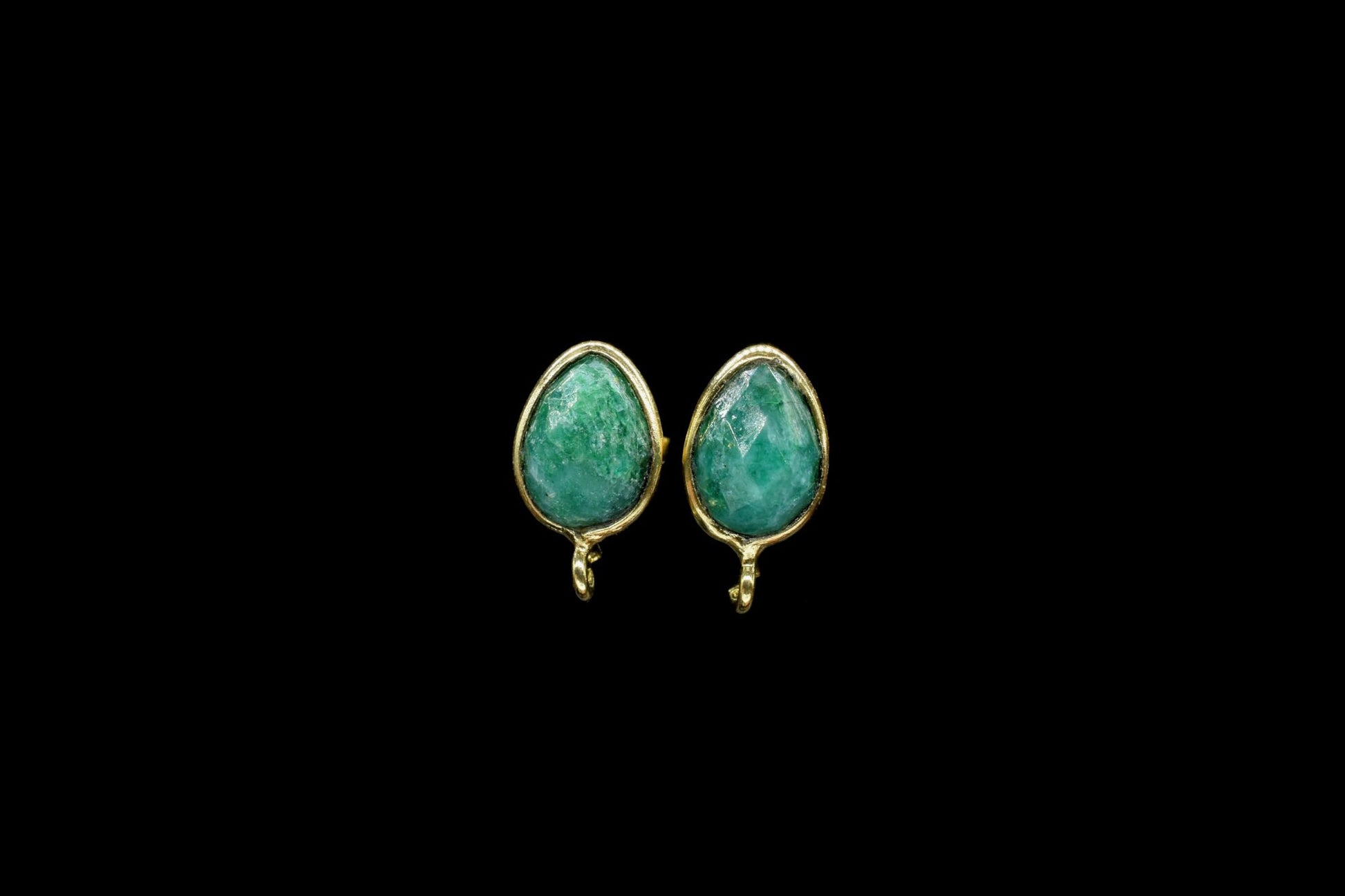 Natural Emerald 7x10mm Earring Connectors,Gemstone Ear Post Studs,Single Loop Gemstone Connectors,Jewelry Making Supplies,Connectors Studs