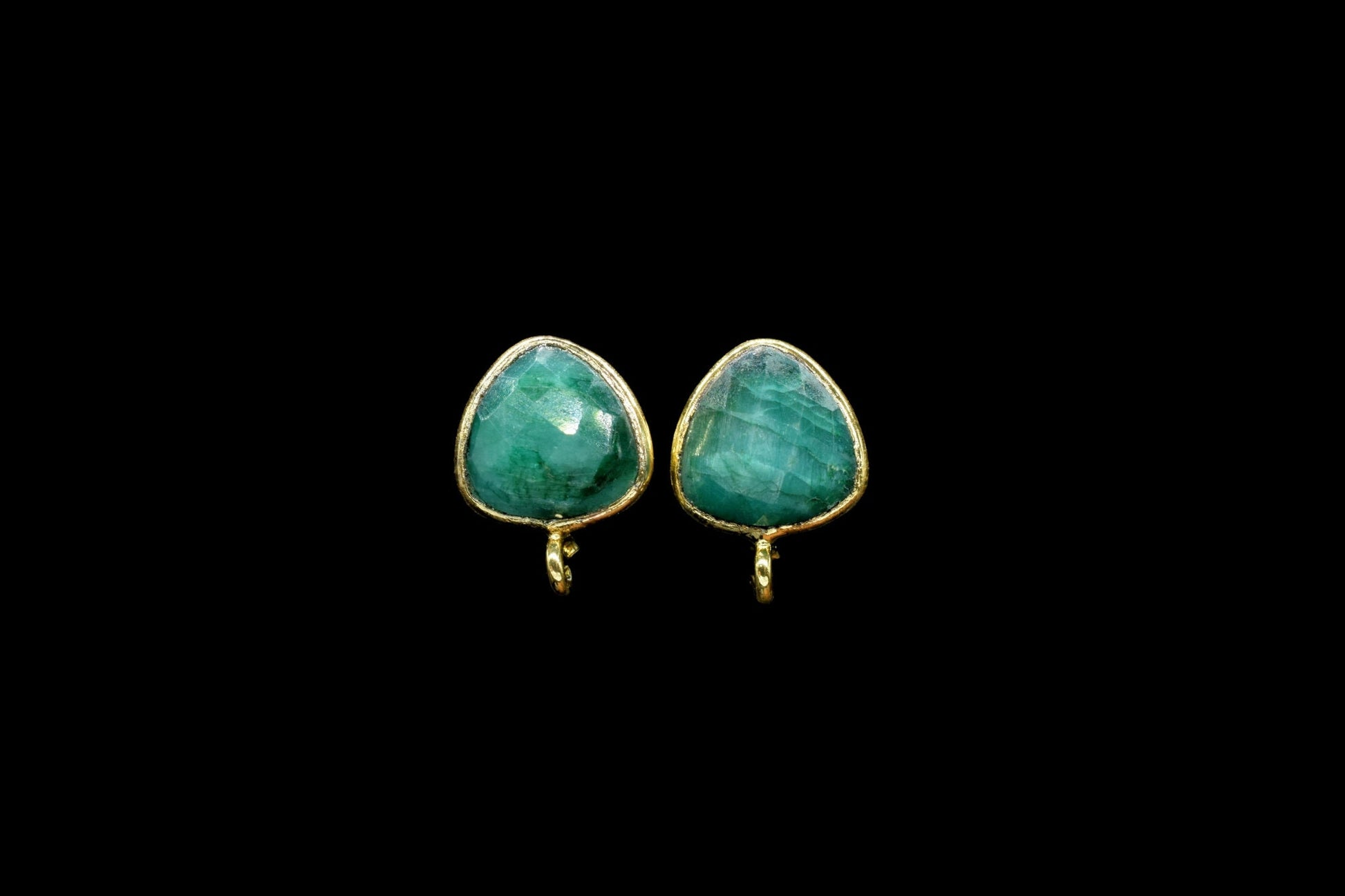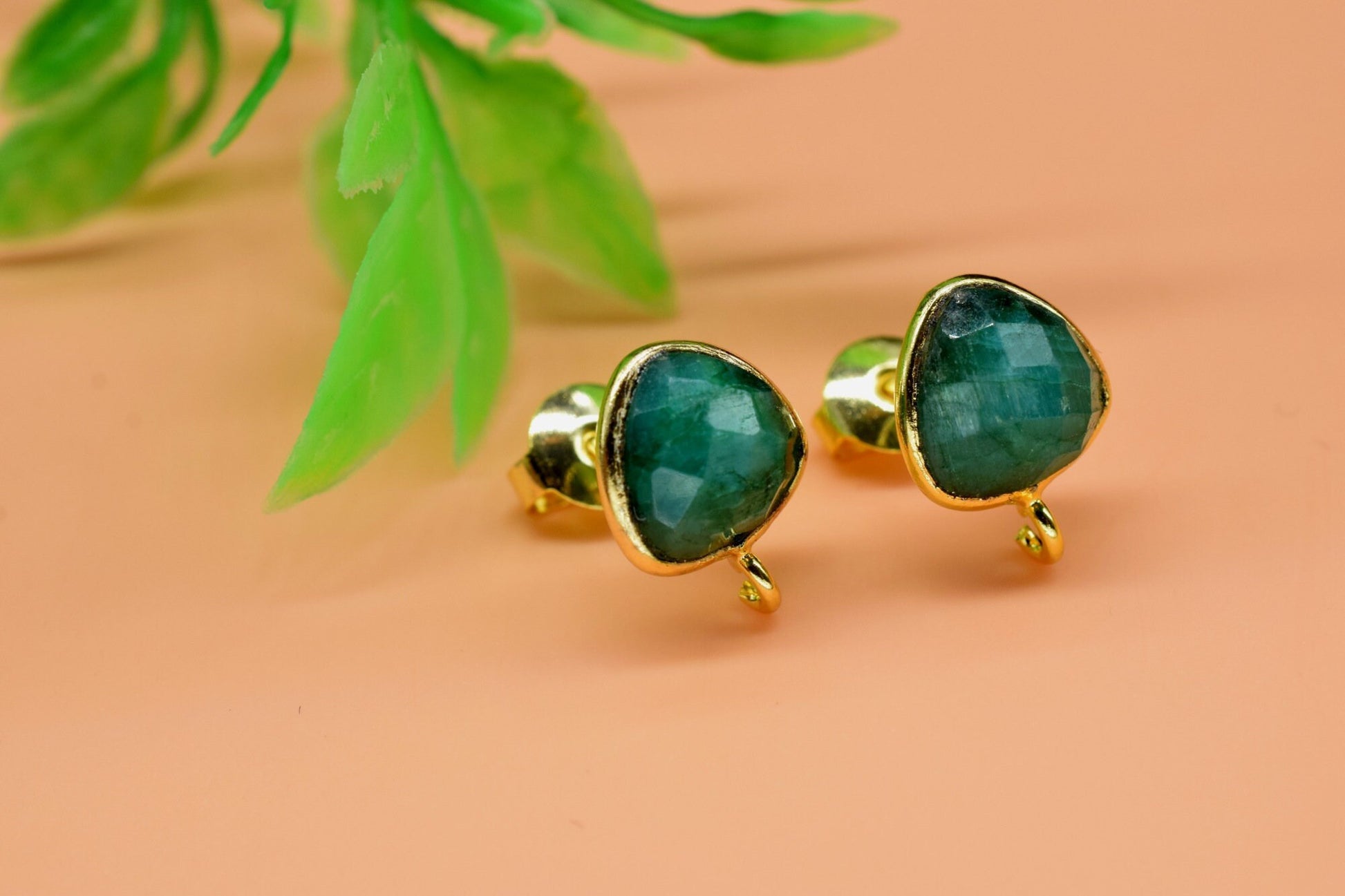 Natural Emerald 8mm Heart Shape Connector Post Stud,Jewelry Making Supply,Single Loop Gemstone Earring Connector,Earring Making connector
