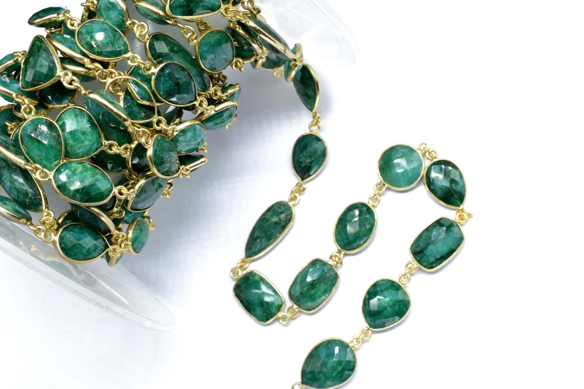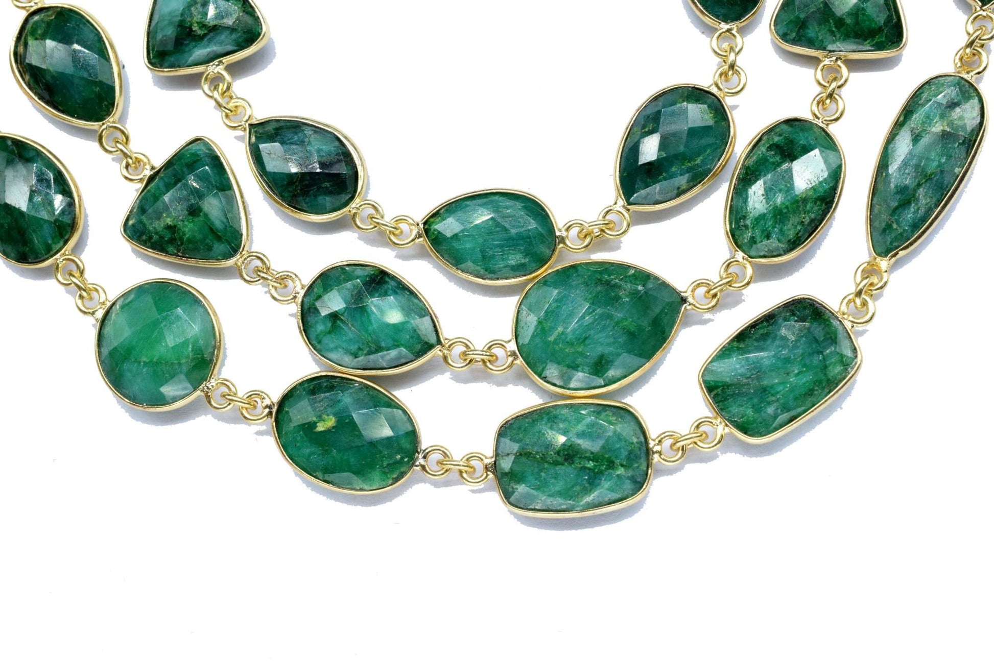 .Natural Emerald Faceted Connectors, Gold Bezel Chain, Free Size Gemstone Connector, Handmade Station Bezel Link Chain, Emerald Bezel Jewelry