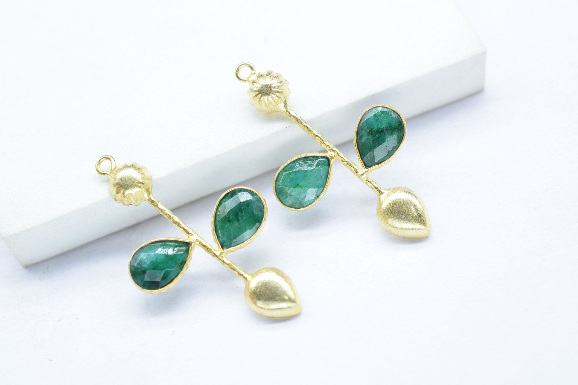 Natural Emerald Teardrop Faceted Bezel Connector,Emerald Long Earring Connector,Emerald Jewelery ,Emerald Pendant Charms,Brithstone jewelry