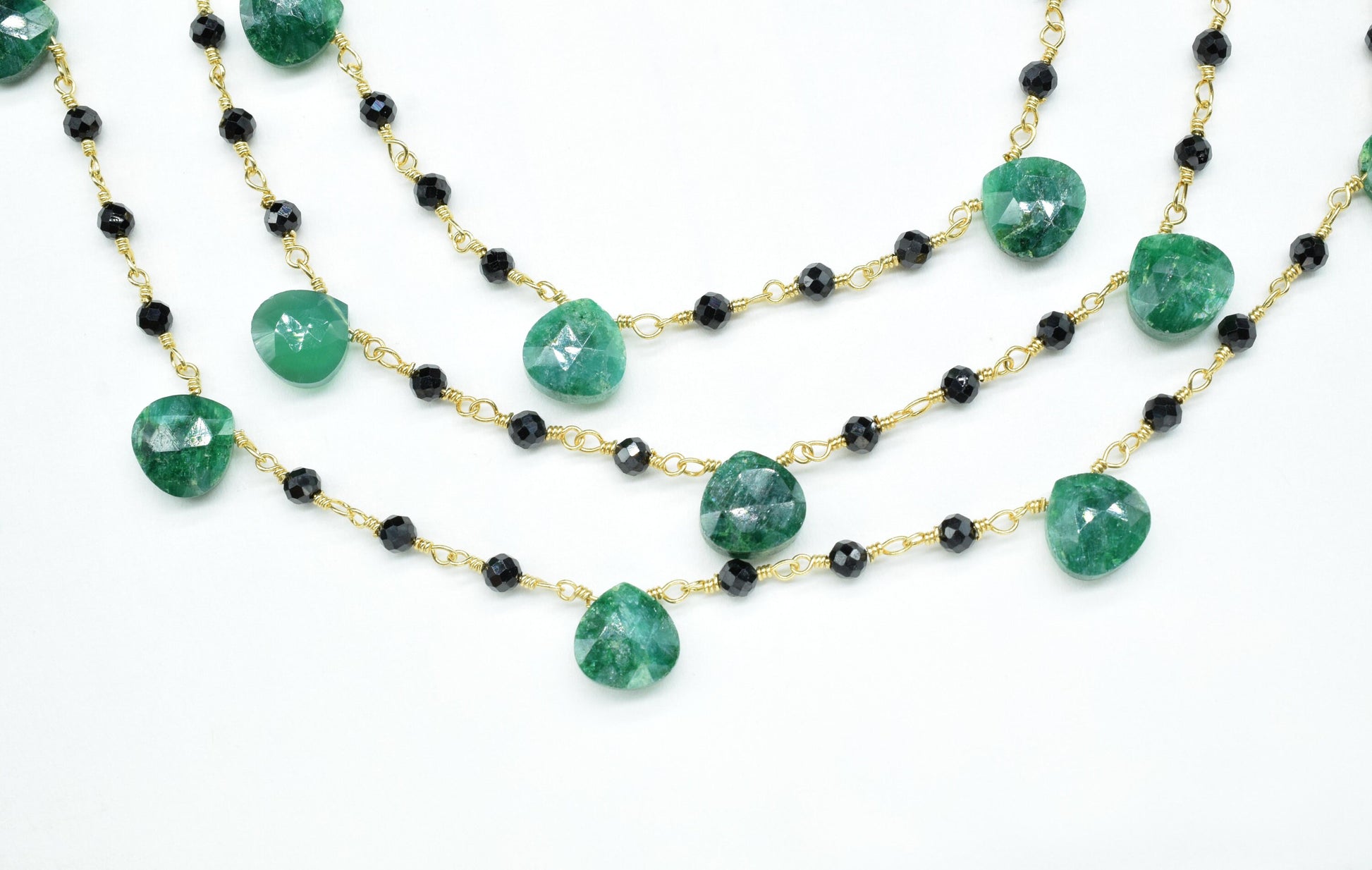 Natural emerald With black onyx Beads Rosary Chain, New Style Cluster Beads Chain, Briolette Drilled Teardrop Shape Chain Supplies.gemstone