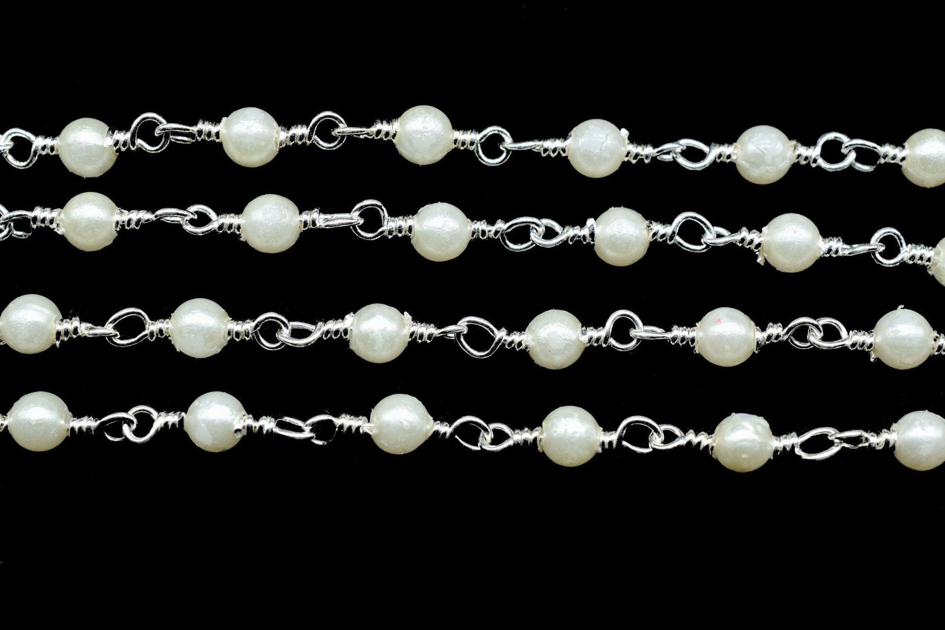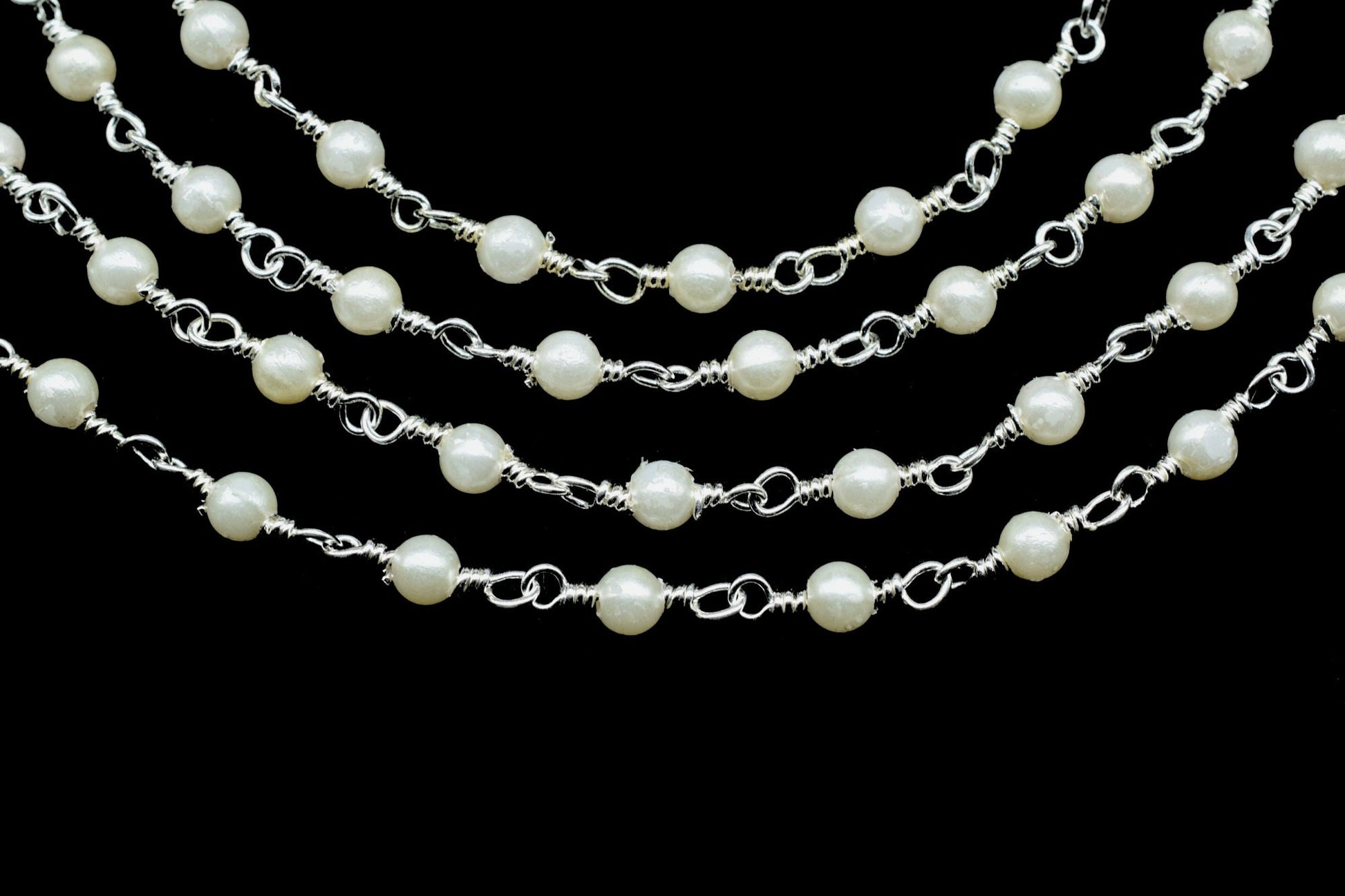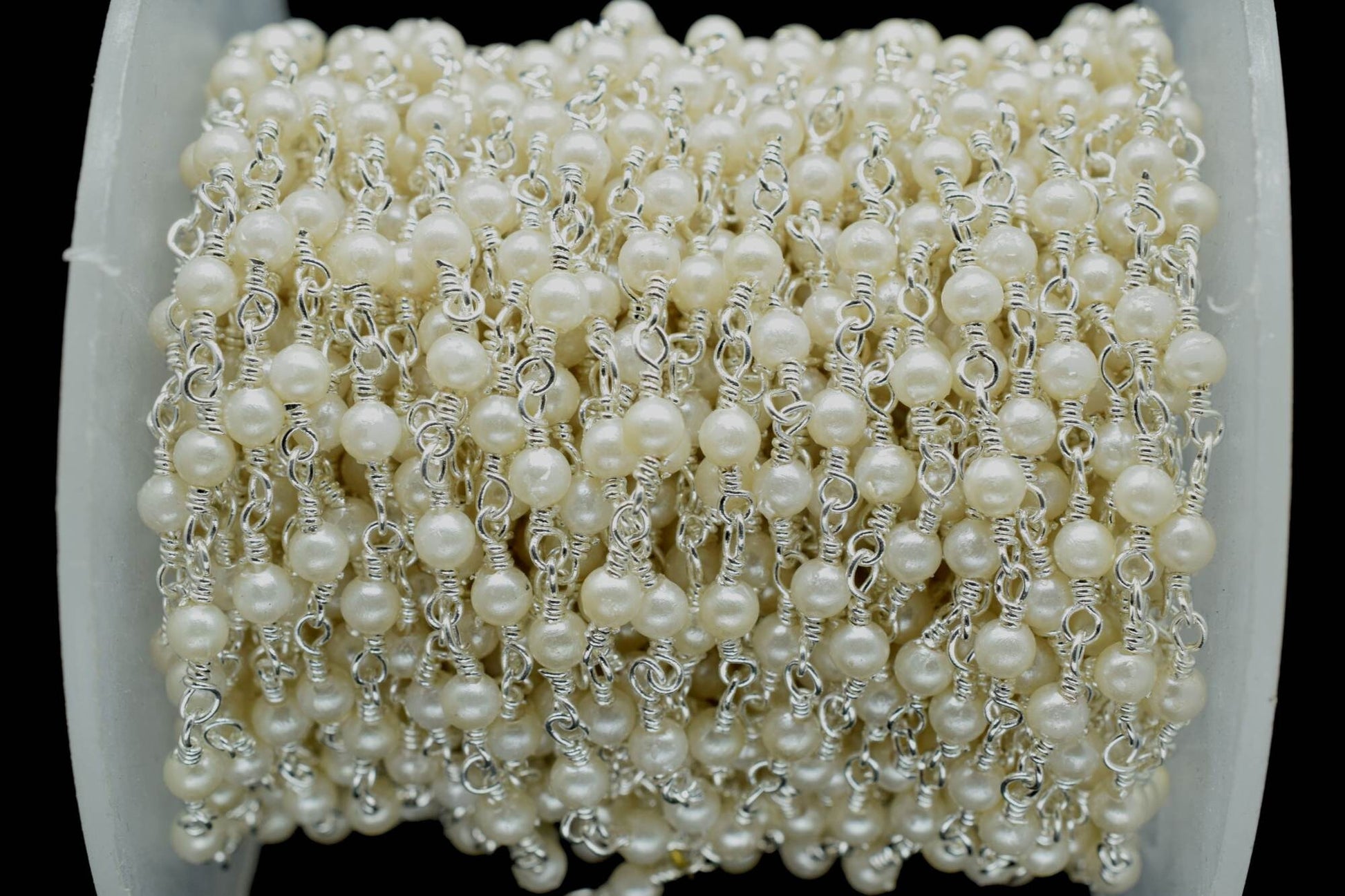 Natural Fresh Water Pearl Rosary Chain,Pearl Beads wire wrapped chain,Jewelry Making Chains,Pearl Wire Wrap Chain,3mm Pearl Beaded Chain,