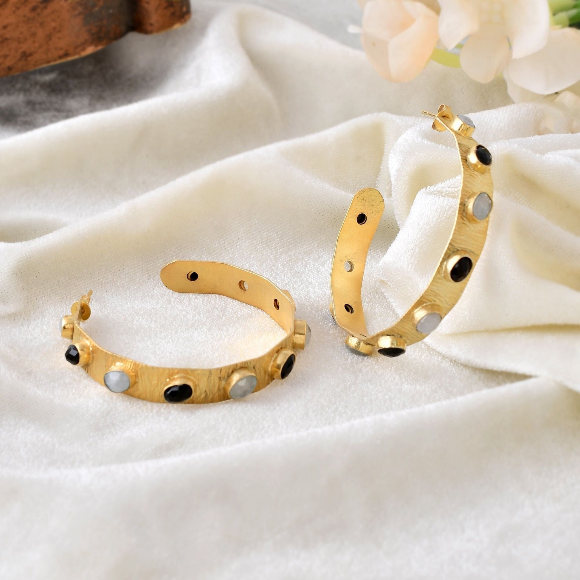 Natural Gemstone Amazonite Earring/Handmade Jewelry/Gold Plated Earring/Black Onyx Earring/Women Earring/Wedding Jewelry/Gift For Her
