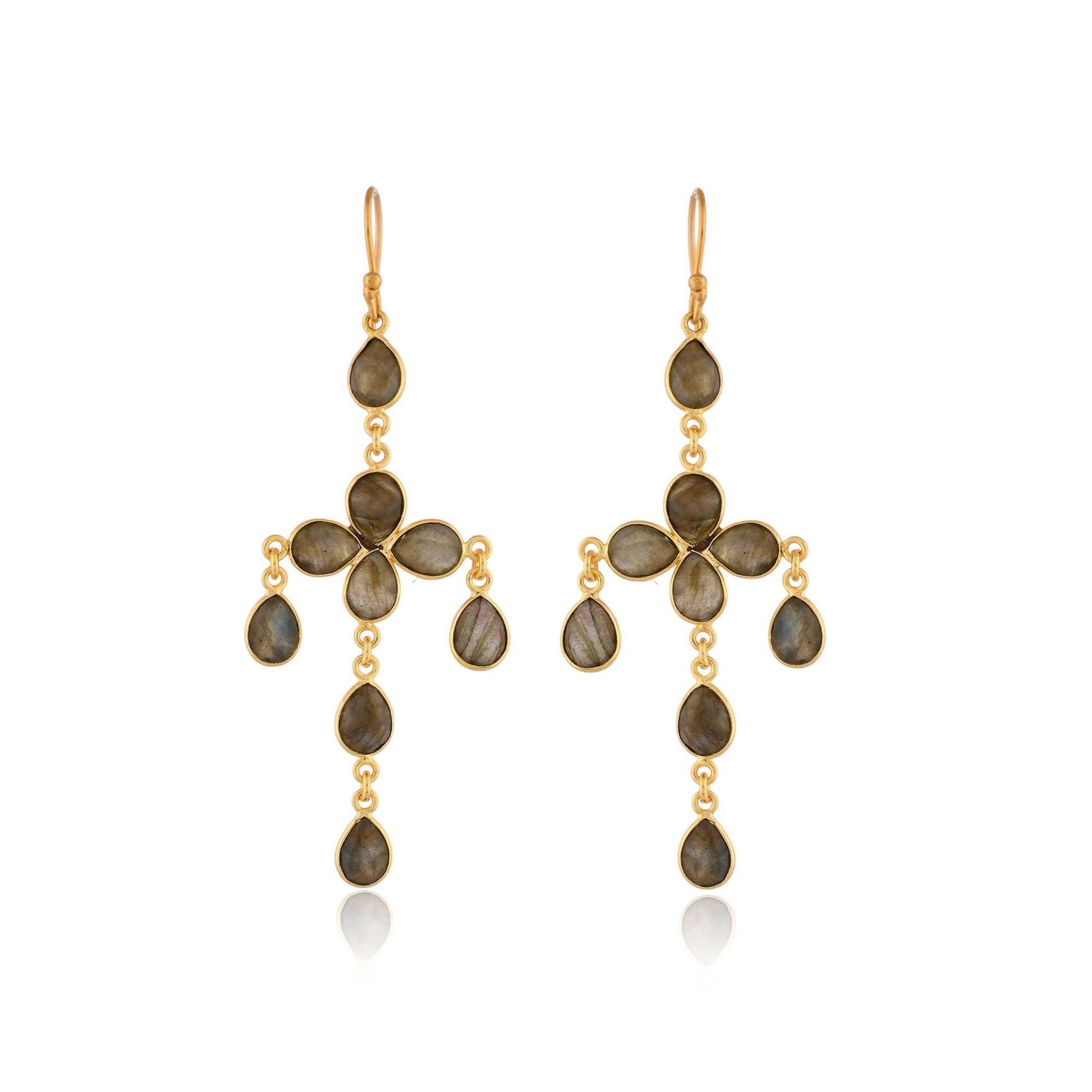 Natural Gemstone Labradorite Earring/Handmade Earring/Bridal Earring/Gold Plated Earring/Dangle Earring/Statement Earring/Long Earring/Gift