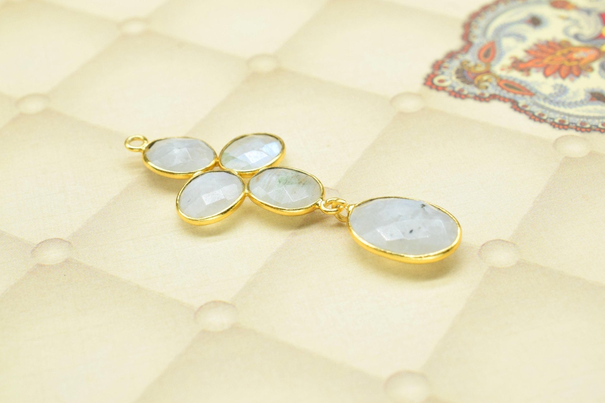 .Natural Gemstone Pendant,Wedding Pending,Handmade Component Jewelry,Gemstone Bezels Pendant Charm,Natural Rainbow Moonstone Pendant,Gift