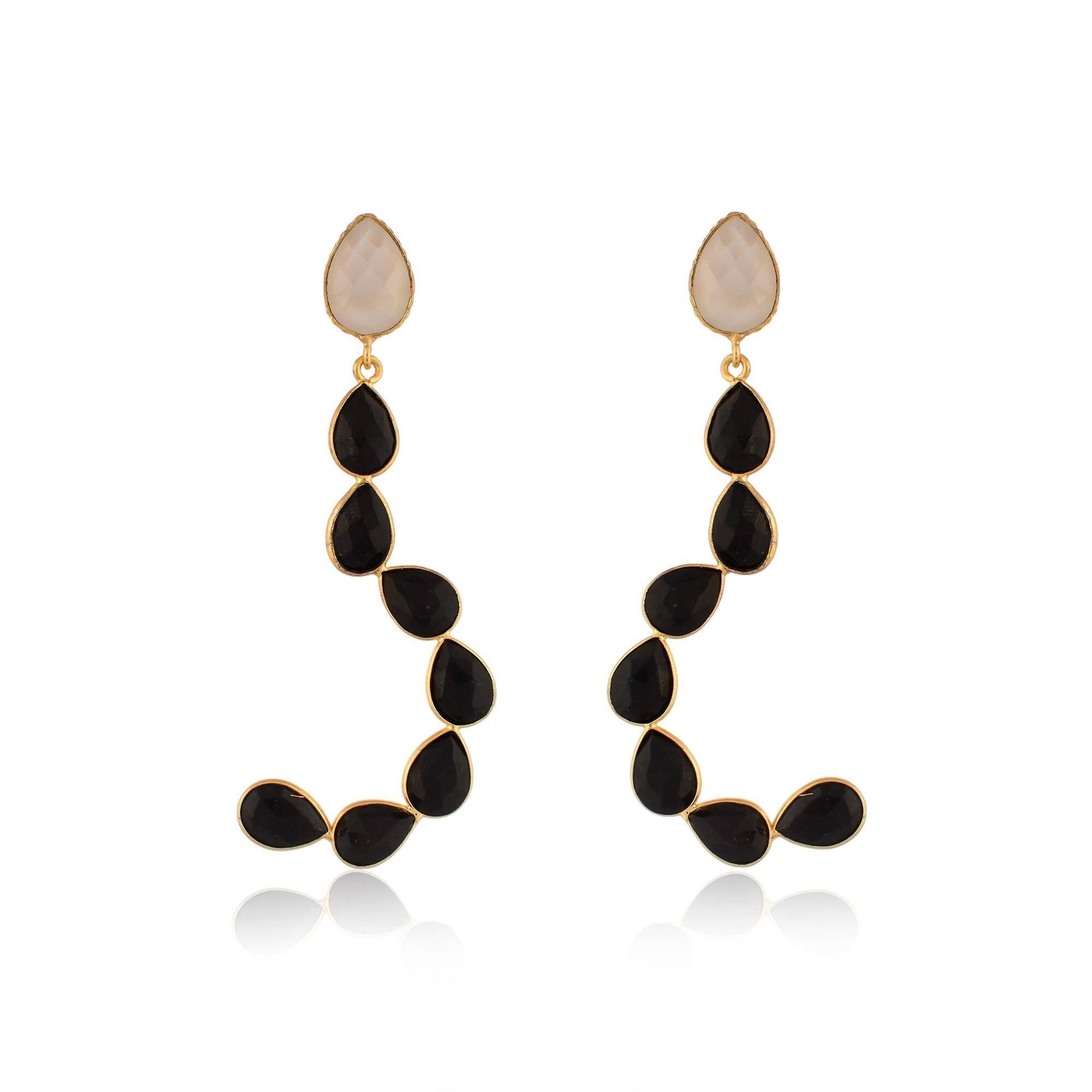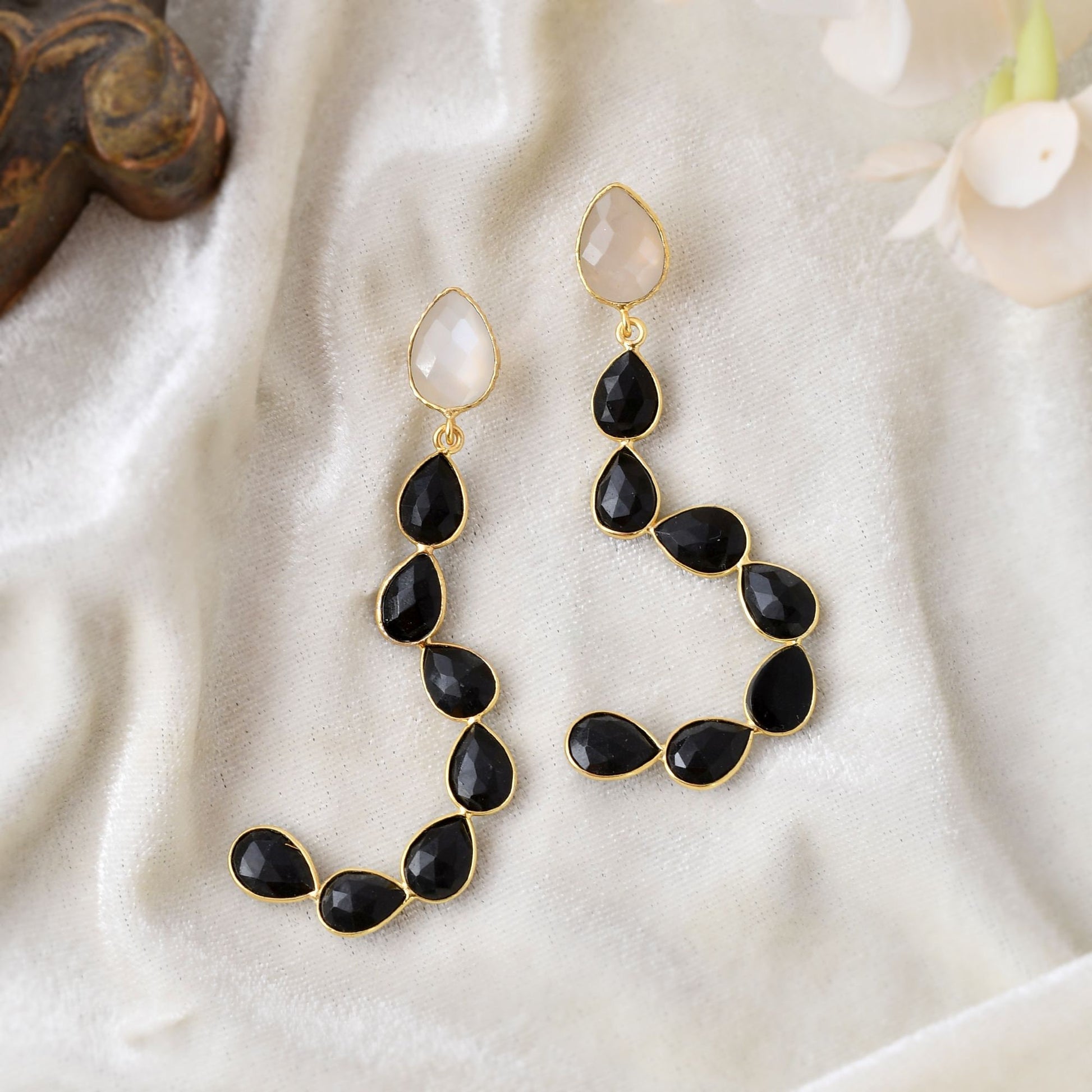 Natural Gemstone Rose Quartz Earring/Handmade Earring/Bridal Earring/Gold Plated Earring/Dangle Earring/Black Onyx Earring/Women Earring