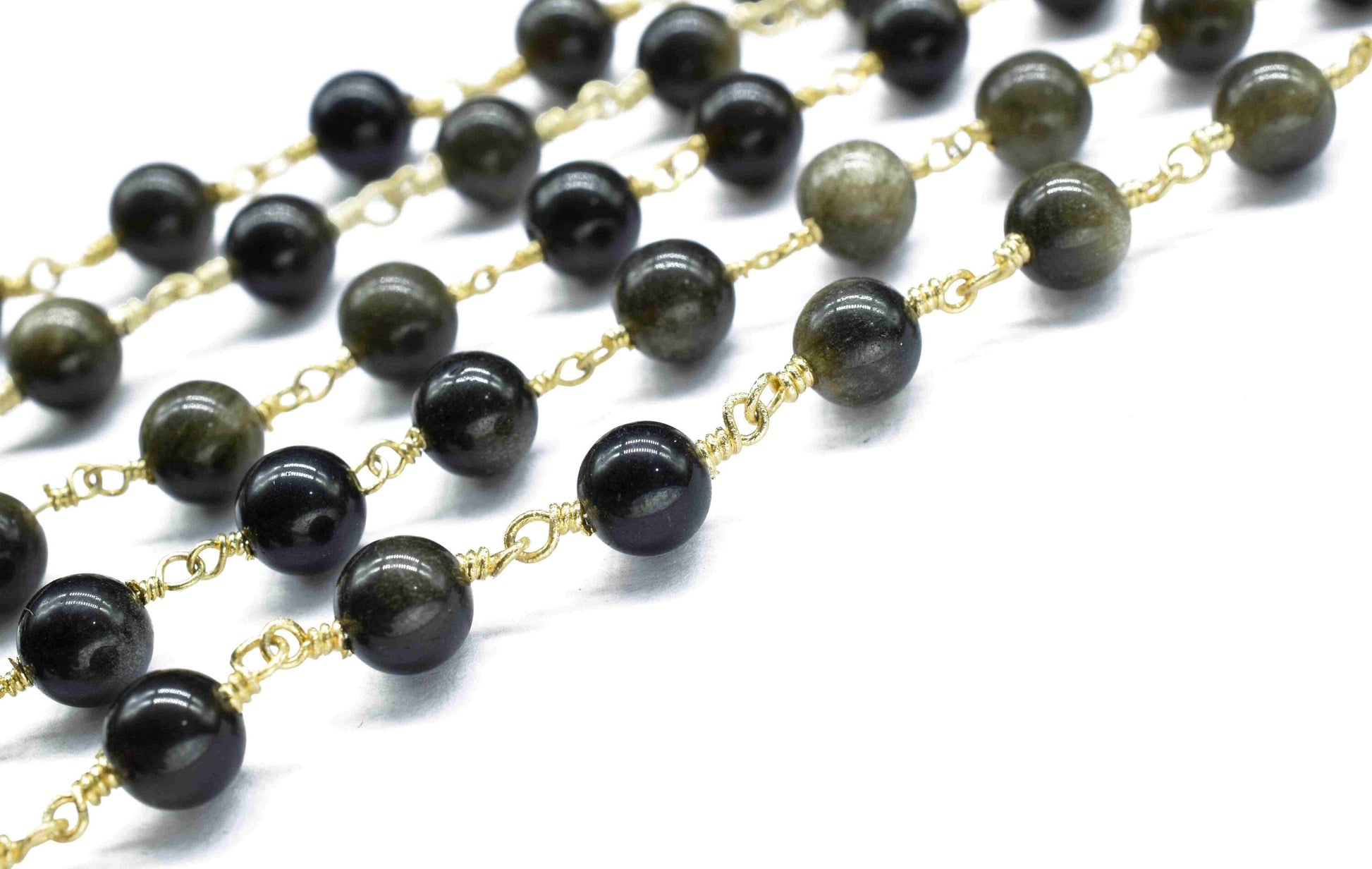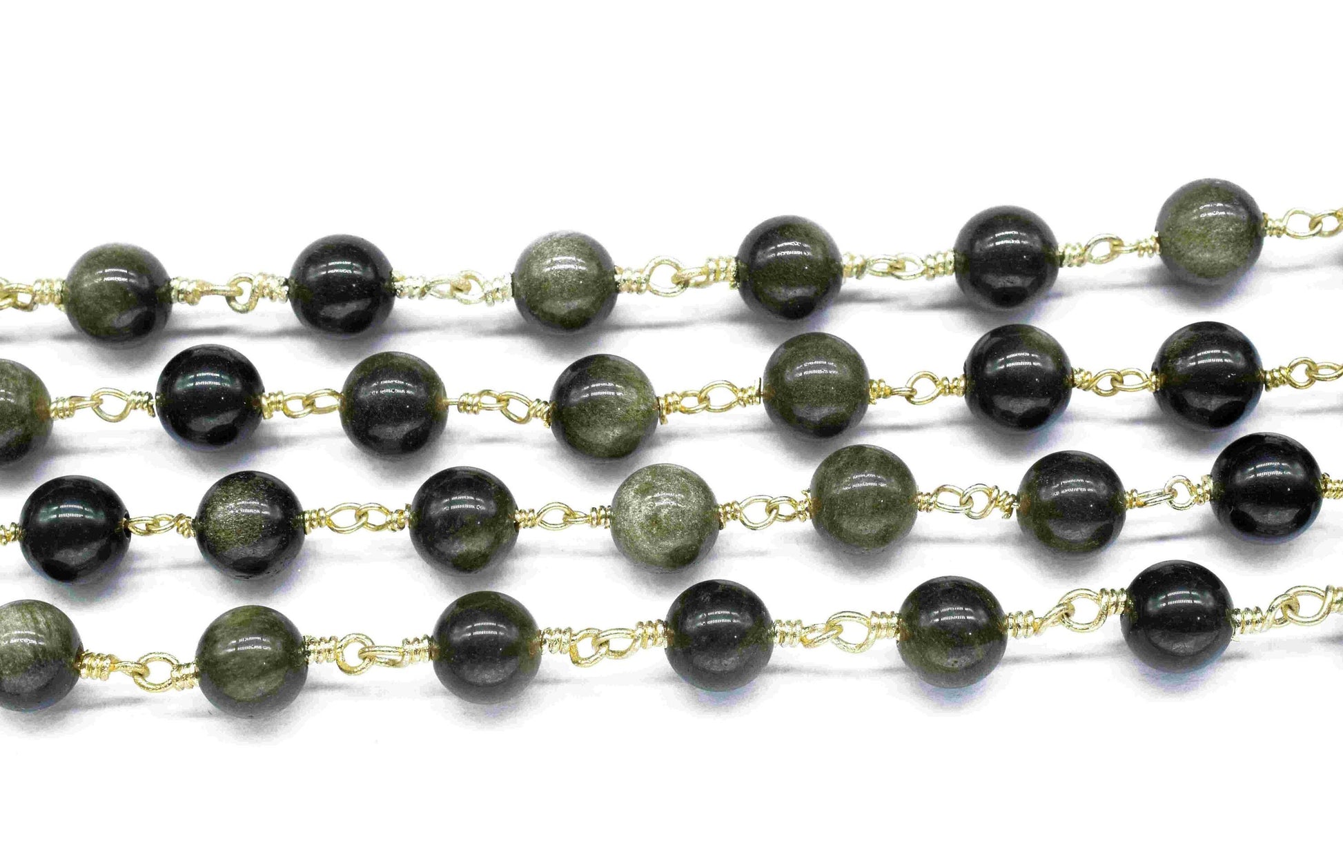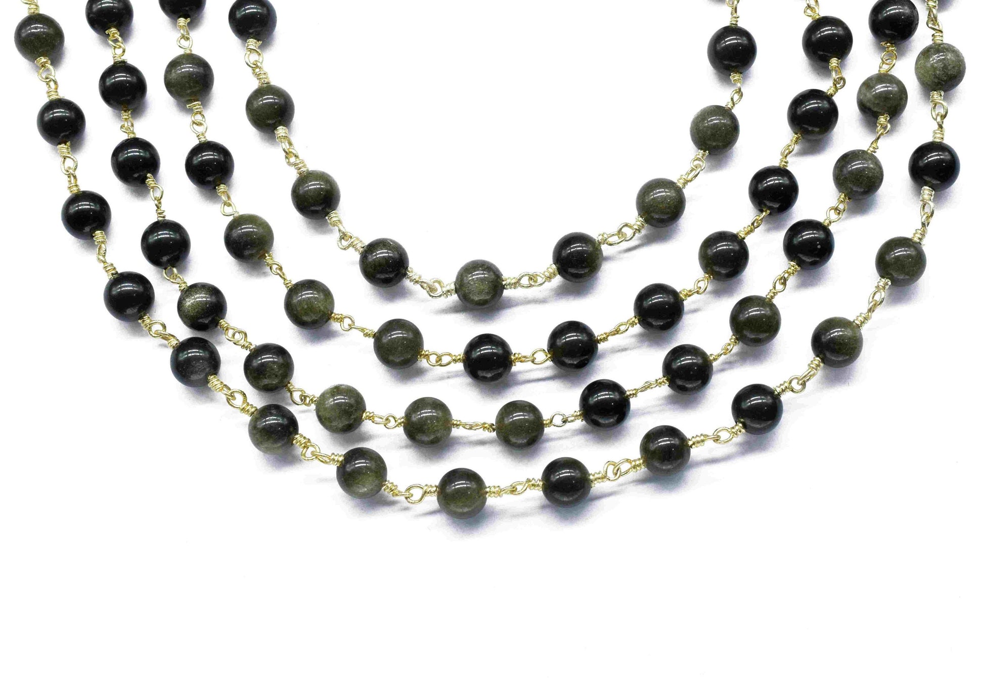 Natural Golden Obsidian Smooth Beads,Wire Wrapped Rosary Chain,beads Rosary chain Necklace,6mm Round Smooth Chain,Handmade Jewelry,Gift