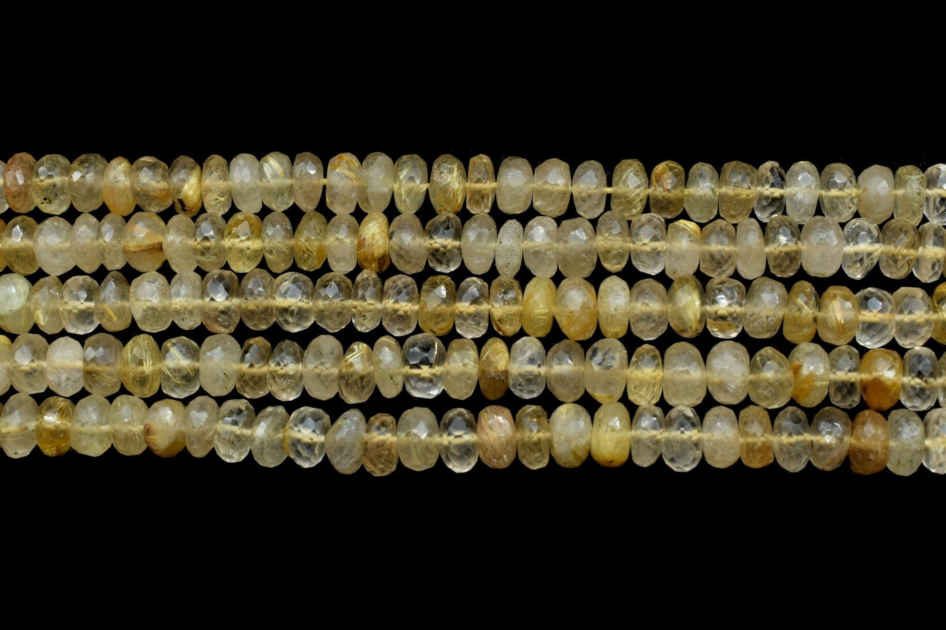 Natural Golden Rutile Faceted Round Bead,Sharp Golden Rutile Needle Gemstone 6"Strand,Rutile faceted bead,7.5x8.5mm Golden Rutile Round Bead