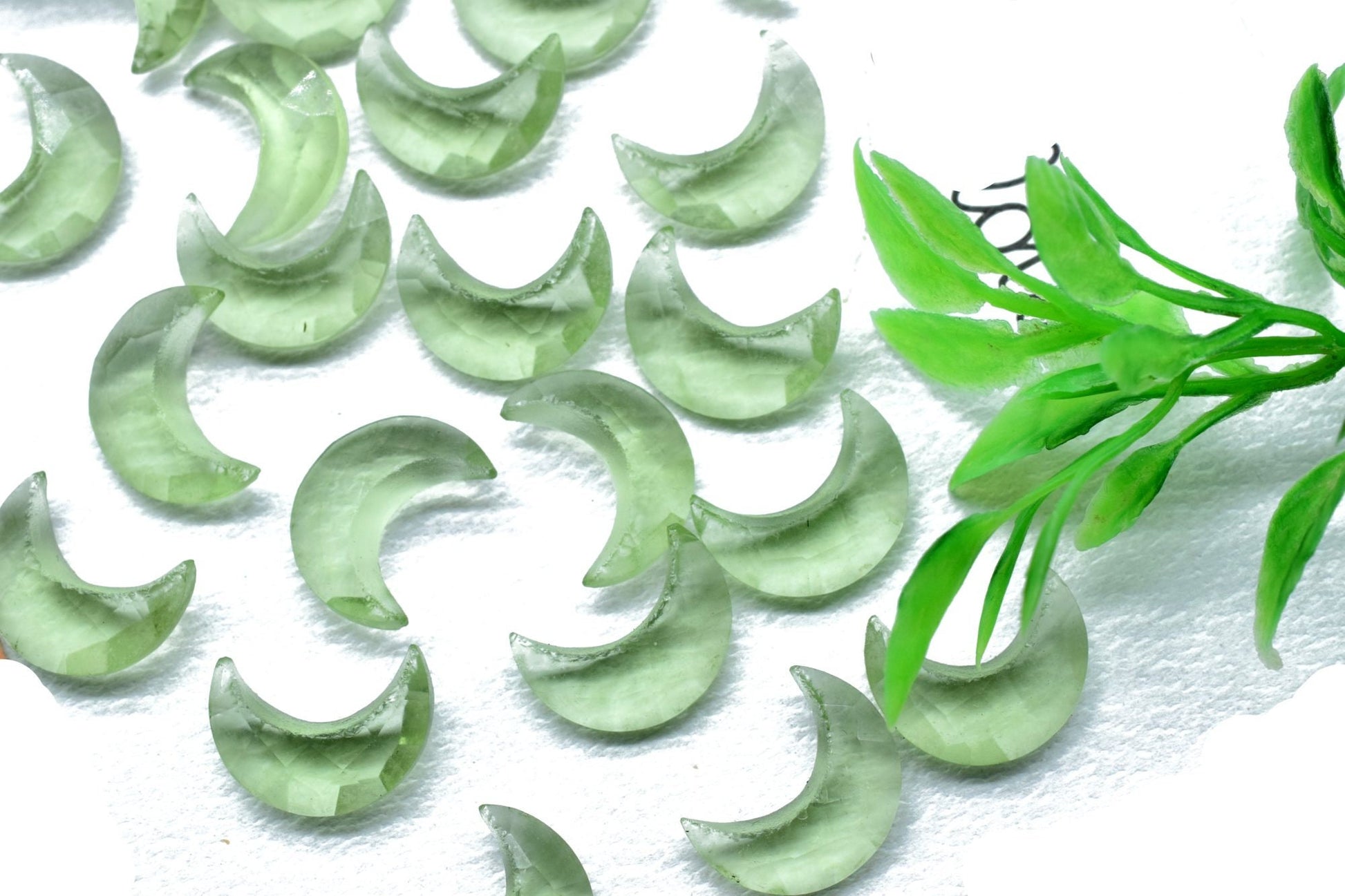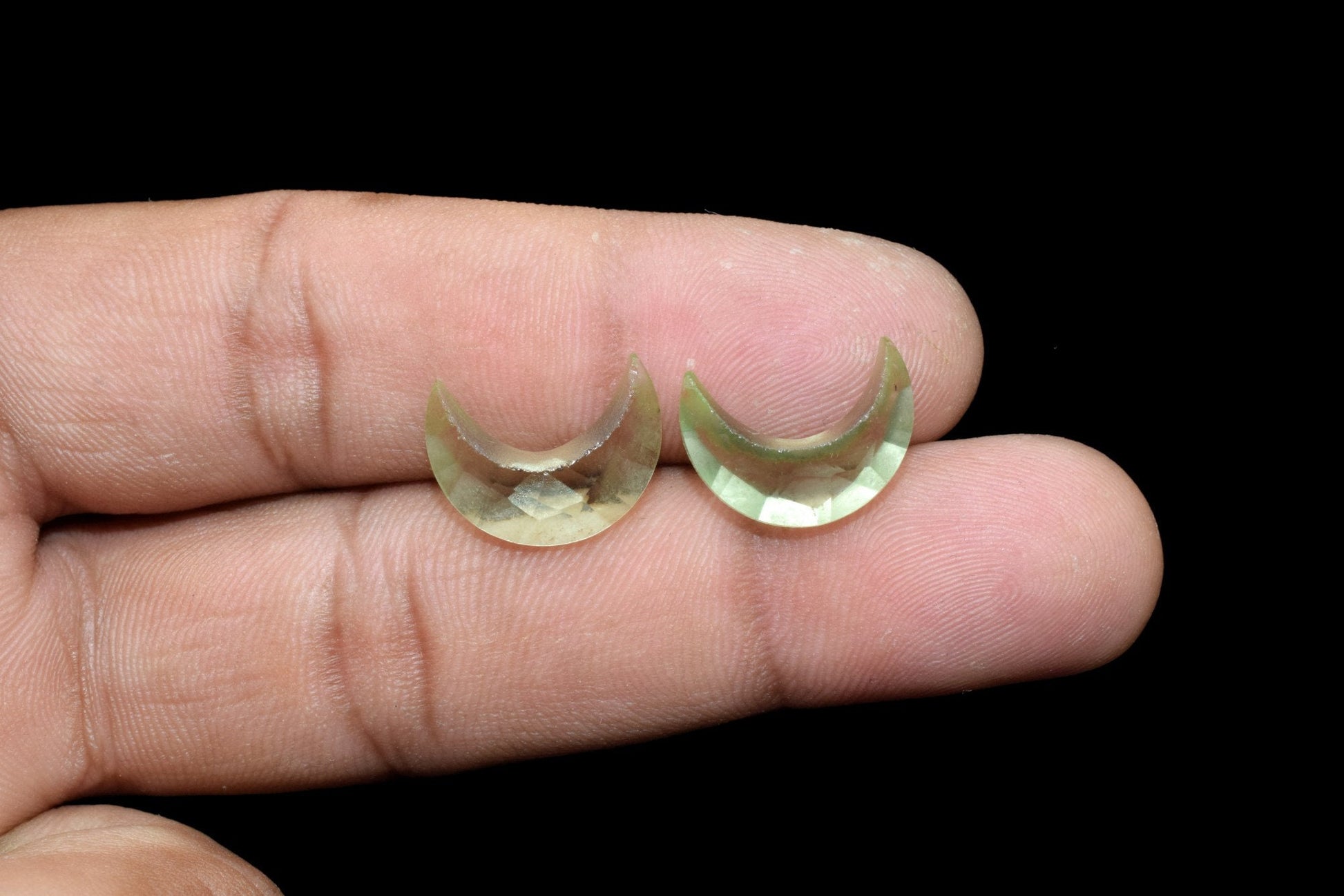 Natural Green Amethyst Moon Briolettes , Hand Carved Moon Briolettes, Amethyst Carved Moon, Gemstone Carved Moon, 15mm Half Moon Shape Beads