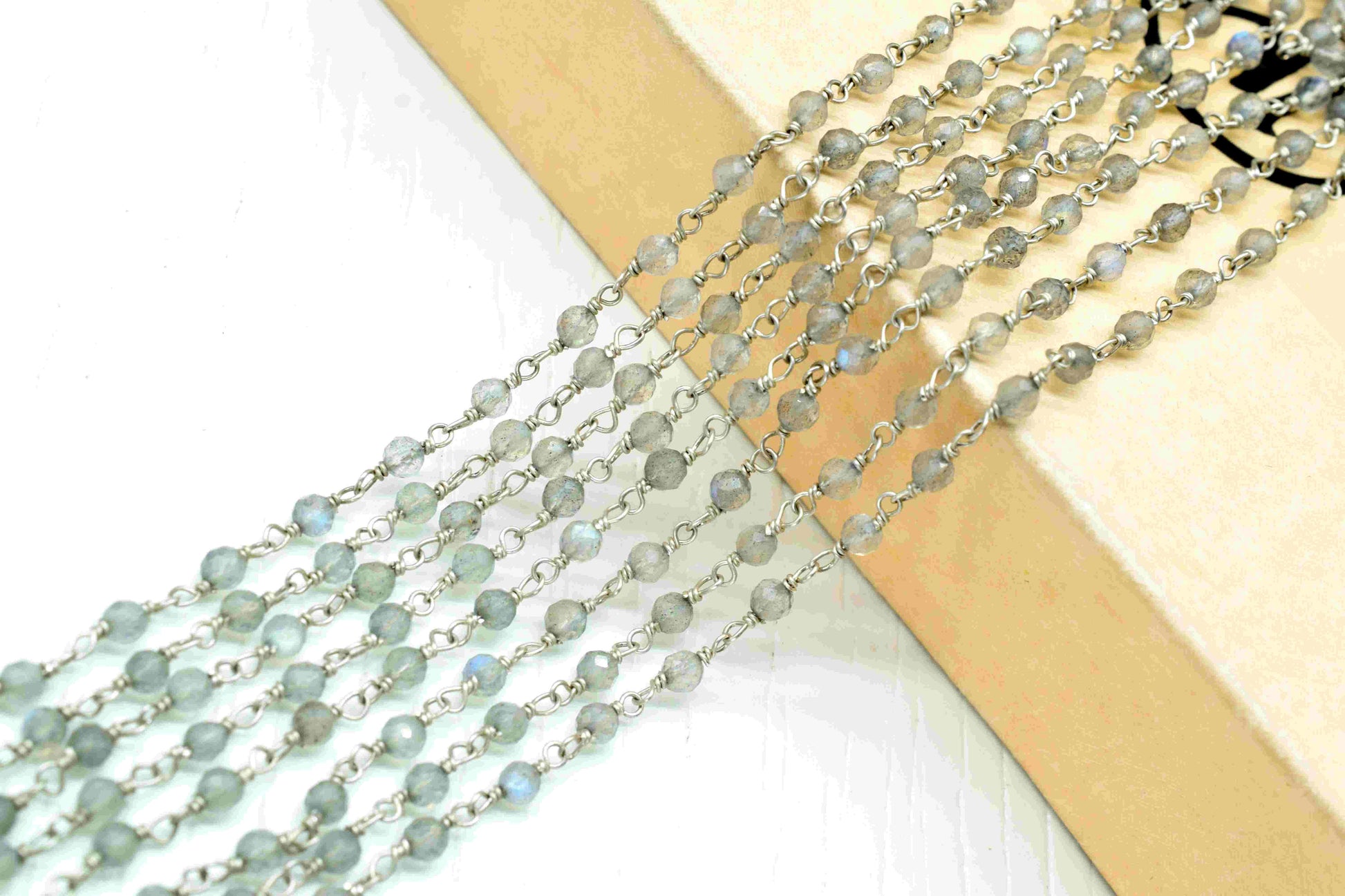 Natural Labradorite Beaded Chain,Labradorite vermeil bead chain,Labradorite 3mm Beaded Chain,Labradorite Gold Plating Wire Wrap Brass chain