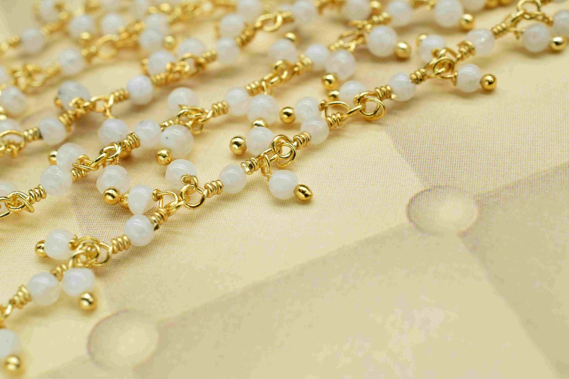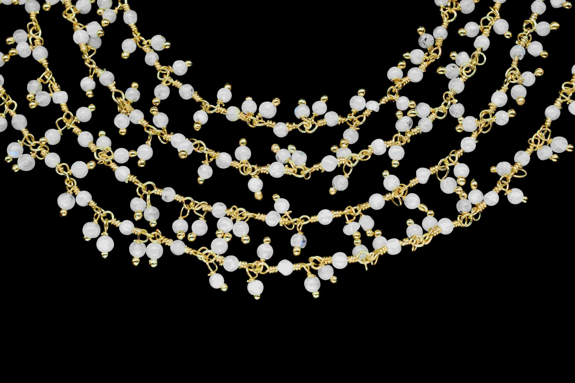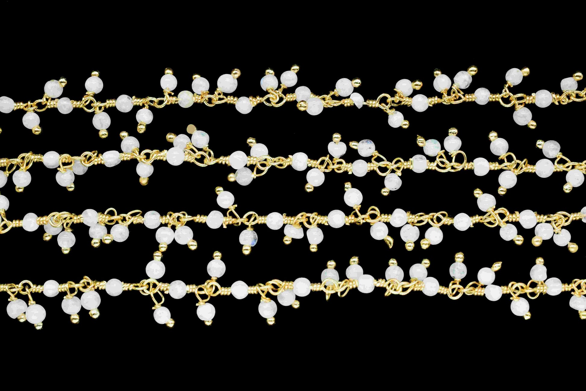 Natural Moonstone 2mm round Cluster beaded Chain,Handmade Cluster Rosary,Handmade Jewelry Making Wire Wrapped Beaded Chain For Necklace,