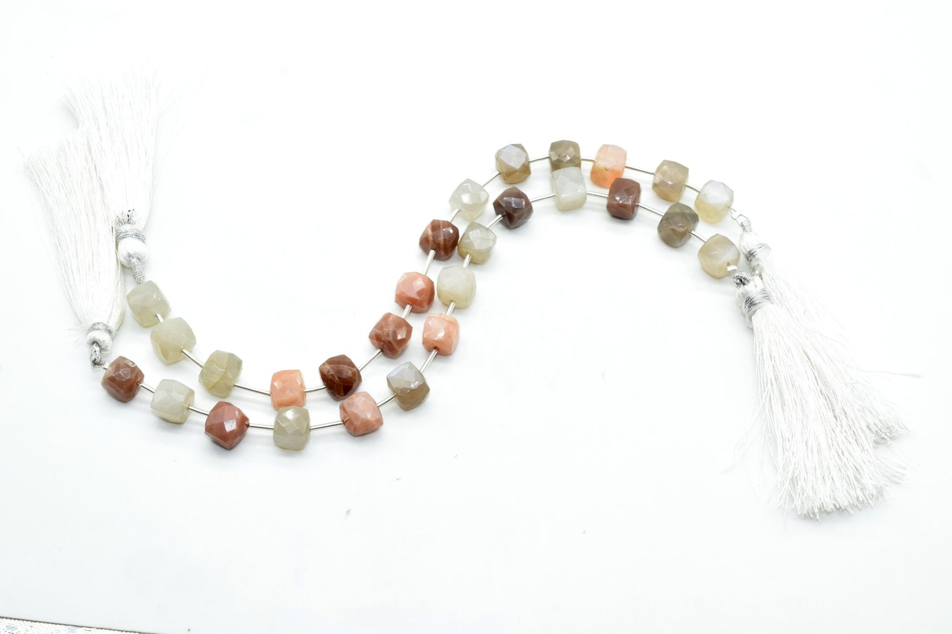 Natural Multi Moonstone 8mm Cube Box Beads,Gemstone Faceted Box Shape Briolettes,Box shape Briolettes,Jewelry Making Beads,6 Inch Strands