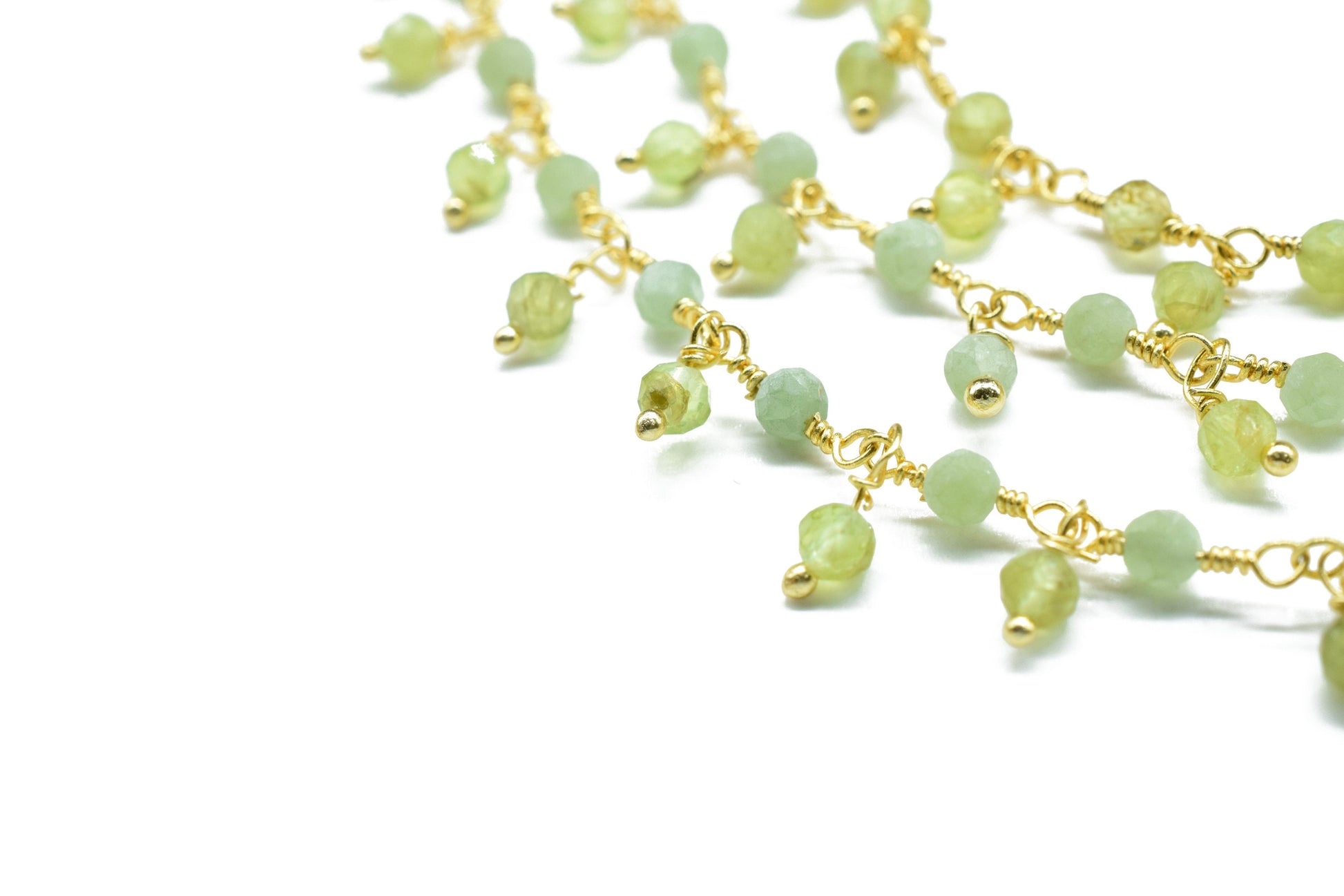 .Natural Peridot Cluster Rosary Chain,Wire Wrapped Necklace Chain,Peridot 3mm Dangling Chain,Gemstone Rosary Chain,Handmade Jewelry Carft
