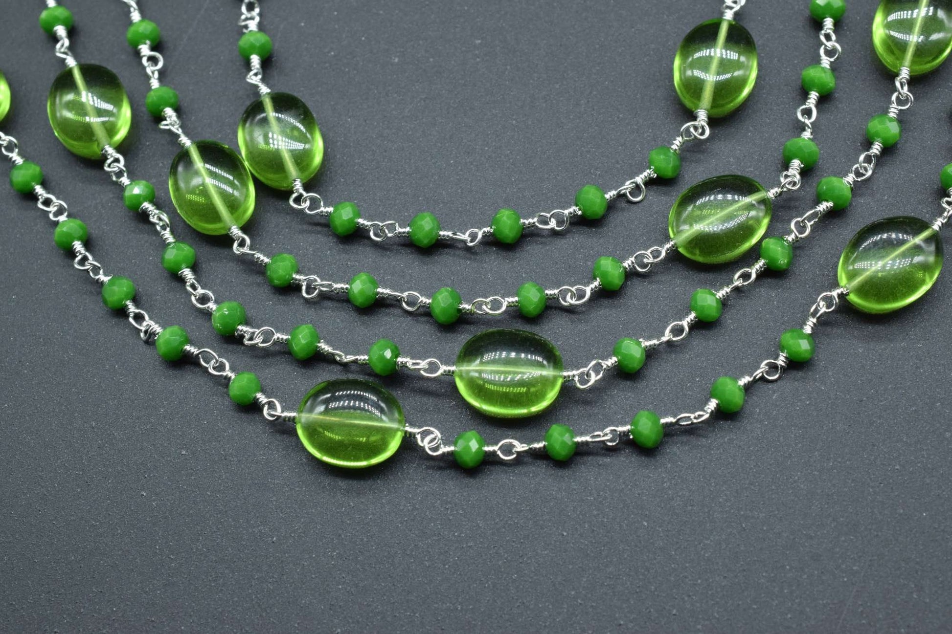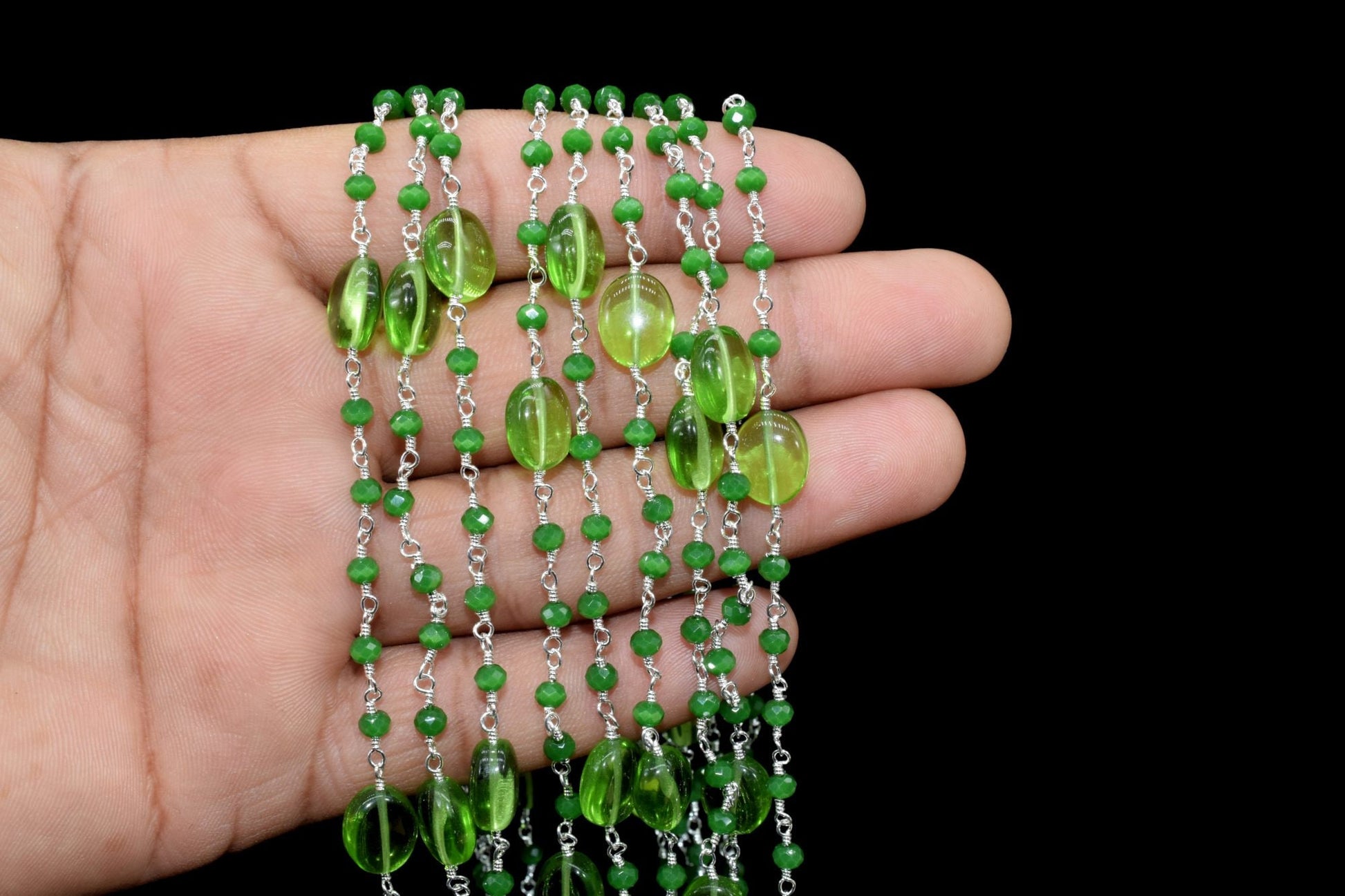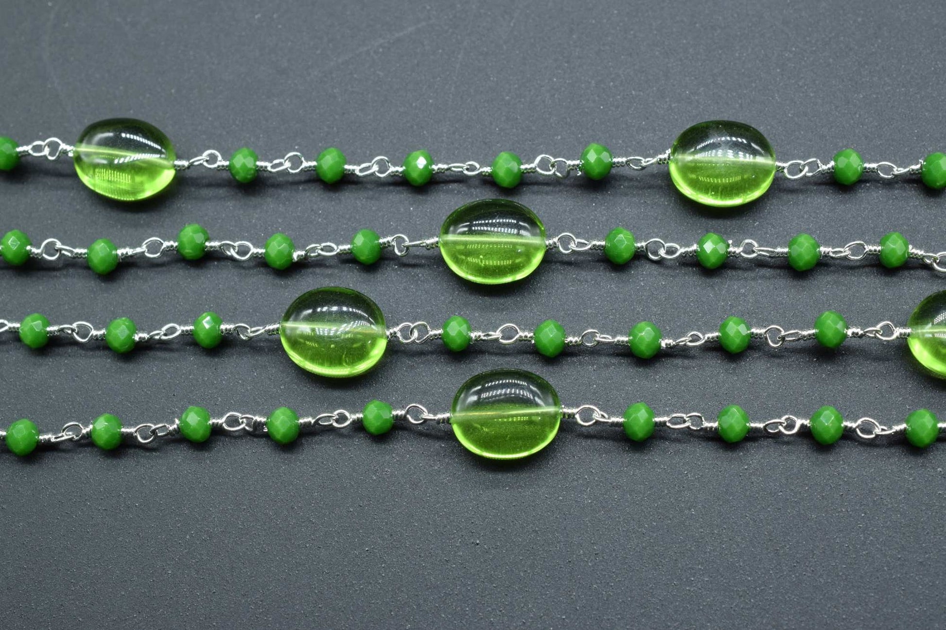 Natural Peridot Smooth Oval Rosary Style Beaded Chain,Gold Plated Wire Wrapped Chain,Gemstone Linked Handmade Chain,Jewelry Making,Per Foot
