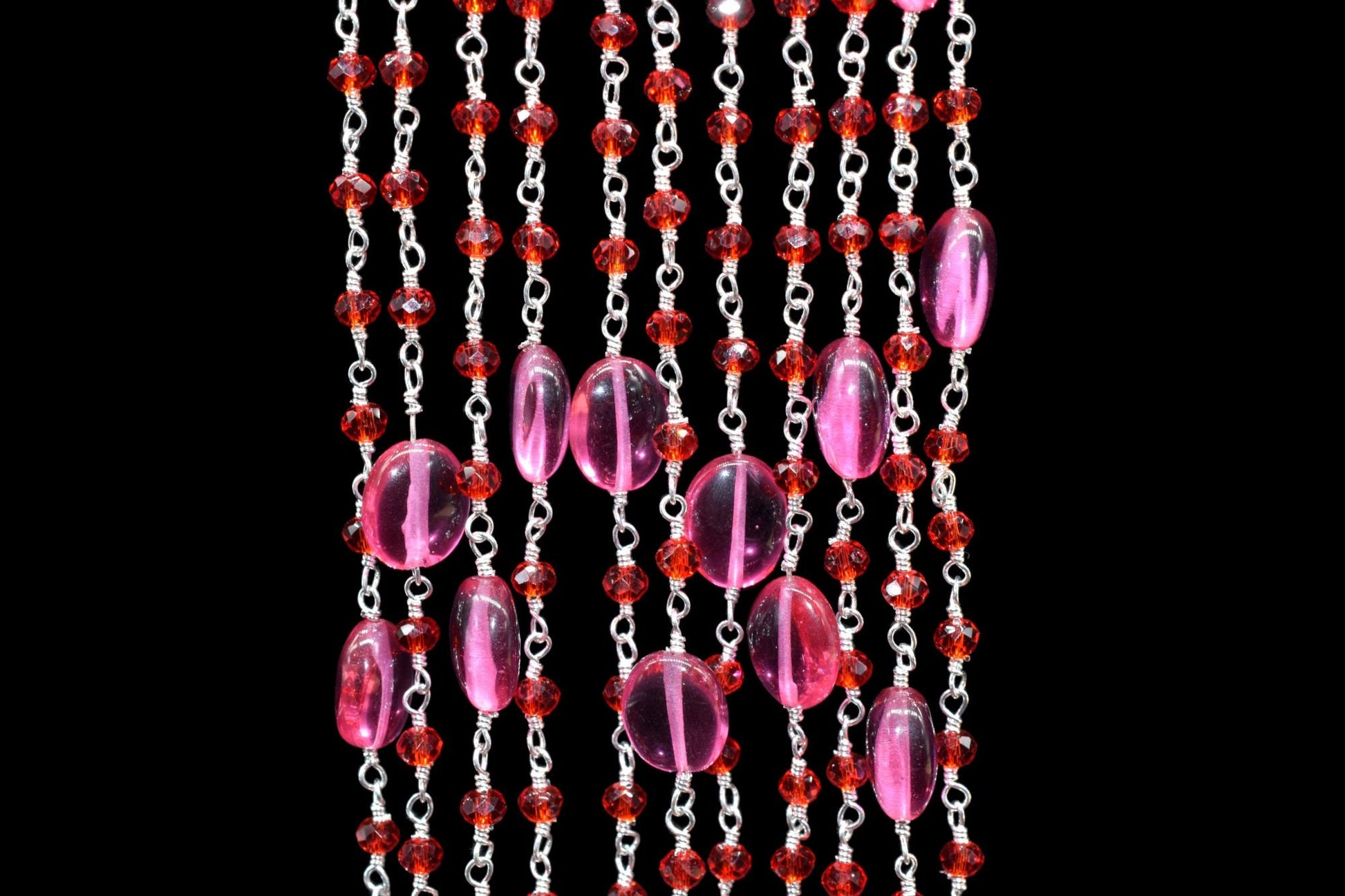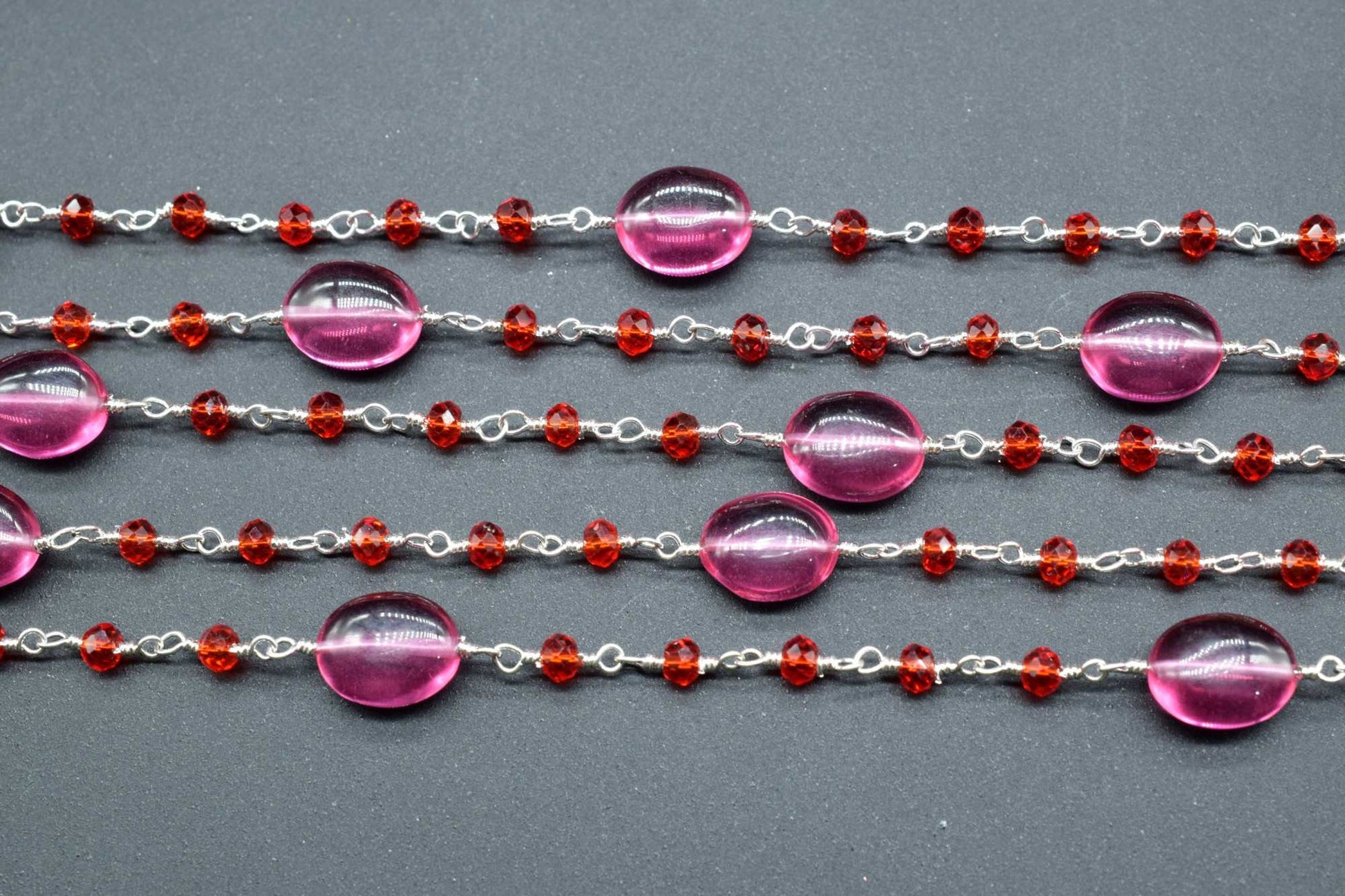 Natural Pink chalcedony Smooth Oval Rosary Style Beaded Chain,Gold Plated Wire Wrapped Chain,Gemstone Linked Handmade Chain,Jewelry Making,