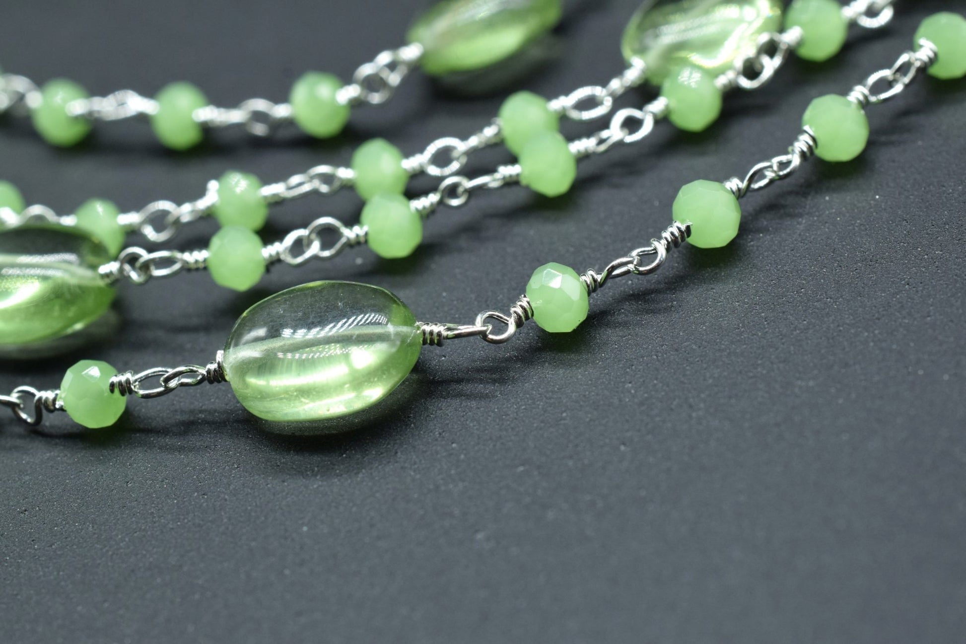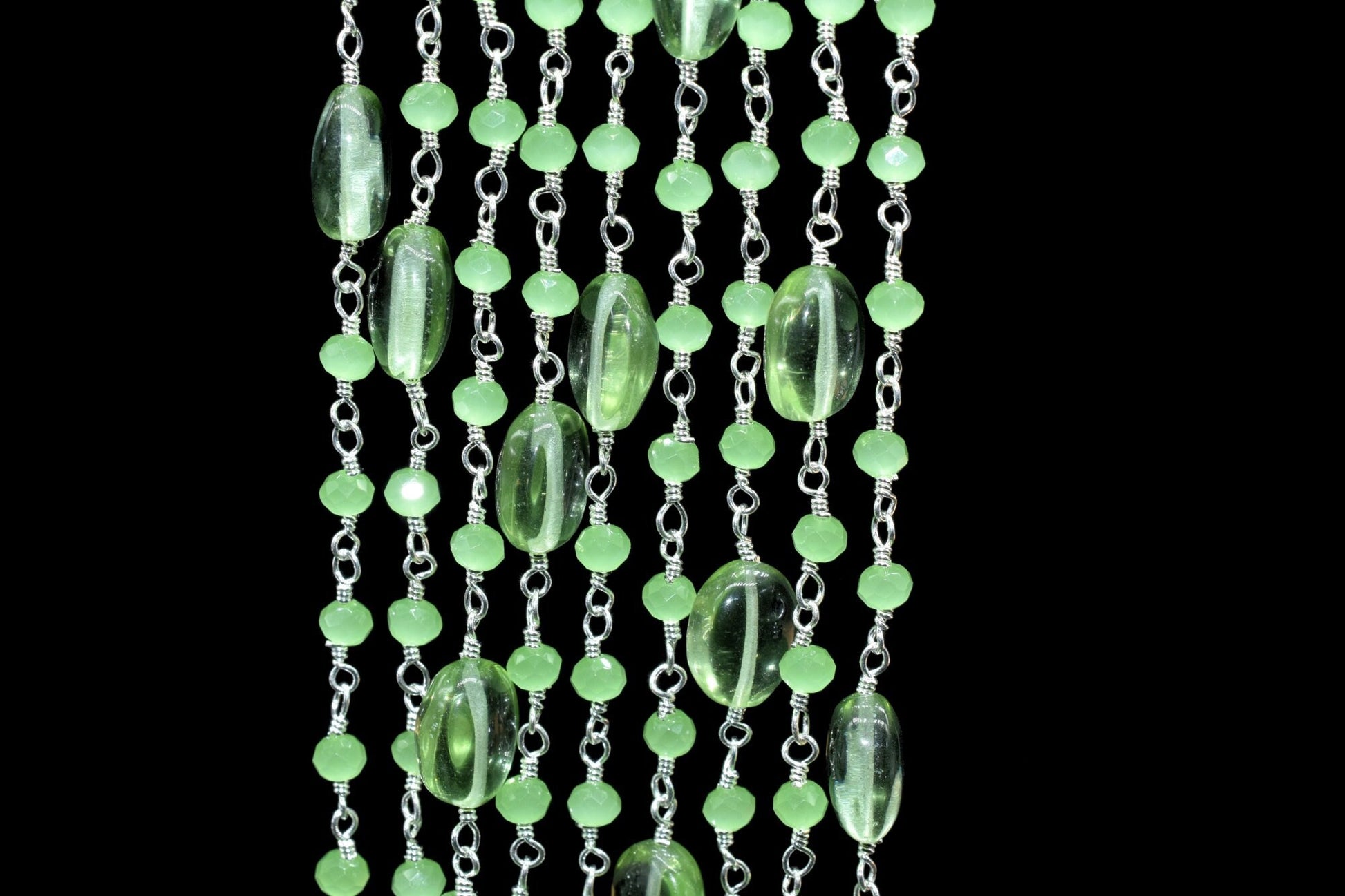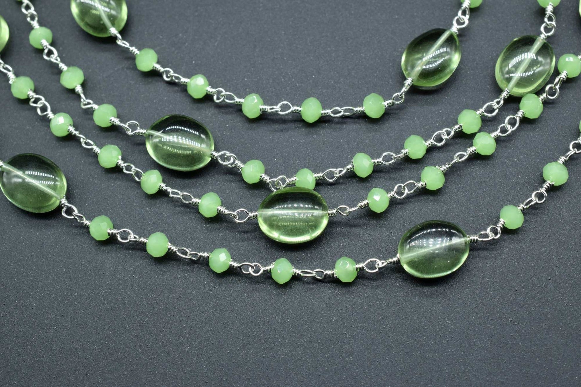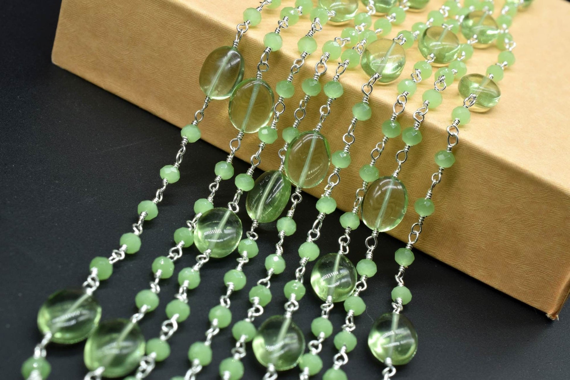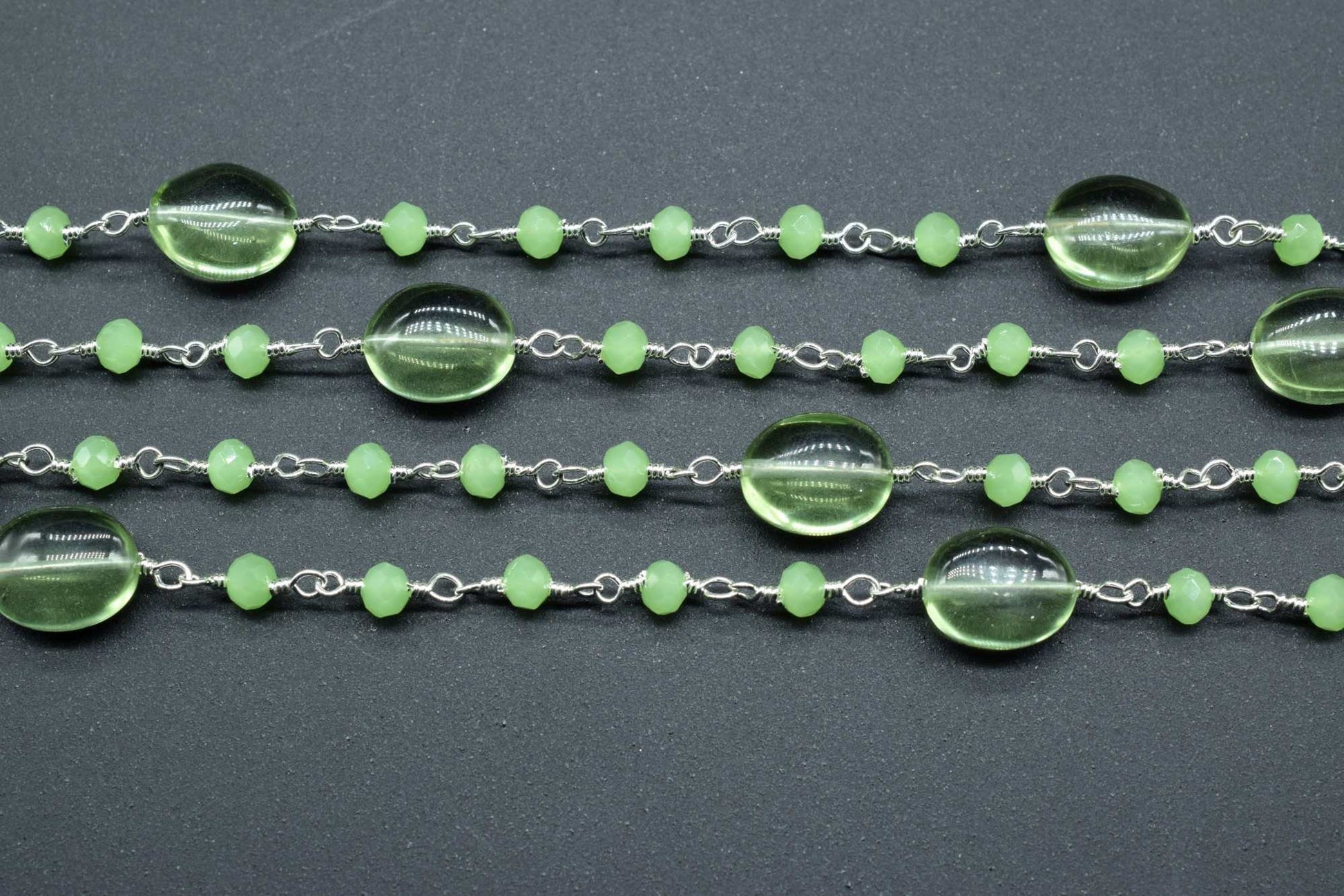 Natural Prehinte Smooth Oval Rosary Style Beaded Chain,Gold Plated Wire Wrapped Chain,Gemstone Linked Handmade Chain,Jewelry Making,Per Foot