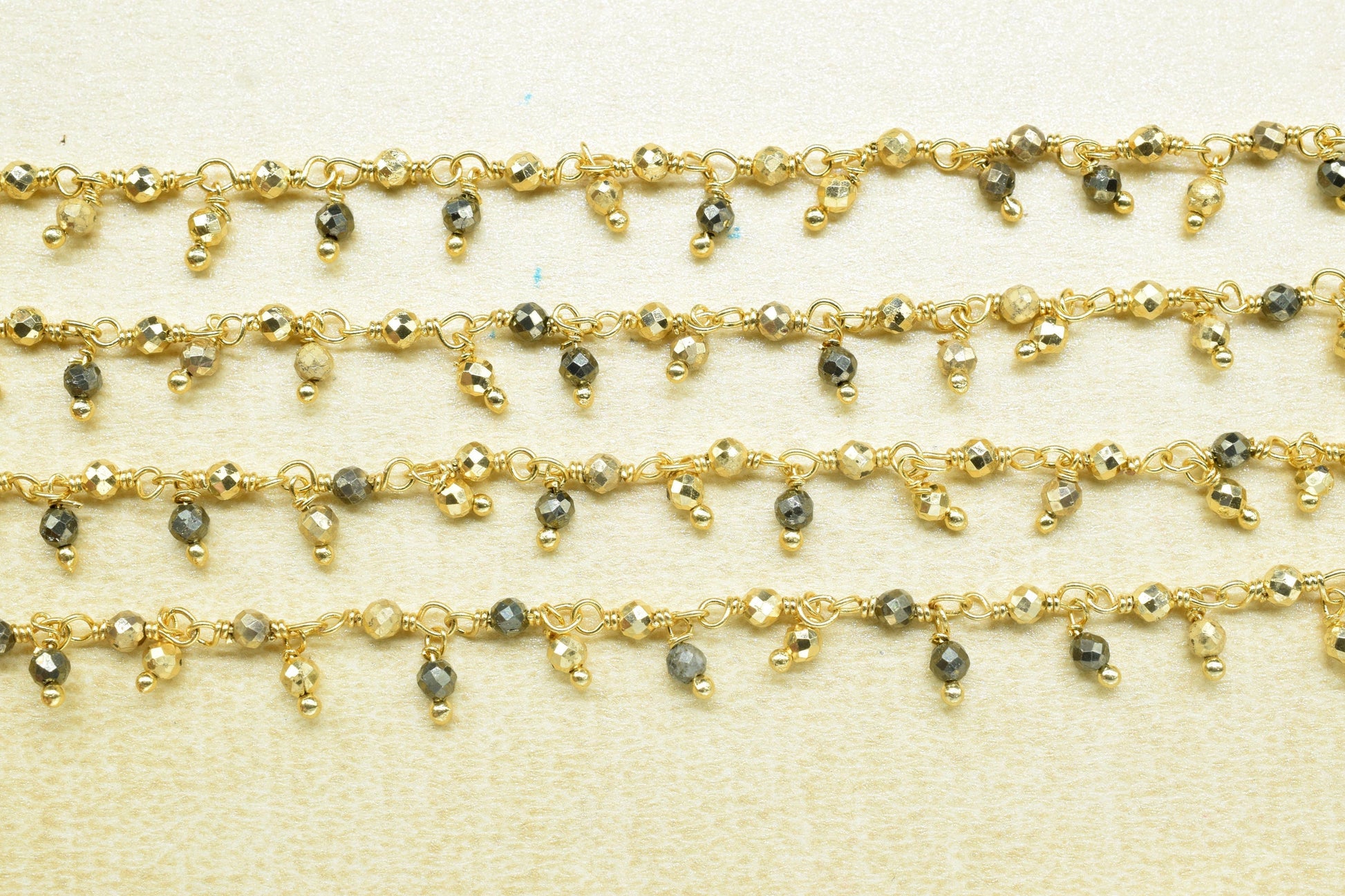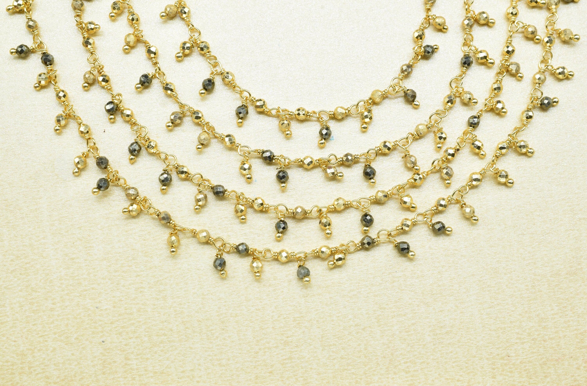 .Natural Pyrite Dangling Rosary Chain,Gemstone Beaded Chain,Wire Wrapped Necklace Chain,Pyrite Cluster Beads Chain,Handmade Bead Jewelry Gift