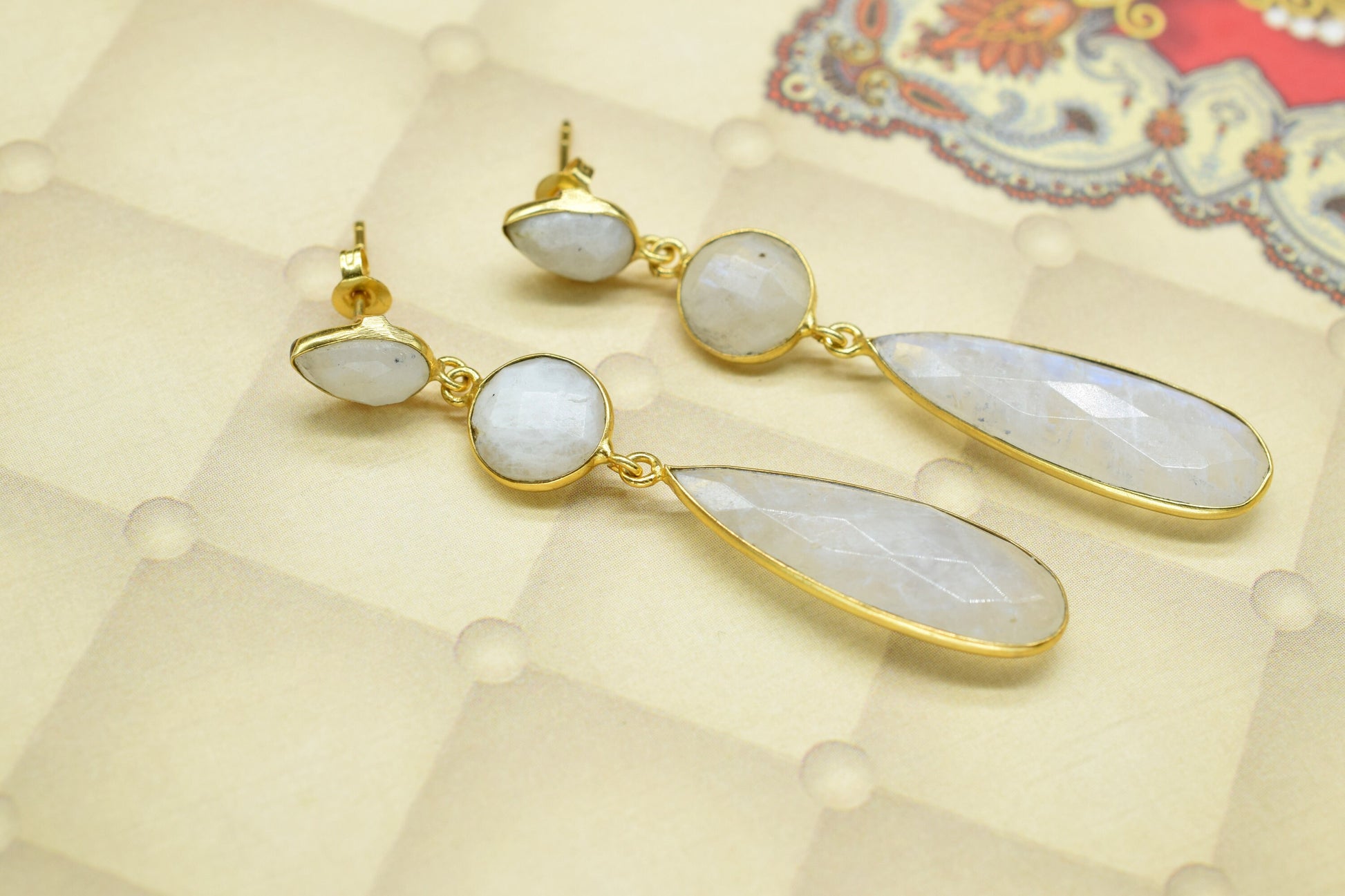 Natural Rainbow Moonstone Dangle Earring/Bridal Earring/Gold Plated Earring/Bridal Jewelry/Statement Earrings For Bridal/Labradorite Jewelry