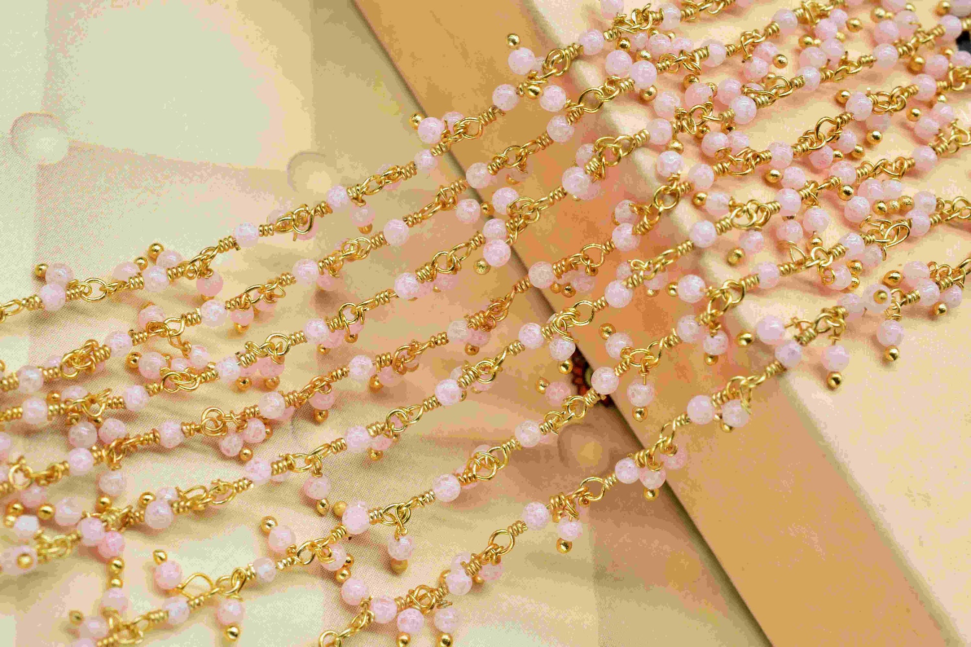 Natural Rose Quartz 2mm round Cluster beaded Chain,Handmade Cluster Rosary,Handmade Jewelry Making Wire Wrapped Beaded Chain For Necklace,
