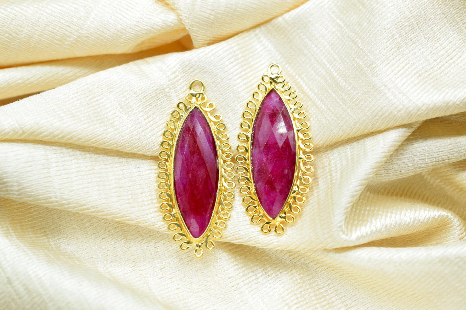 Natural Ruby 10x30mm Marquise Bezel Charm,Single Bail Pendant,Handmade Jewellery Connectors,long charm,Gemstone Brass Component,B'day Gift