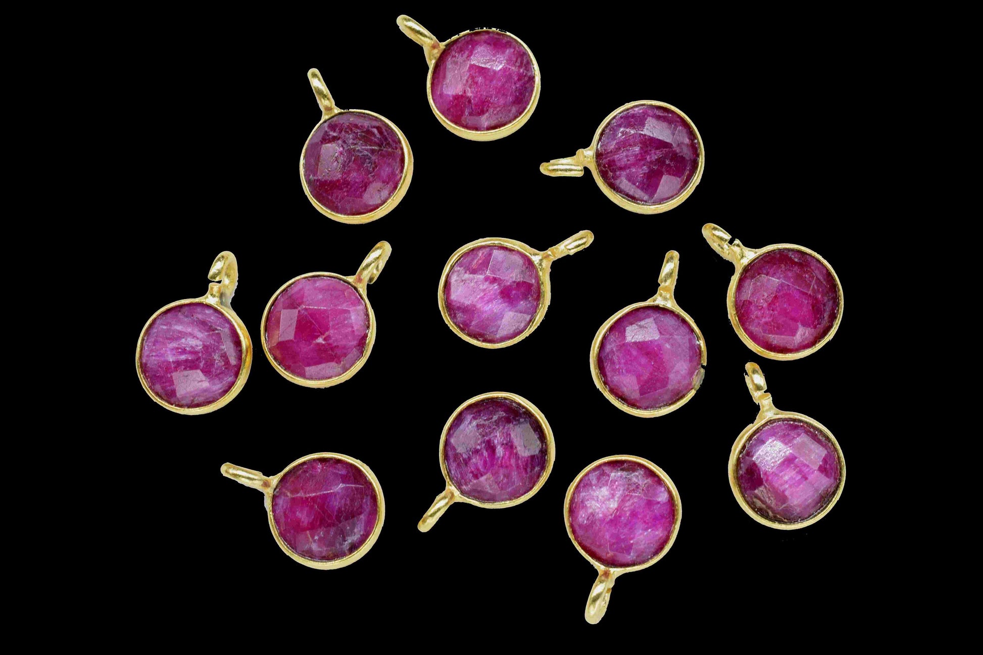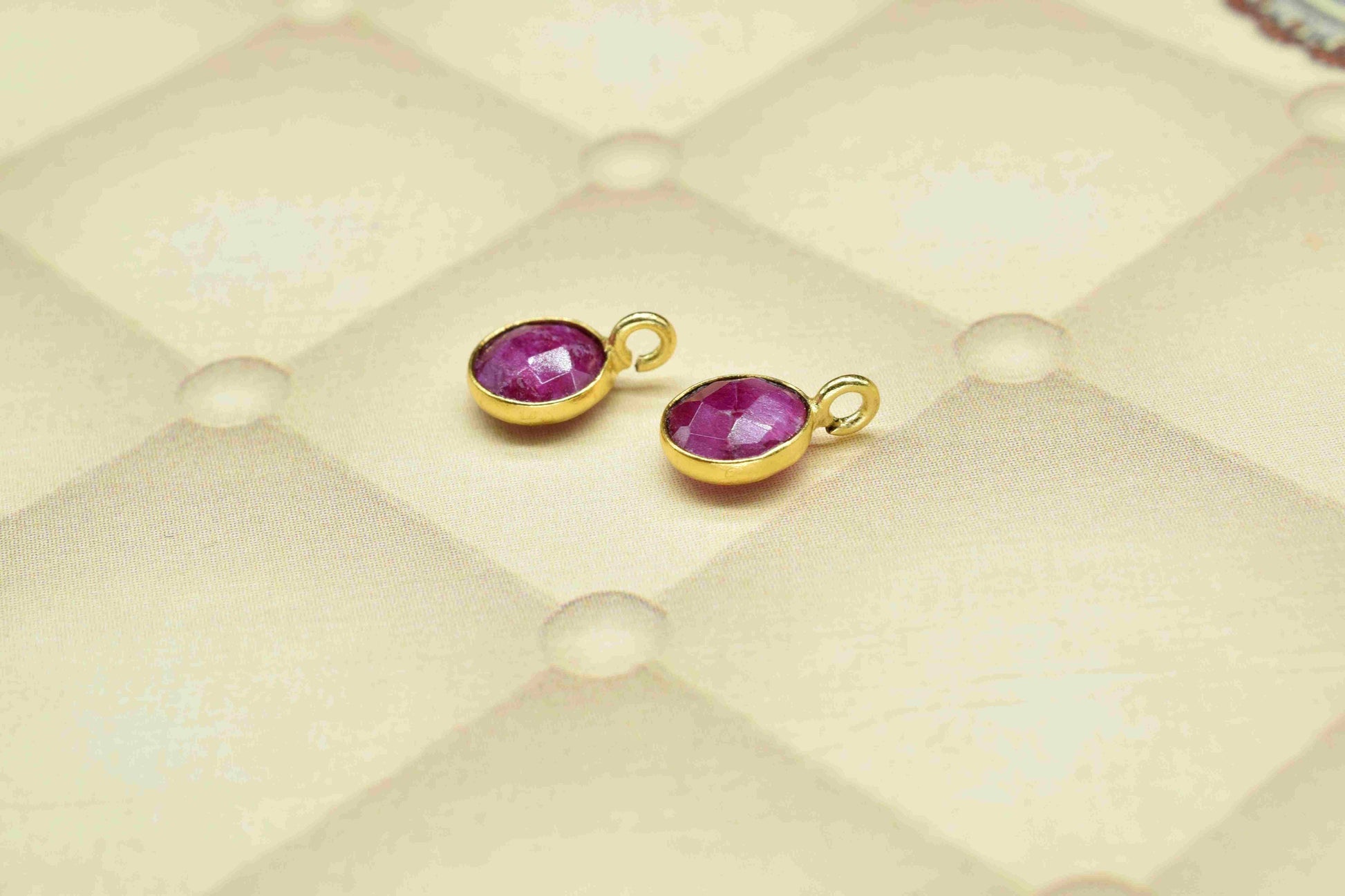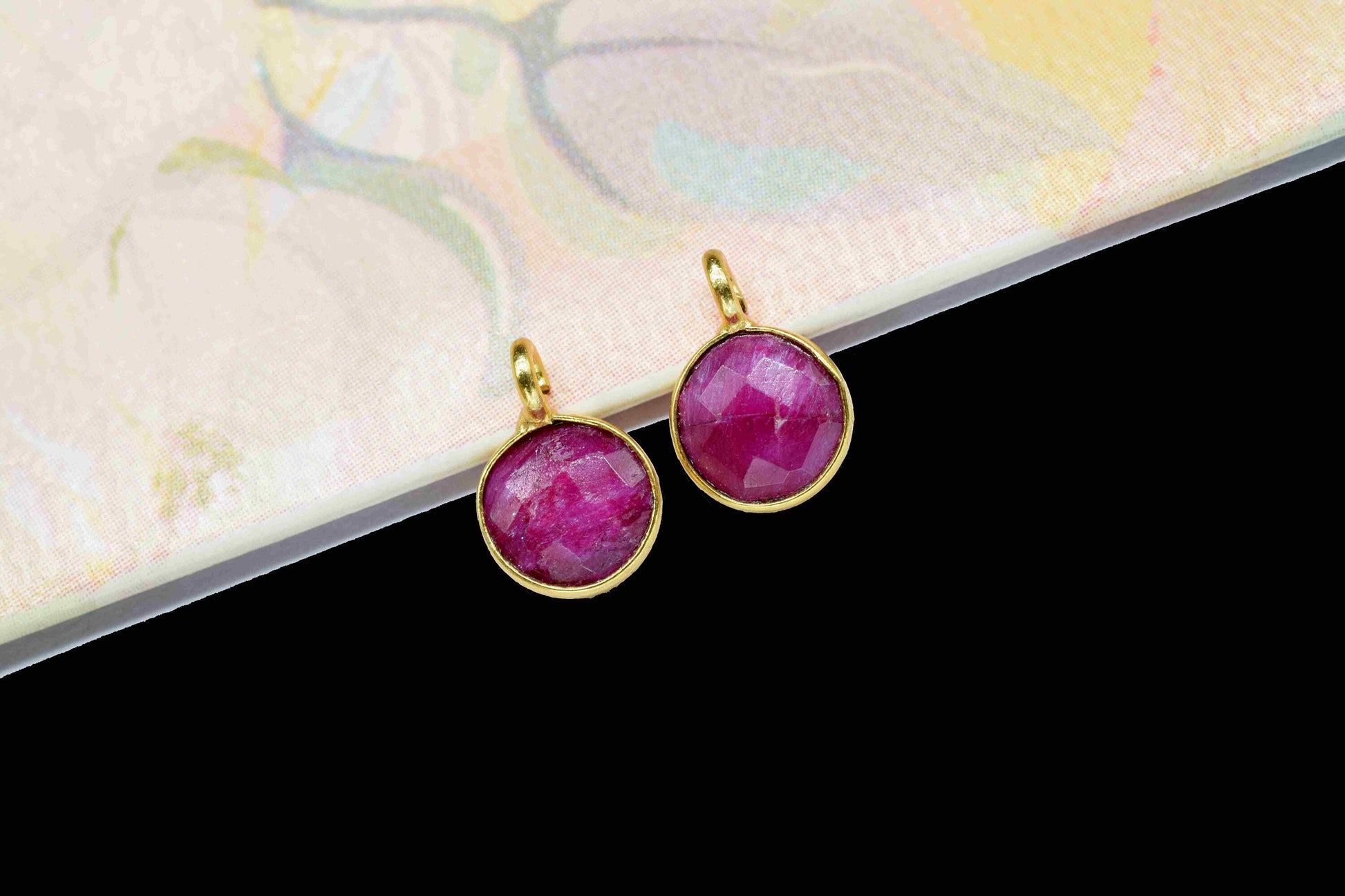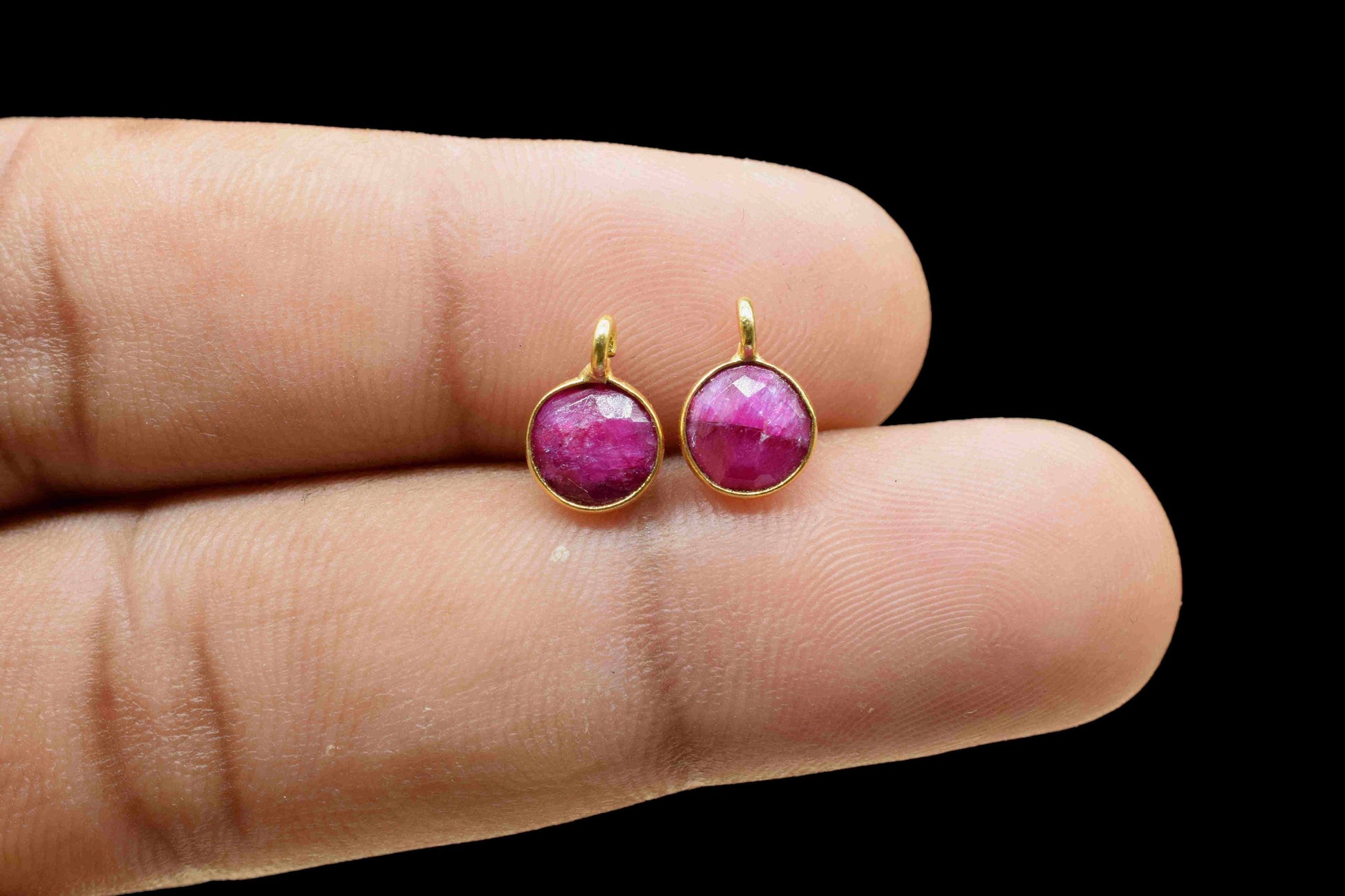 .Natural Ruby 6mm Round Connector,Earring connectors Studs,Bezel Rim Earring Connector,Handmade Bezel Pendant Jewellery,Jewellery Craft Supplies