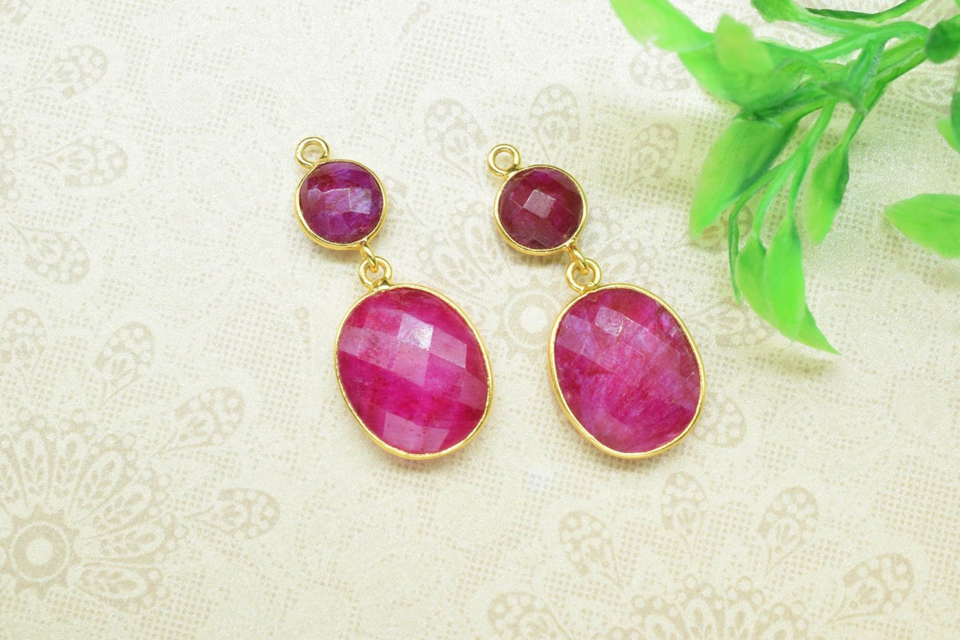 Natural Ruby Dangle Component Earring,Handmade Connector,Ruby Pendant Charms,Gemstone Jewelry,Station Bezel Link,Ruby pendant Connector,Gift